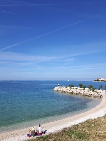 Prekrasan dvosoban apartman u novoj luksuznoj zgradi s liftom. Svi potrebni sadržaji nalaze se samo par minuta hoda od aparmana (plaža, lučica, restorani, kafići, supermarket, ribarnica, fast food, apoteka, teniski tereni, ...) Parking je besplatan i nalazi se ispred same zgrade.