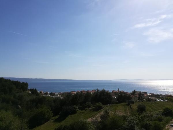 Iznajmljujem veliki apartman u obiteljskoj kući u Podstrani za 4 osobe. Apartman ima 2 sobe, u svakoj sobi je bračni krevet. Kuhinja sadrži svu opremu od posuđa do kuhinjskih aparata, dnevni boravak je veliki, kupatilo sa veš mašinom. U apartmanu je klima, WI-FI i smart TV. Apartman je na drugom katu, ima veliki balkon sa kojeg puca predivan pogled na more i otoke. Mir i tišina, budite se uz cvrkut ptica. Za odmorit dušu. Ima osigurano parkirno mjesto, a od mora i plaže je udaljen 10 minuta hoda.