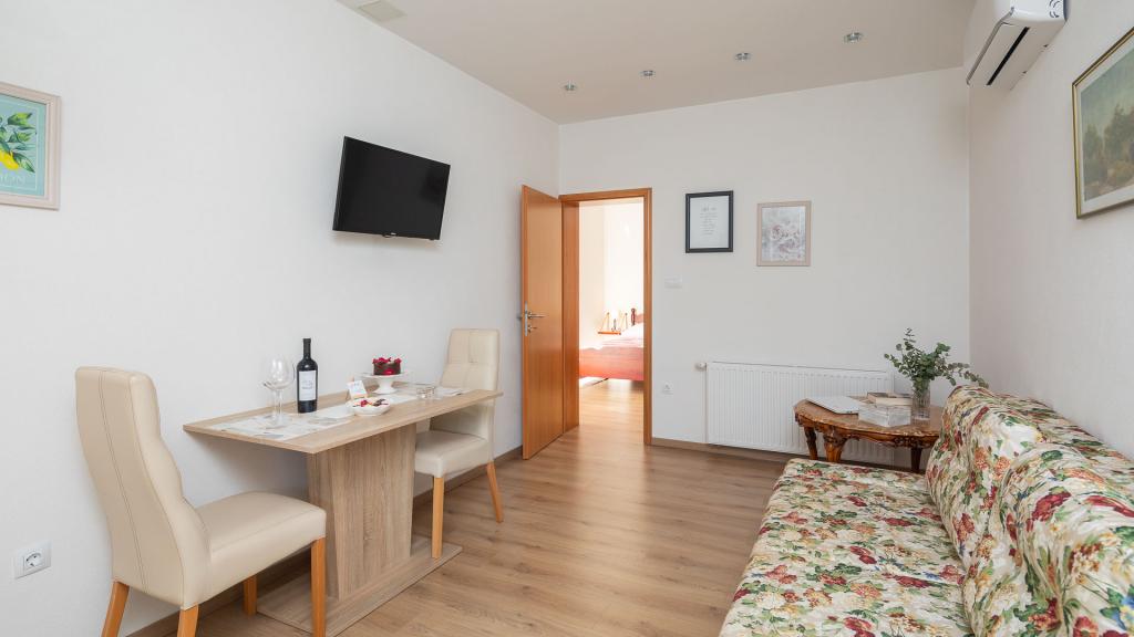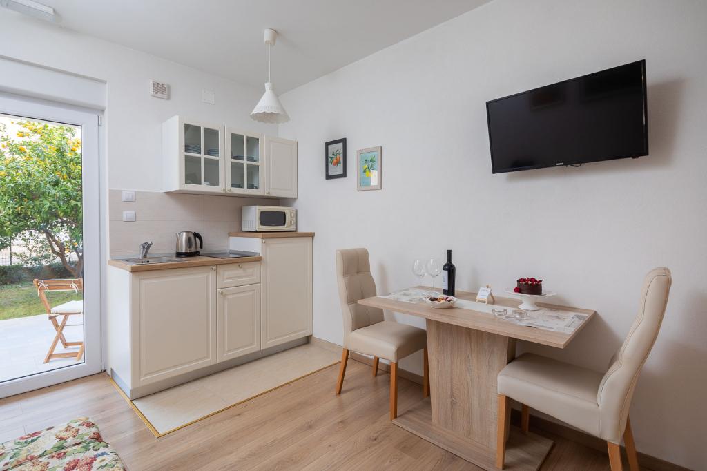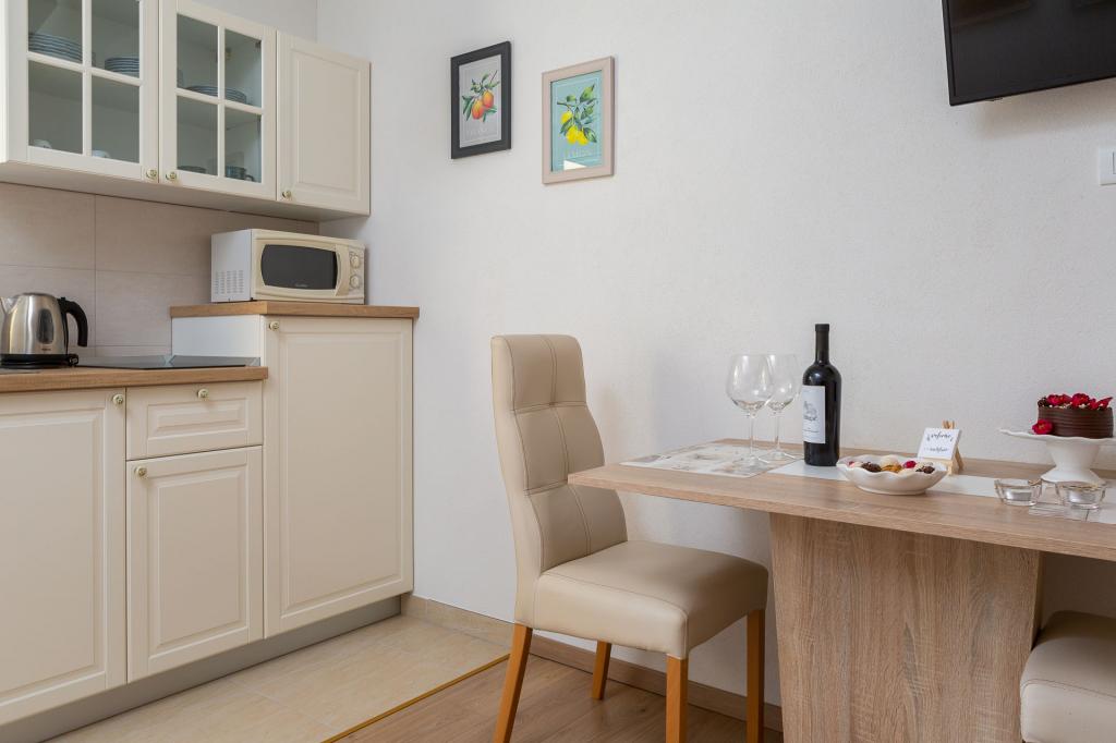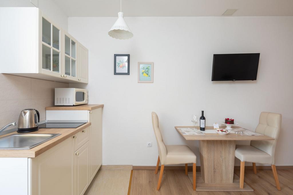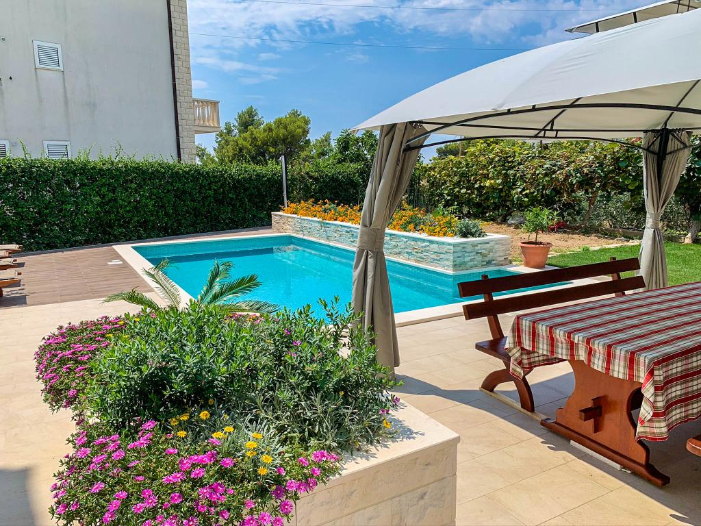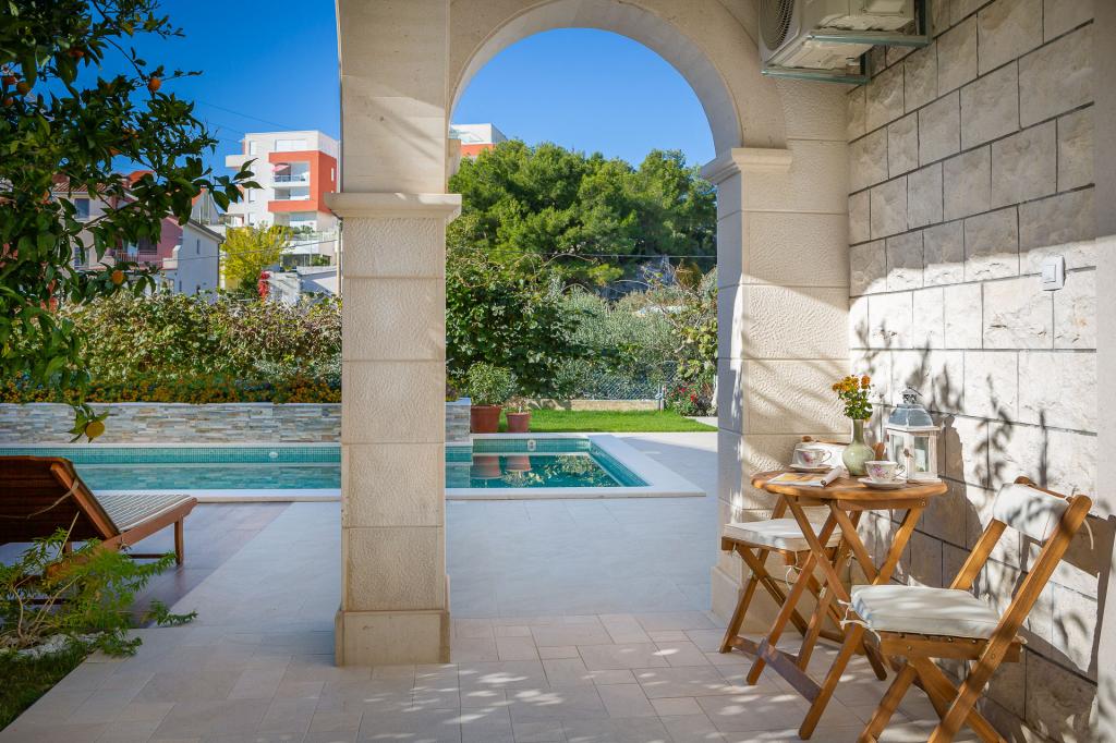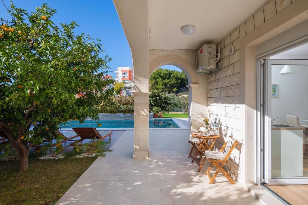 Nudimo vam dva lijepa, ugodna, potpuno namještena apartmana Luka i Katja s privatnim vanjskim bazenom u turističkom mjestu Podstrana. Mjesto je poznato po s prekrasnim plažama koje se nalaze u blizini i udaljeno je samo 10 km od centra Splita. Apartman Katja uređen je u modernom stilu. Lijepo namješten apartman u ljetnim bojama, ugodnim bračnim krevetom, kaučem na razvlačenje, potpuno opremljenom kuhinjom i kupaonicom. Apartman Luka uređen je u rustikalnom stilu s detaljima specifičnim za ovu dalmatinsku regiju. Apartman također ima ugodni bračni krevet, kauč na razvlačenje, potpuno opremljenu kuhinju i kupaonicu te terasu s pogledom a bazen. Naše goste dočekujemo s domaćim likerom, gosti su također pozvani da kušaju svježe voće izravno iz našeg vrta. Vrt s bazenom je najbolje mjesto za odmor s cijelom obitelji jer imamo ponešto za sve članove obitelji. Tu su stolni nogomet i bazen.