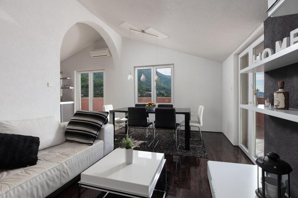 Kompletno i suvremeno opremljeni apartman u mirnom dijelu Podstrane. Nalazimo se svega 7km od Splita. Obijekt se nalazi svega 10min hoda do plaže. Sa naše terase mozete uživati u prekrasnom pogledu na Jadransko more i njegove otoke, a isto tako i na planinu Perun. Apartman je kompletno opremljen i idealan je za obitelj ili grupu prijatelja. Ispred objekta se nalazi veliki parking. Domaćini su smješteni u prizemlju kuće i možete ih uvijek kontaktirat ako vam treba pomoć.