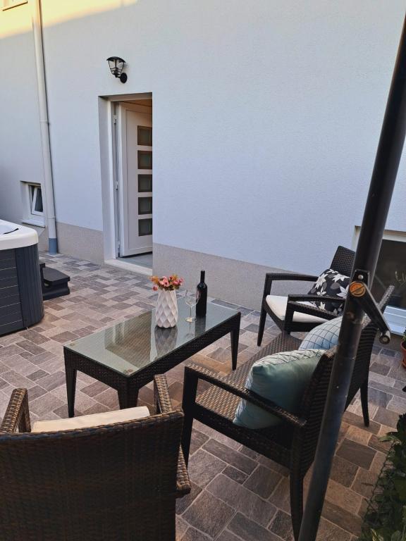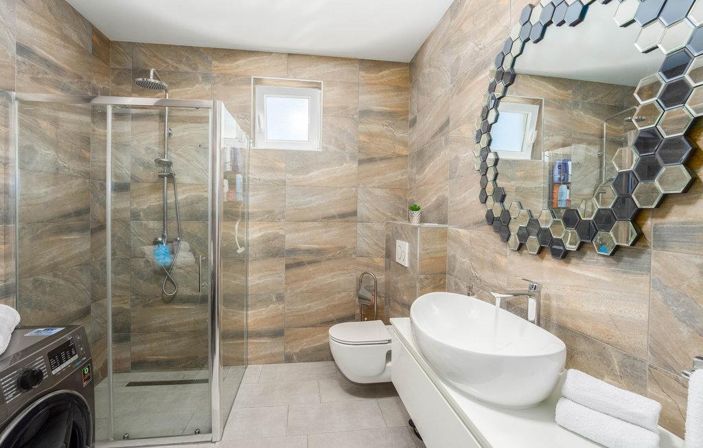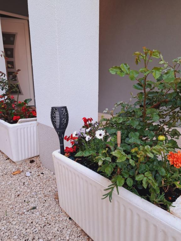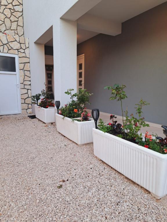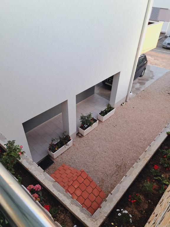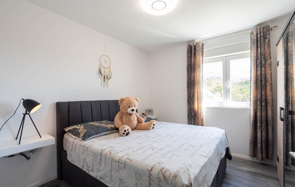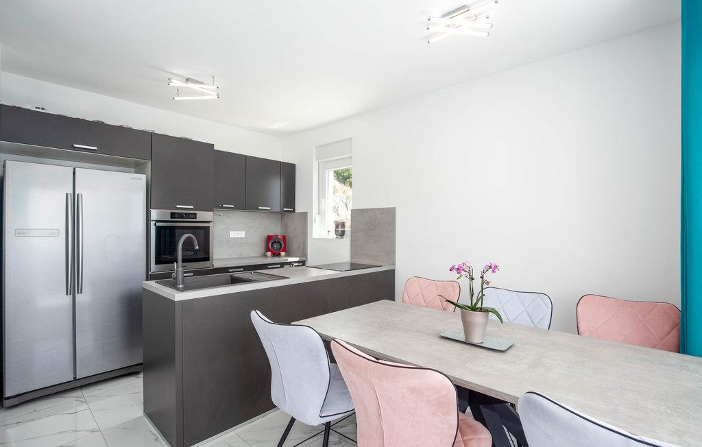 Novi i kompletno opremljen apartman nalazi se u mirnom predjelu s prekrasnim pogledom na more.Idealan za vaš mirni odmor s obitelji.Apartman ima sve što vam je potrebno,grill,dvije terase od kojih jedna ima jacuzzi koji na korištenje imaju isključivo samo gosti apartmana,te dva parkirna mjesta.Udaljen desetak minuta hoda do prekrasne šljunčane plaže.Kao domaćini stojimo Vam 24 sata na usluzi.Nadamo se da ćetete izabrati baš naš apartman za Vaš odmor te se radujemo Vašem dolasku.