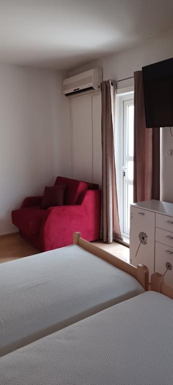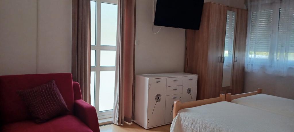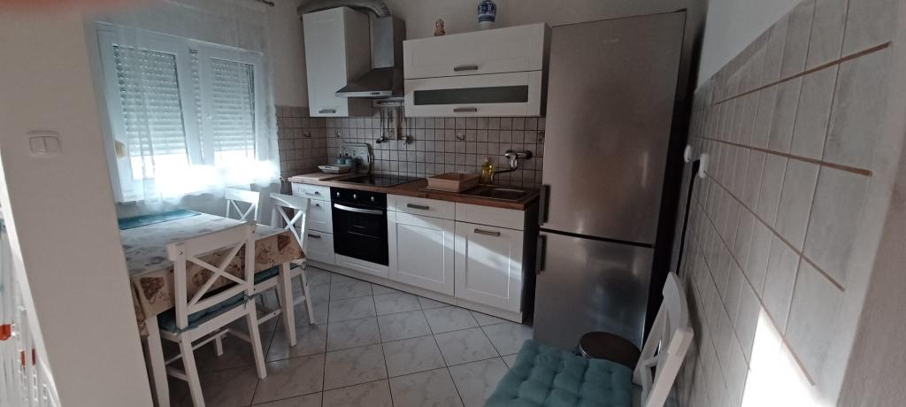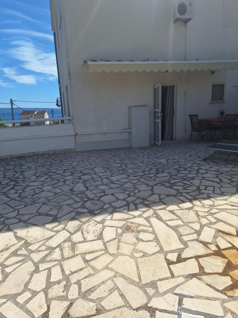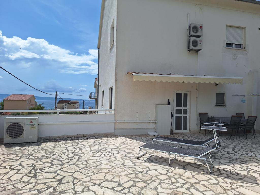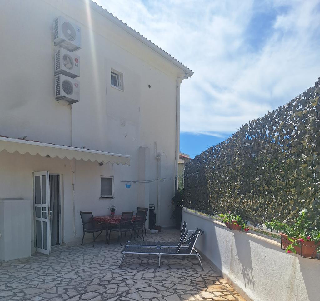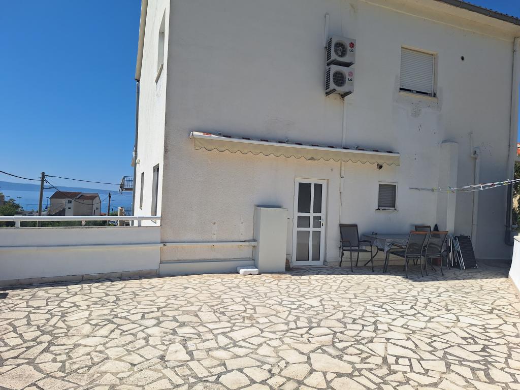 Apartman se nalazi u mirnom dijelu mjesta. Ima osiguran parking te svoj odvojen ulaz u objekt. Udaljen je 400m hoda od plaže, mora. U blizini su marketi, caffe barovi i restorani. Apartman je potpuno opremljen te idealan za parove, manje obitelji - ima dva odvojena kreveta (moguće spajanje u bračni) te manji kauč na rasklapanje (idealan za dijete do 16g.). Kuhinja apartmana je u potpunosti opremljena. Posteljina, ručnici, ručnici za plažu, toaletni papir su također osigurani i uračunati u cijenu. Apartman posjeduje i veliku terasu (stol, stolice, tendu) koja jednim dijelom ima pogled na more.