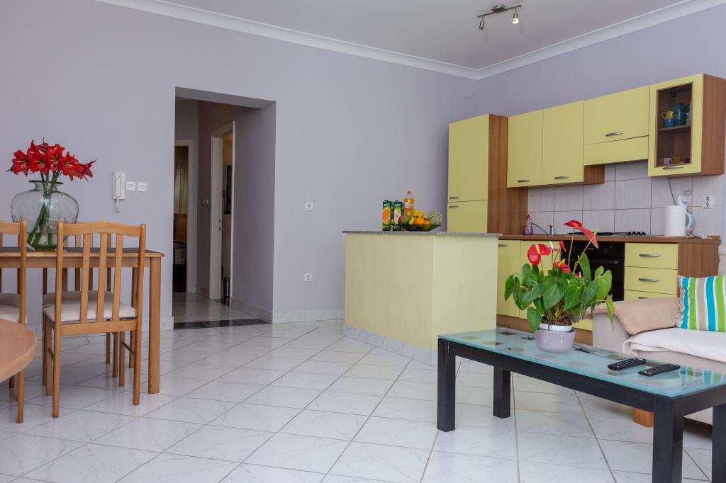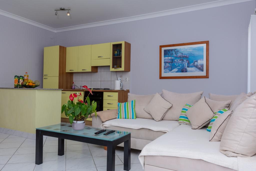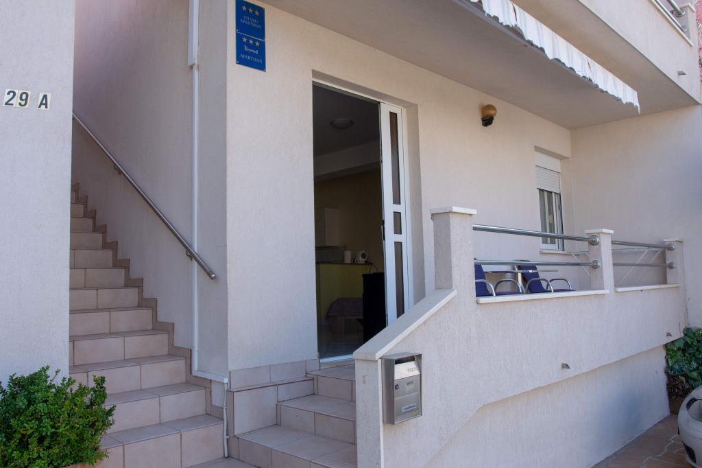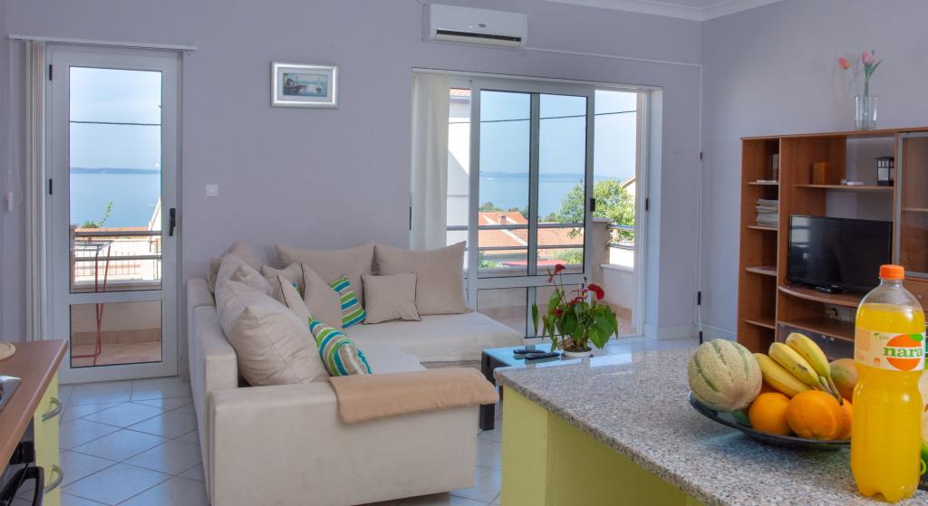 Dobrodošli u Apartmane Bay View! Kompletno opremljeni i srednje moderno namješteni apartmani smješteni su u mirnom predjelu Podstrane (u blizini hotela Le Meridien Lav). Podstrana se nalazi samo 7 km od povijesnog centra Splita te 10 km do Omiša i rijeke Cetine (kayaking, rafting). Dva velika shopping centra udaljena su samo 2 km od apartmana. U neposrednoj blizini apartmana nalaze se restorani (100 m), trgovine (100 m), bankomat (100 m) i veliki izbor plaža duž obale (udaljene 250 m). Apartmani imaju pogled na more, opremljeni su svime potrebnim (WiFi, TV, satelit, klima, parking, perilica rublja, perilica suđa), a veliki apartman ima pristup i grillu i sadrži dva kupatila.