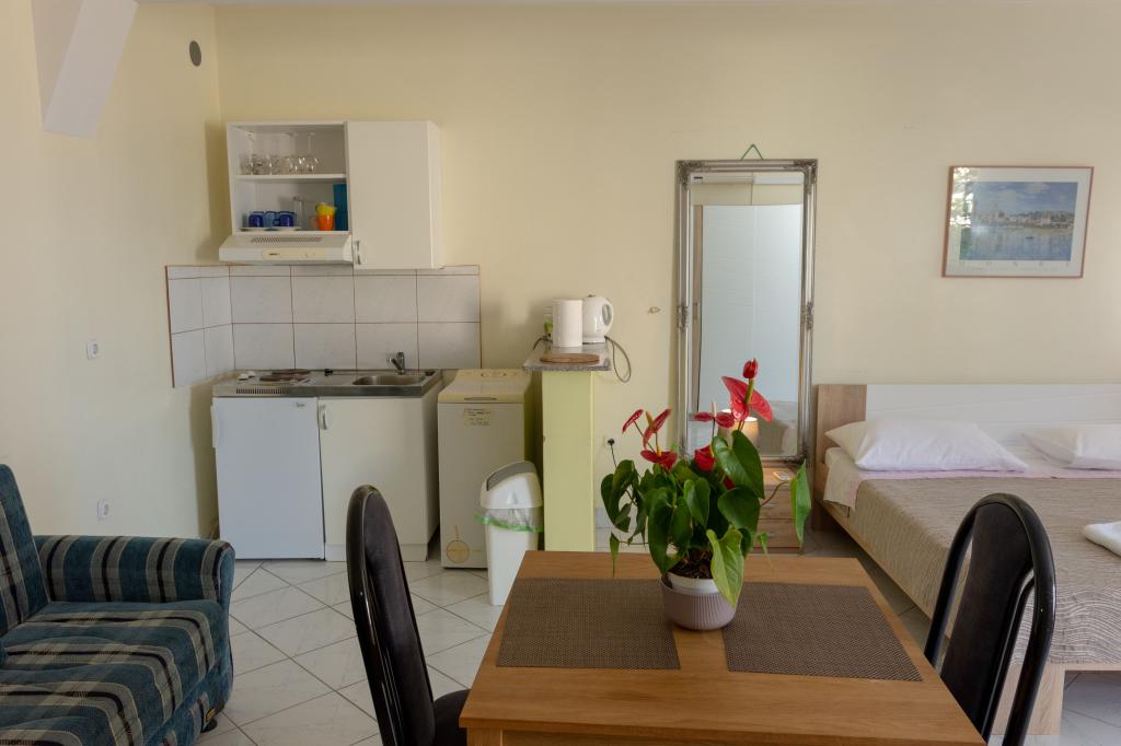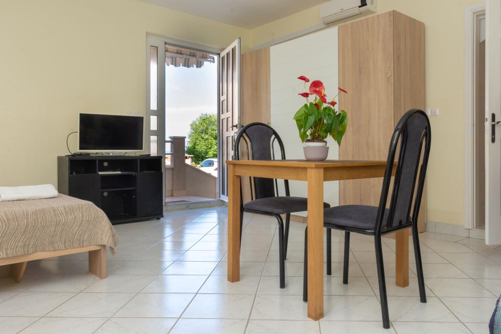 Turistička pristojba je uključena u cijenu.Odličan studio apartman s lijepom terasom na kojoj se može popiti kava s prekrasnim pogledom na more. Domaćini vrlo ljubazni i susretljivi. Sve preporuke za apartman.