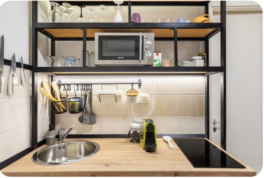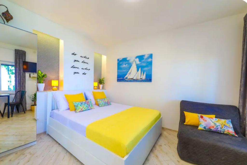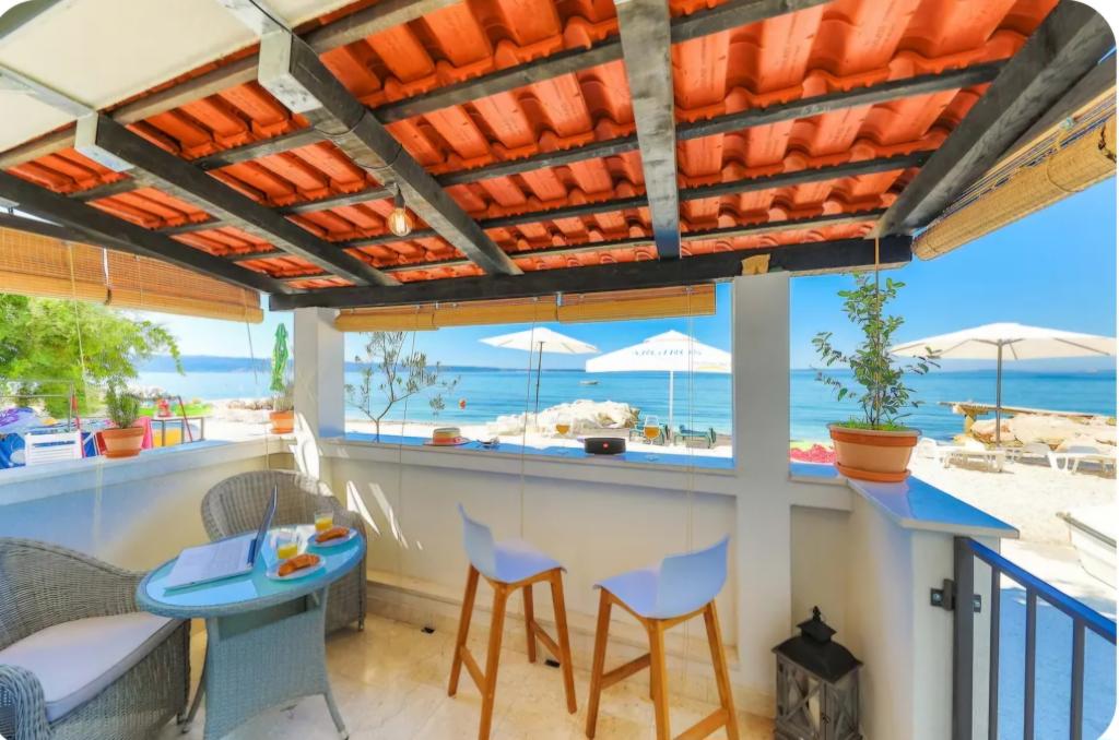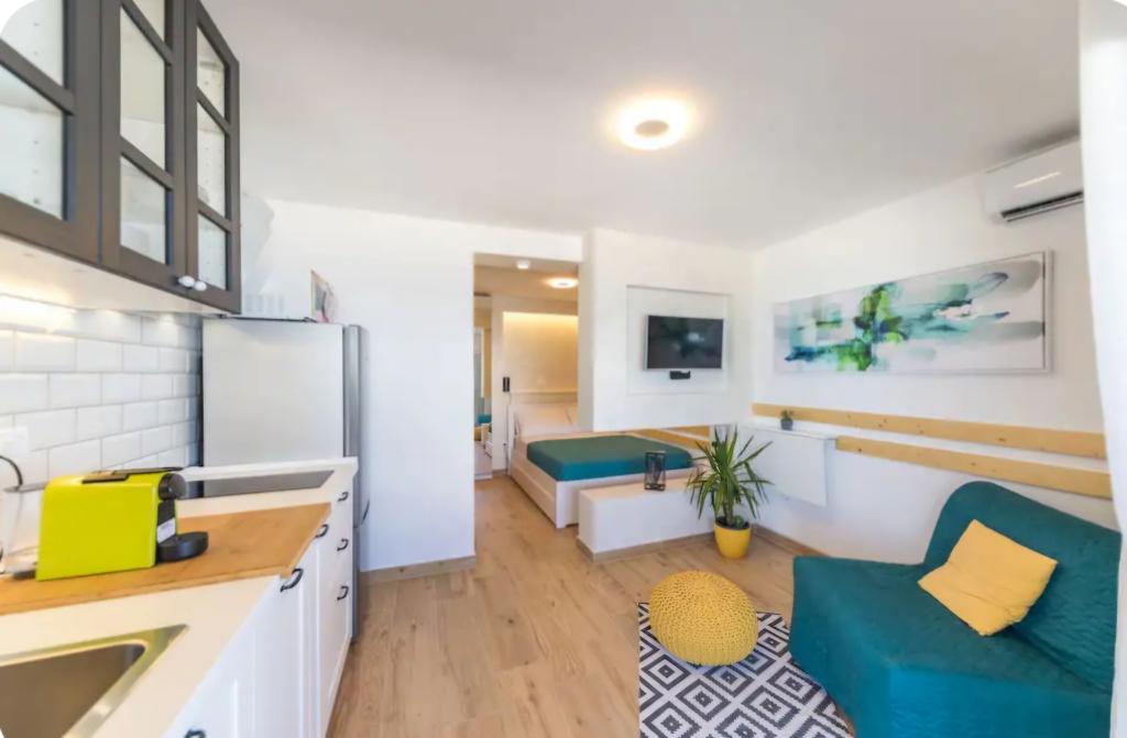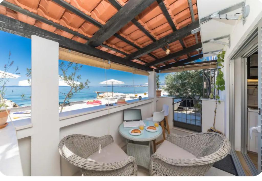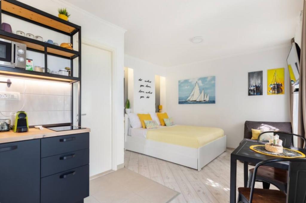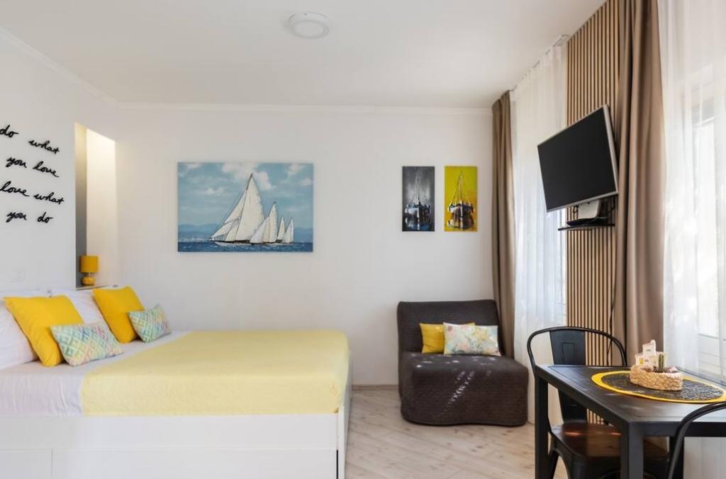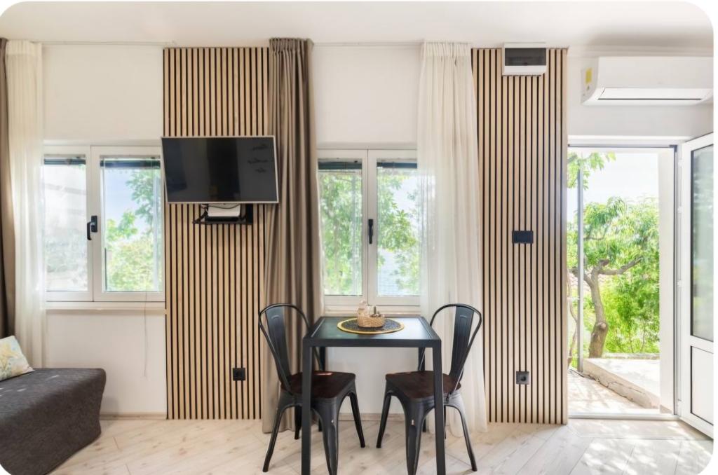 Vrlo šarmantan studio apartman, 30 metara udaljen od mora. Apartman ima i privatni parking. Lounge područje u opuštajućem vrtu je ono po čemu se apartman ističe. Također, ležaljke te suncobrani su uključeni u cijenu.