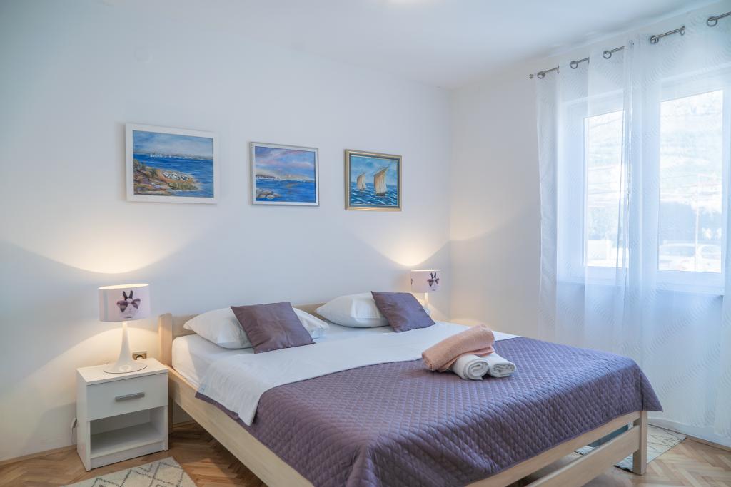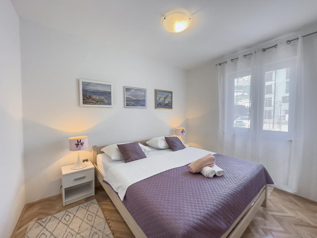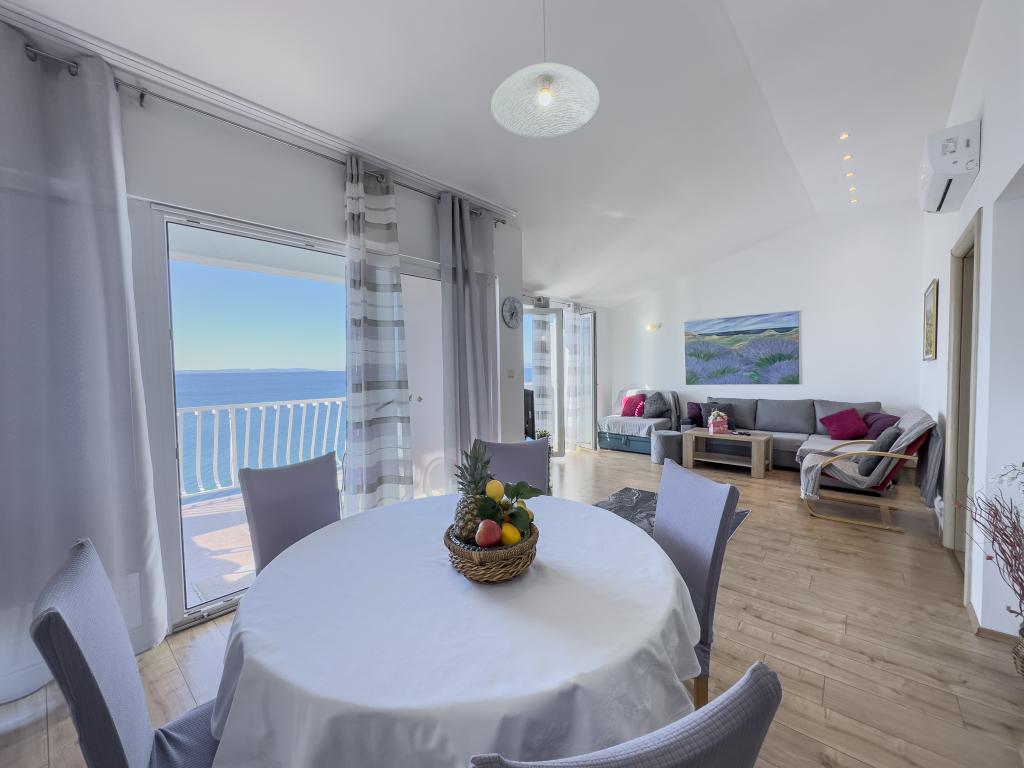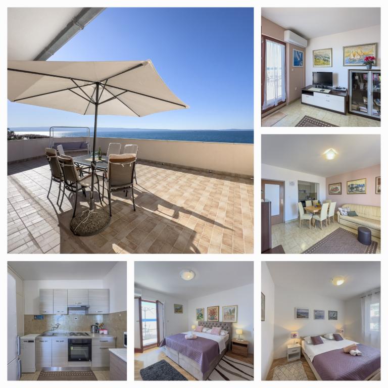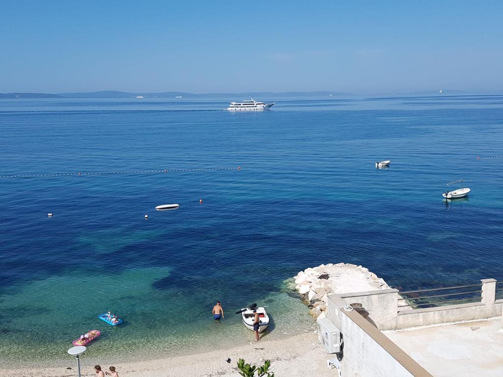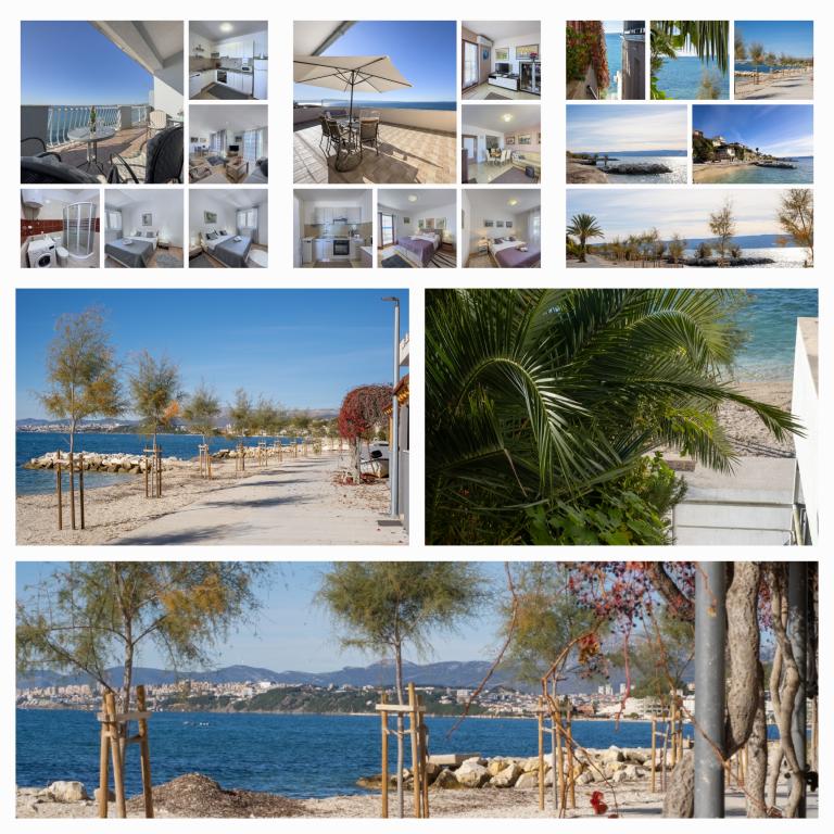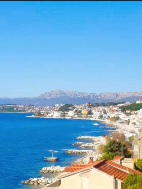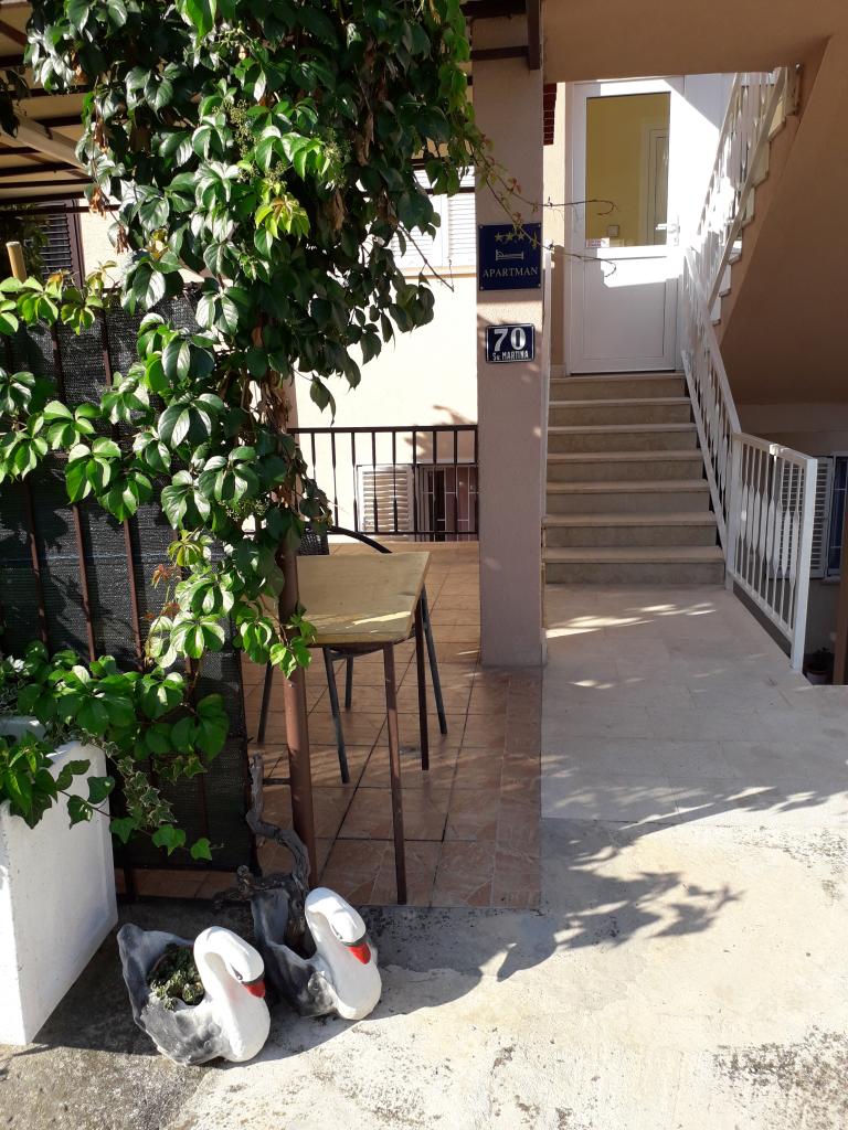 Kompletno opremljen stan apartman, sa dvije spavače sobe, dva klima uređaja, wi fi velikim balkonom, trpezarijom i kuhinjom te prostranim kupatilom, Smješten je u Sv. Martinu Podstrana do mora, sa prekrasnim pogledom na otoke i grad Split. Plaža je šljunćana, pogodna za kupanje djece sa velikom šetnicom uz more. Idealno je za obitelji sa djecom jer se ne ne prelazi cesta. Dvorište je ograđeno gdje se nalazi parking i roštilj. U blizini se nalaze trgovine, restorani, picerije, kave barovi, trgovine, lječnik, apoteka i zubna ordinacija, Blizina Splita sa zaštićenim spomenicima kulture UNESK- o Šibenika, Trogira, Solina i Omiš. Apartman s je velik i komotan i ima 4 ležaljke. Stan je prostran komotan sa velikim balkonom-terasom suncobranima prekrasni pogledom na more na samo 30 metara od mora dođite i uvjerite se. u blizini tenisko igralište, klub za jahanje konja, biciklisićke staze, izleti brodom na obližnje otoke, domaća hrana svježa riba školjke i ostali specijaliteti cjena uredu