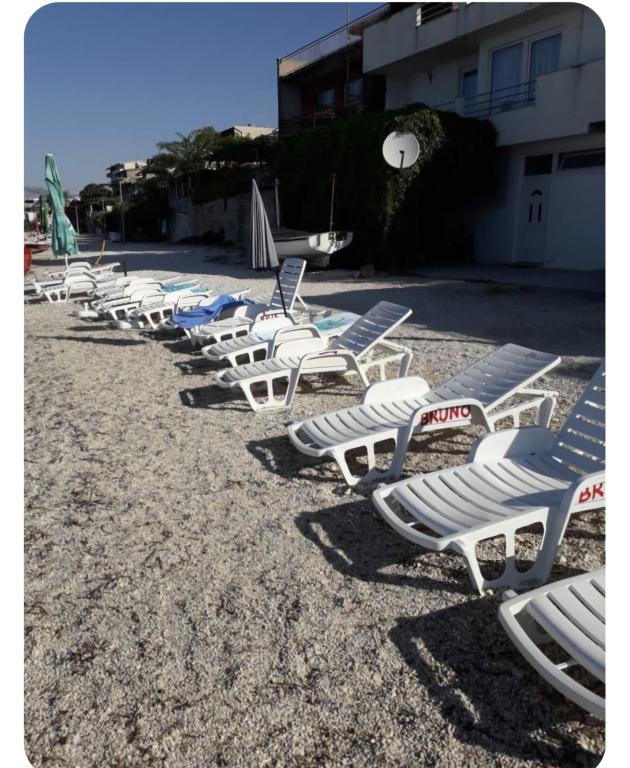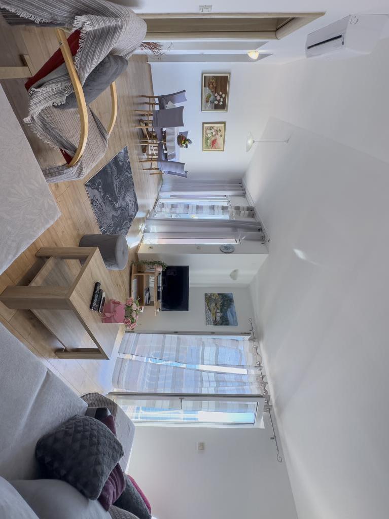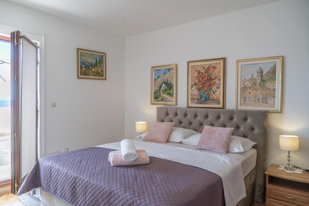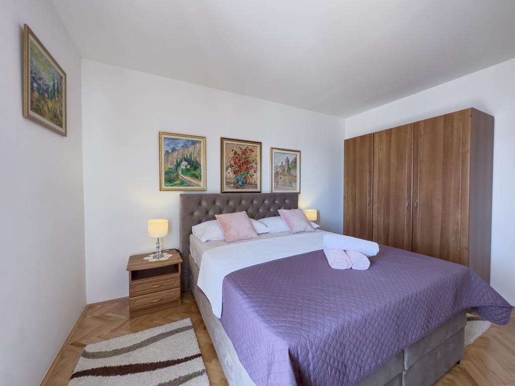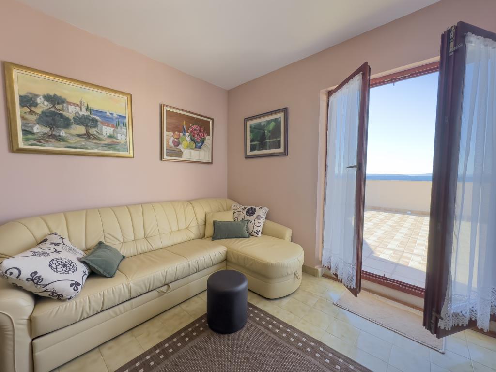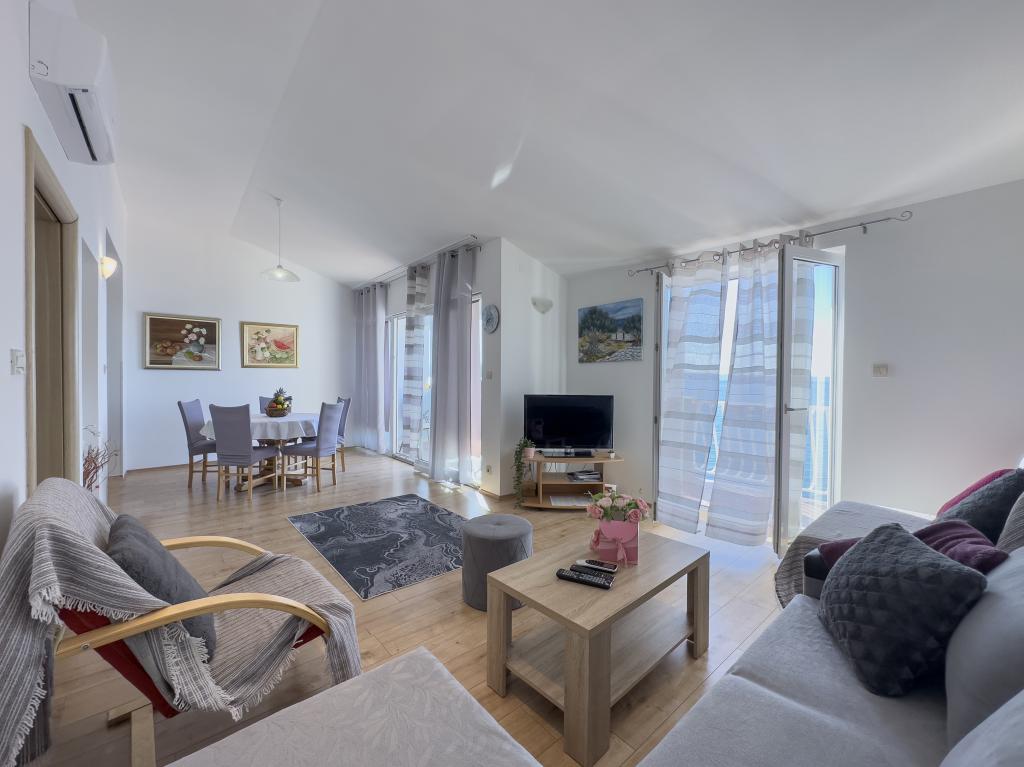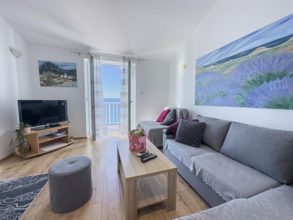 Kompletno opremljen stan apartman, sa dvije spavače sobe, dva klima uređaja, wi fi velikim balkonom, trpezarijom i kuhinjom te prostranim kupatilom, Smješten je u Sv. Martinu Podstrana do mora, sa prekrasnim pogledom na otoke i grad Split. Plaža je šljunćana, pogodna za kupanje djece sa velikom šetnicom uz more. Idealno je za obitelji sa djecom jer se ne ne prelazi cesta. Dvorište je ograđeno gdje se nalazi parking i roštilj. U blizini se nalaze trgovine, restorani, picerije, kave barovi, trgovine, lječnik, apoteka i zubna ordinacija, Blizina Splita sa zaštićenim spomenicima kulture UNESK- o Šibenika, Trogira, Solina i Omiš. Apartman s je velik i komotan i ima 4 ležaljke. Stan je prostran komotan sa velikim balkonom-terasom suncobranima prekrasni pogledom na more na samo 30 metara od mora dođite i uvjerite se. u blizini tenisko igralište, klub za jahanje konja, biciklisićke staze, izleti brodom na obližnje otoke, domaća hrana svježa riba školjke i ostali specijaliteti cjena uredu