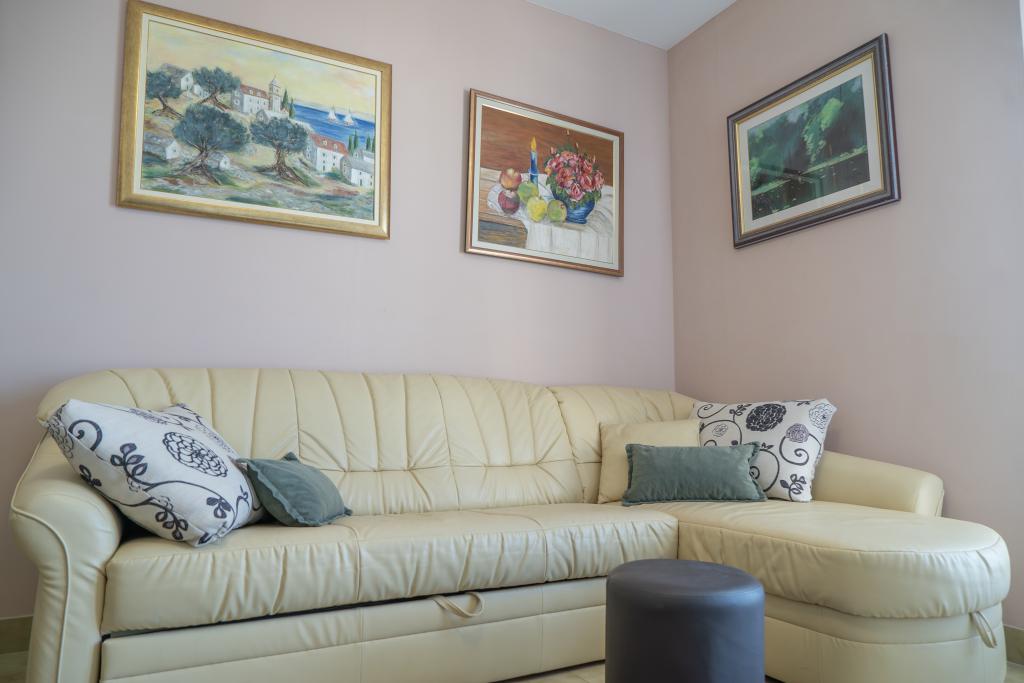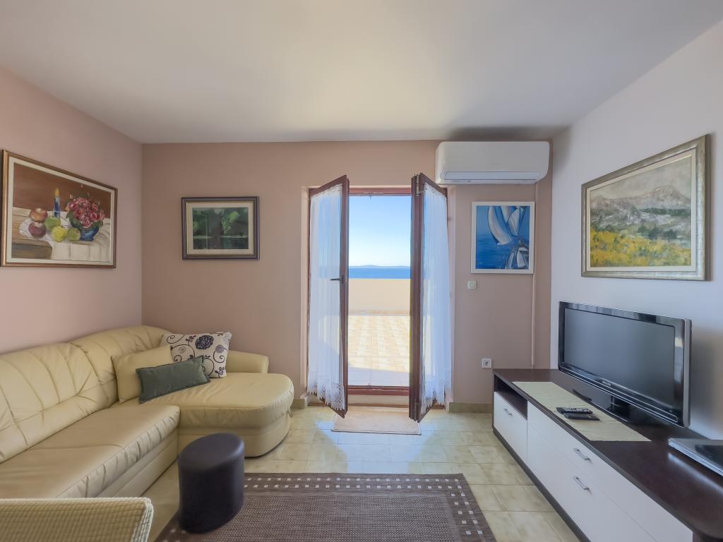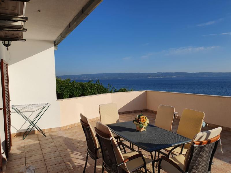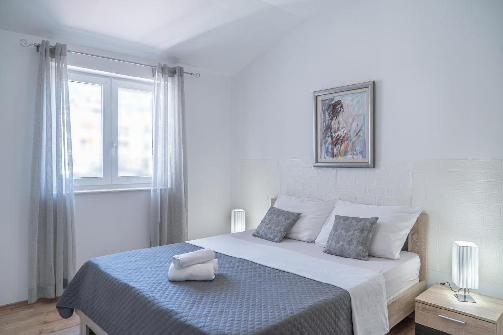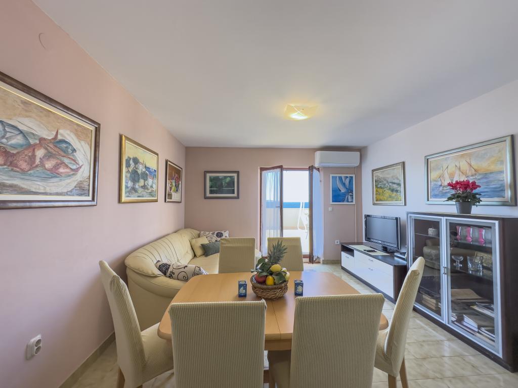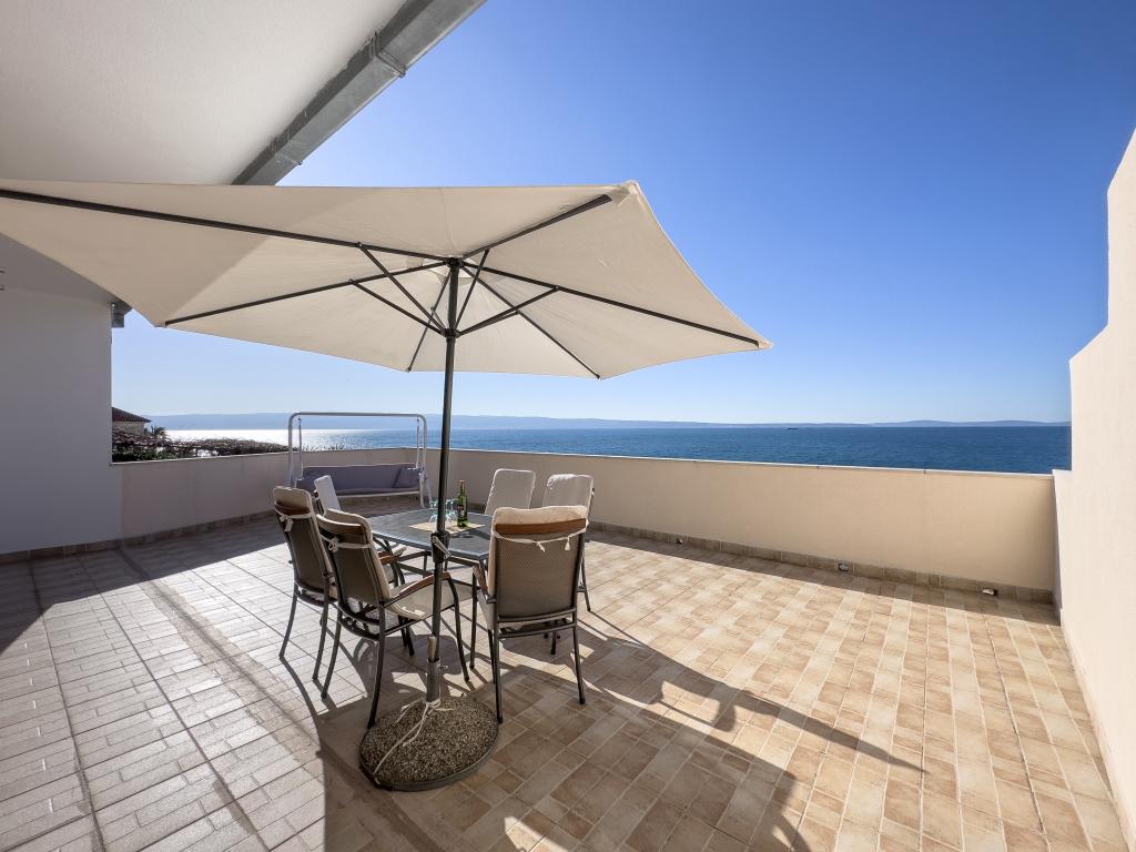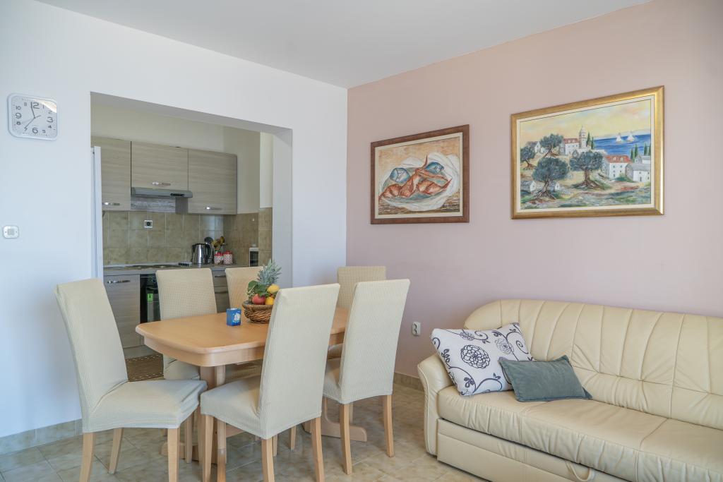 Kompletno opremljen stan apartman, sa dvije spavače sobe, dva klima uređaja, wi fi velikim balkonom, trpezarijom i kuhinjom te prostranim kupatilom, Smješten je u Sv. Martinu Podstrana do mora, sa prekrasnim pogledom na otoke i grad Split. Plaža je šljunćana, pogodna za kupanje djece sa velikom šetnicom uz more. Idealno je za obitelji sa djecom jer se ne ne prelazi cesta. Dvorište je ograđeno gdje se nalazi parking i roštilj. U blizini se nalaze trgovine, restorani, picerije, kave barovi, trgovine, lječnik, apoteka i zubna ordinacija, Blizina Splita sa zaštićenim spomenicima kulture UNESK- o Šibenika, Trogira, Solina i Omiš. Apartman s je velik i komotan i ima 4 ležaljke. Stan je prostran komotan sa velikim balkonom-terasom suncobranima prekrasni pogledom na more na samo 30 metara od mora dođite i uvjerite se. u blizini tenisko igralište, klub za jahanje konja, biciklisićke staze, izleti brodom na obližnje otoke, domaća hrana svježa riba školjke i ostali specijaliteti cjena uredu