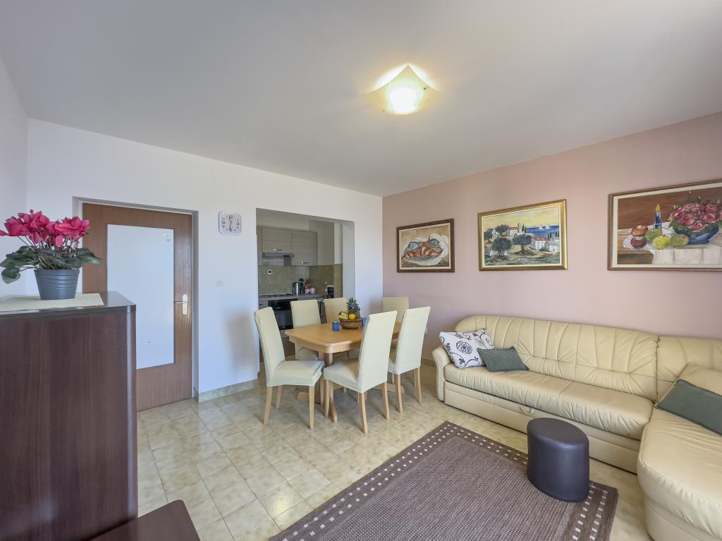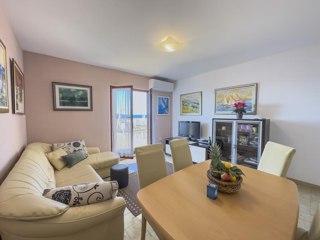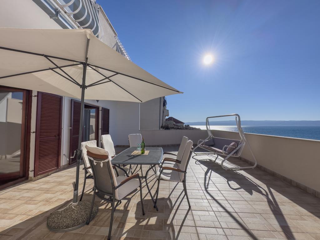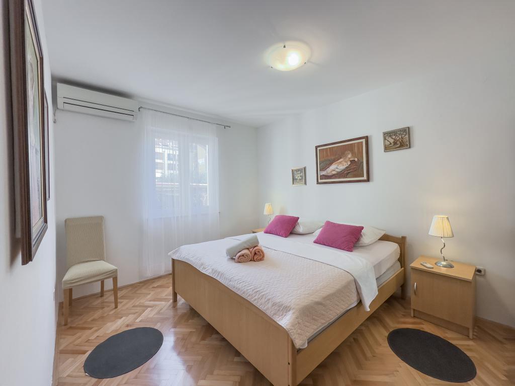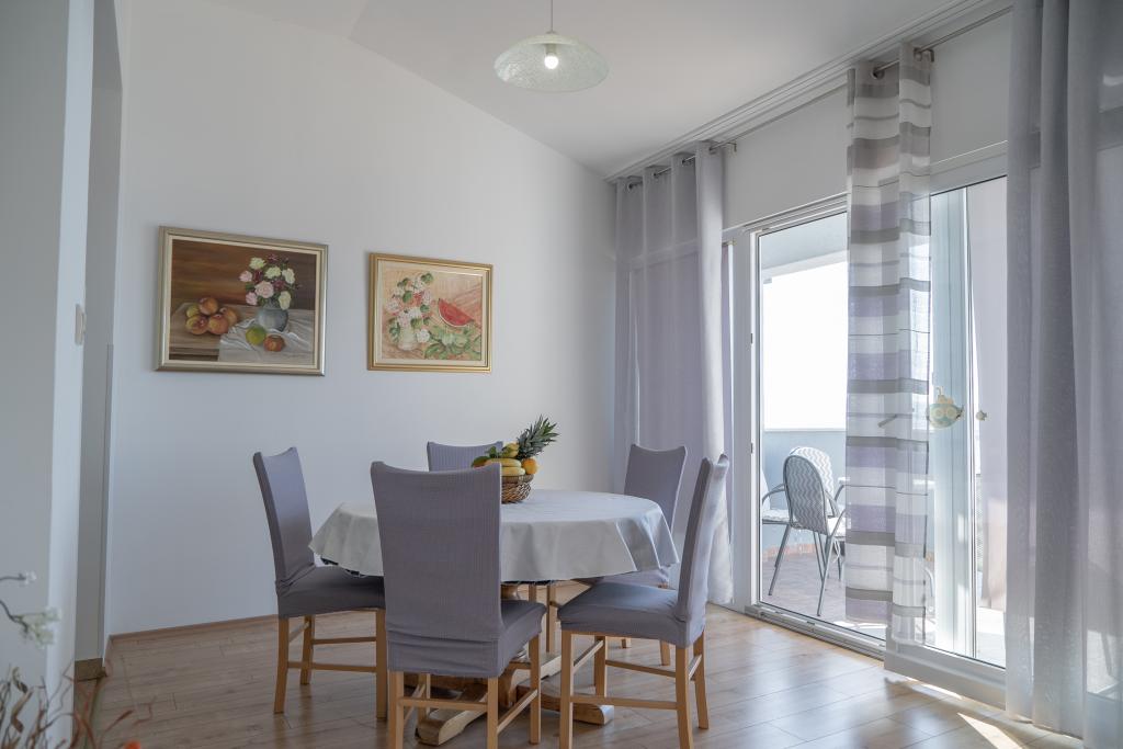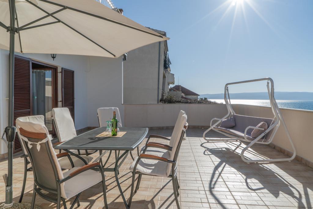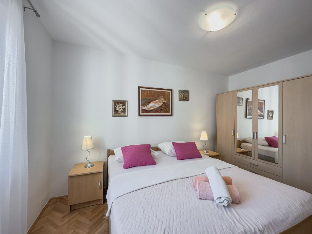 Kompletno opremljen stan apartman, sa dvije spavače sobe, dva klima uređaja, wi fi velikim balkonom, trpezarijom i kuhinjom te prostranim kupatilom, Smješten je u Sv. Martinu Podstrana do mora, sa prekrasnim pogledom na otoke i grad Split. Plaža je šljunćana, pogodna za kupanje djece sa velikom šetnicom uz more. Idealno je za obitelji sa djecom jer se ne ne prelazi cesta. Dvorište je ograđeno gdje se nalazi parking i roštilj. U blizini se nalaze trgovine, restorani, picerije, kave barovi, trgovine, lječnik, apoteka i zubna ordinacija, Blizina Splita sa zaštićenim spomenicima kulture UNESK- o Šibenika, Trogira, Solina i Omiš. Apartman s je velik i komotan i ima 4 ležaljke. Stan je prostran komotan sa velikim balkonom-terasom suncobranima prekrasni pogledom na more na samo 30 metara od mora dođite i uvjerite se. u blizini tenisko igralište, klub za jahanje konja, biciklisićke staze, izleti brodom na obližnje otoke, domaća hrana svježa riba školjke i ostali specijaliteti cjena uredu