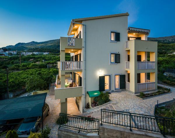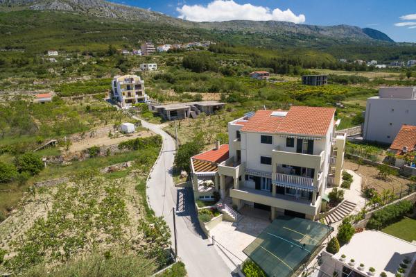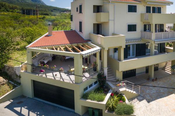 Dragi gosti, želimo vam dobrodošlicu u našu kuću koja je izgrađena 2012 godine na mirnoj lokaciji u blizini mora (cca 90 metara) i sportskog igrališta Petričevo u Podstrani, samo 10 kilometara od Splita. Na raspolaganju su vam četiri apartmana, od toga su tri apartmana kapaciteta 2 2 (svaki 50 m2) i jedan apartman 2 4 (55 m2). Za svaki apartman osiguran je privatni parking. Naši apartmani opremljeni su klima uređajem, besplatnim wifi internetom i satelitskom televizijom. Radujemo se vašem dolasku, Obitelj Buble