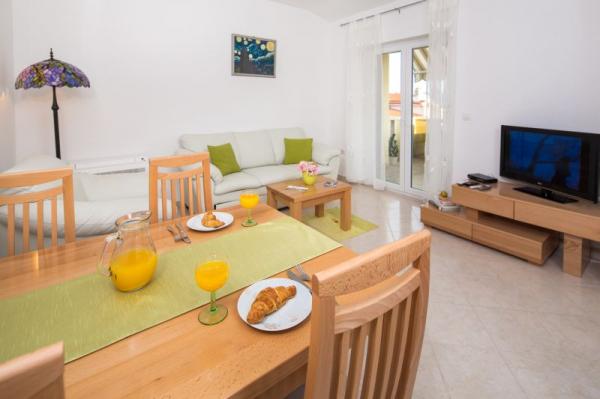 Boravili smo u apartmanu A6 koji je izvrstan, uredan, čist, odlično opremljen i prostran. Domaćin nas je redovito opskrbljivao čistim ručnicima, dobili smo butelju vina i imali smo na raspolaganju domaće grožđe iz vrta s kojim smo se mogli poslužiti. Lokacija objekta je odmah blizu plaže i ima par minuta laganog hoda. Ovaj smještaj bi svima preporučila jer su domaćini divni ljudi, imaju dvoje predivne djece i sami smještaj je isti kao na slikama. Veliki pozdrav iz Slavonskog Broda i još jednom veliko hvala na svemu.. Da ima ocjena 10, Vi bi ju dobili..