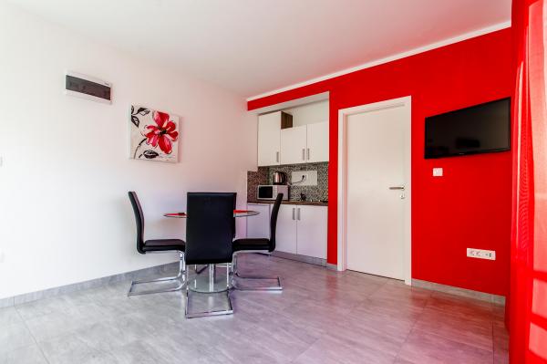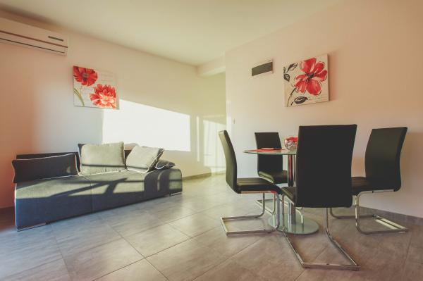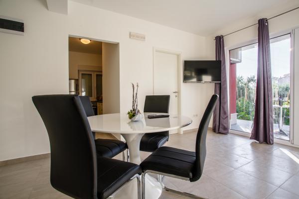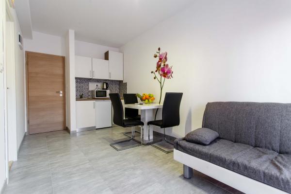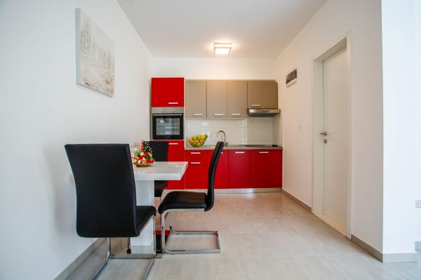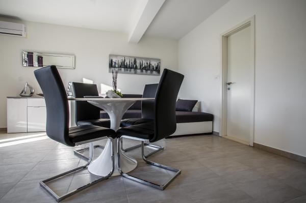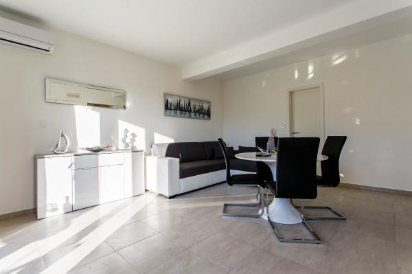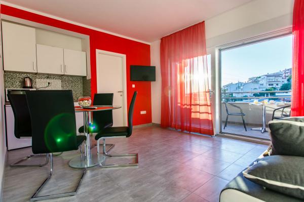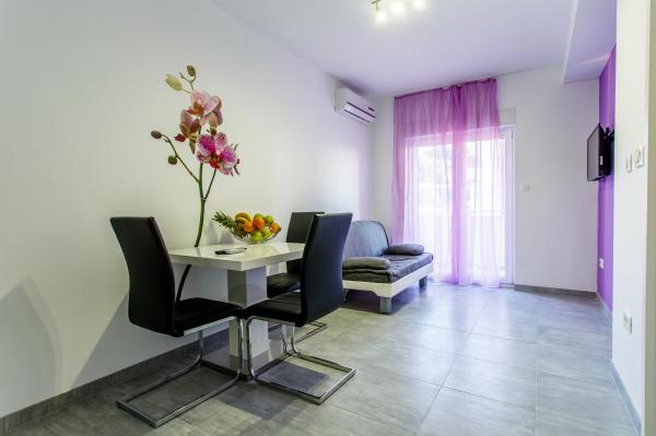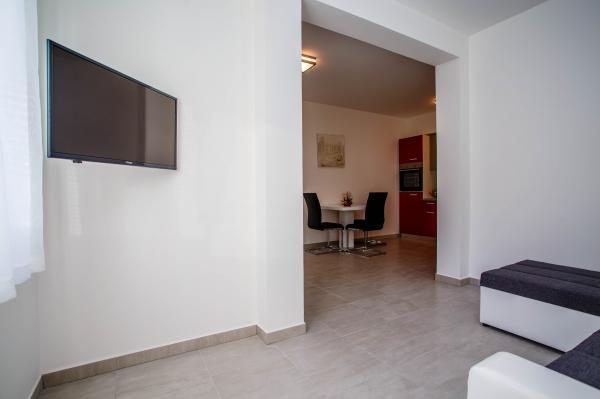 Novi luksuzno uređeni apartmani Budimir nalaze se svega 400 metara od hotela sa 5 zvjezdica Le Meridien Lav i najblize plaze. Svi apartmani su moderno opremljeni. Sastoje se od kuhinje u kojoj se nalazi mikrovalna i kuhalo za vodu, blagavaone, kupatila i sobe. Opremljeni su klima uređajem, besplatinim internetom, dok se ispred objekta nalazi besplatno parking mjesto. Svaki apartman ima sušilo za kosu, toaletne potrepštine posteljinu i ručnike. Najbliži market, pekara i restoran udaljeni su 300 metara od objekta. 400 metara udaljen je wellness a 1 km udaljen je golf teren.
