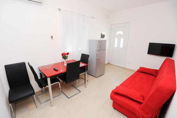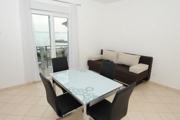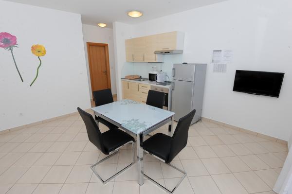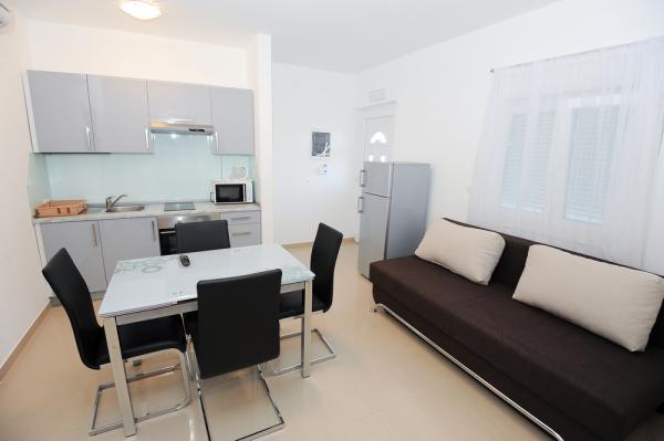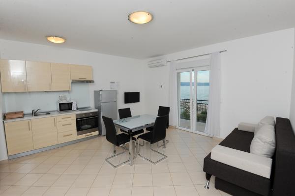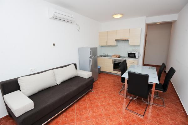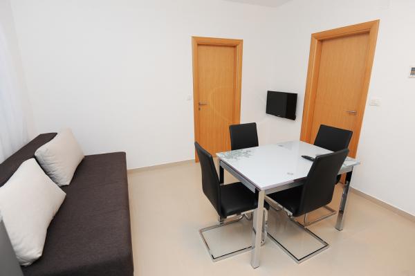 Apartman je čist i uredan i jako prostran. Za smještaj pet zvjezdica. Prilaz mi se ne sviđa, cesta je odmah blizu i svi se brzo voze. I nema baš nekih sadržaja, restorani i kafići, nema ni uređene šetnice uz more. Nije preporučljivo za malu djecu i kolica. Ružno je prijeći preko ceste, a i nema se gdje ni šetati s kolicima jer je sve pijesak i šljunak.