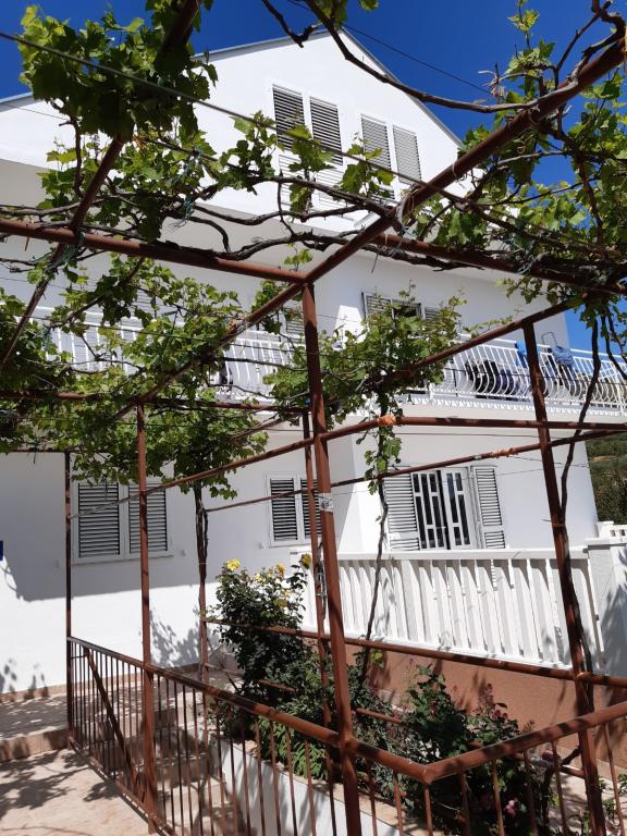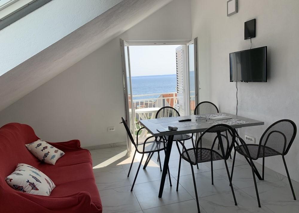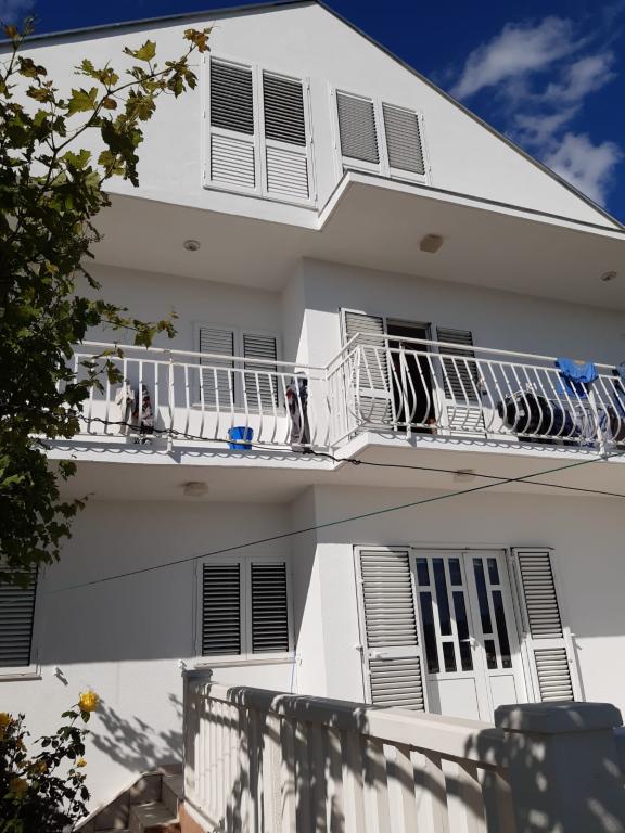 Dva apartmana se nalaze u obiteljskoj kući koja je smještena u mirnom djelu. Kuća se nalazi 200 metara od plaža. Apartmani imaju balkone s pogledom na more, odvojene ulaze i osiguran parking za goste. Površina: veliki apartman 80 m2 na prvom katu i manji apartman u potkrovlju 37 m2. Pitajte domaćina o informacijama o objektu i plazi