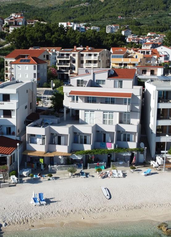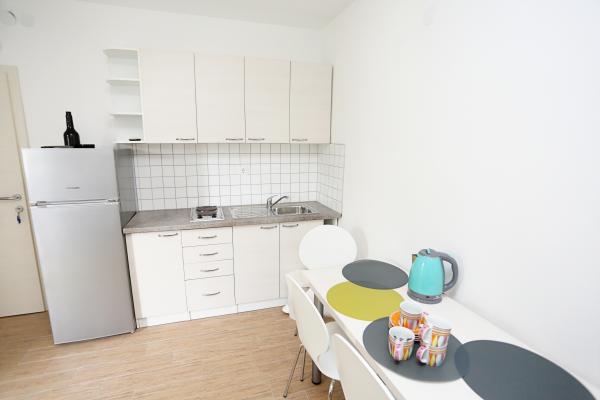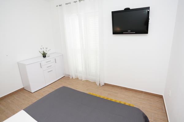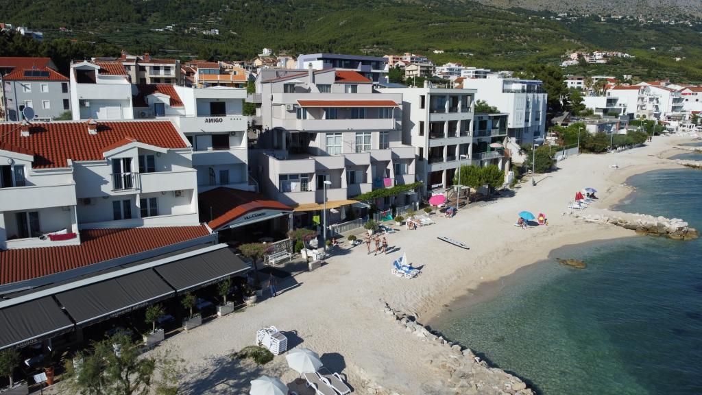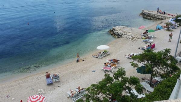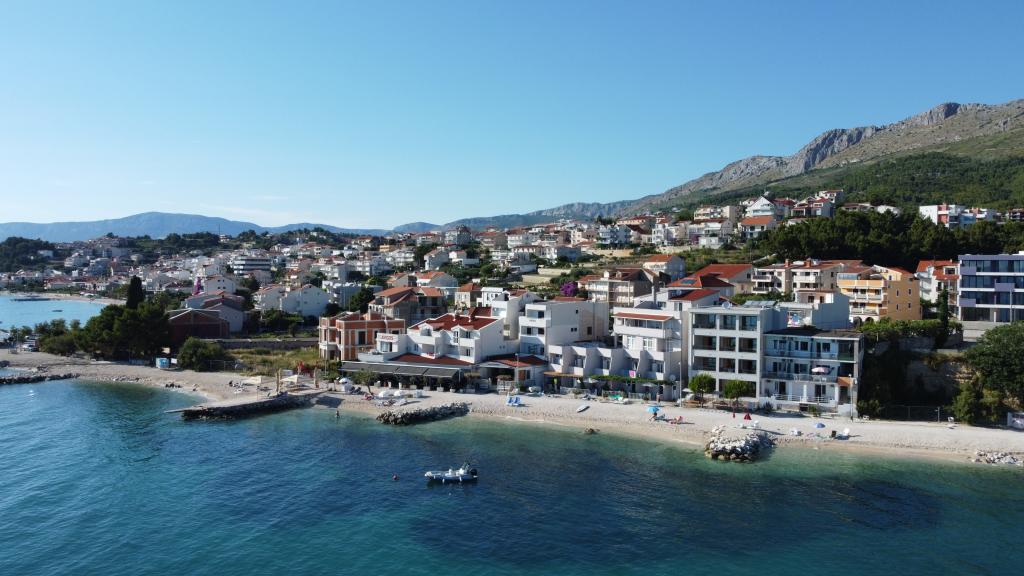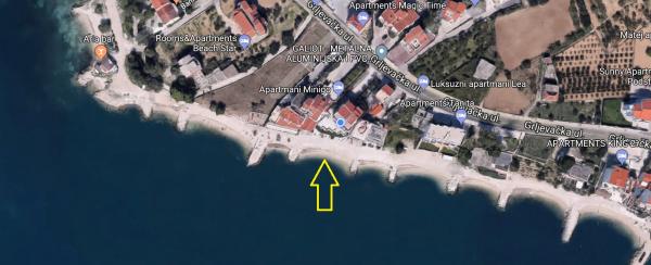 Kompletno opremljen apartman u mirnom susjedstvu, smješten prvi red do mora. Apartman se nalazi na prvom katu obiteljske kuće, na samoj plaži, 12 metara od mora.Dvije trgovine su u krugu od 300 metara, restoran je 20 metara udaljen. U susjedstvu ima puno izbora za organizaciju izleta i sportskih aktivnosti.