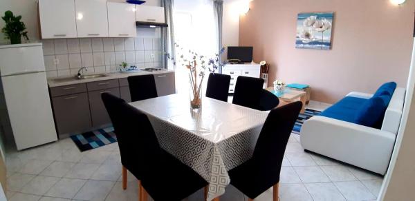 Sve u svemu mi smo zadovoljni. Bili smo dvije obitelji u dva apartmana. Vlasnica Natalia je vrlo ljubazna. Pogled na more je super. Malo manje od mjesta gdje bi mogao sjediti u večernjim satima, ali sve u svemu na balkonu nije bilo loše. U blizini mora, 5 minuta. Plaža s tušem, sladoled, pubovi.