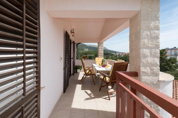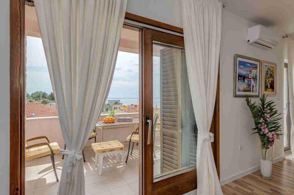 Novija velika kuća na tri kata u Podstrani (Strožanac) , smještena blizu mora i hotela Le Meridien. Nalazi se samo 15 minuta vožnje od Splita. Kuća se sastoji od 3 apartmana za 3 ili 4 osobe (imaju po 40 metara četvornih), velikog četverosobnog apartmana od 120 metara četvornih za 7 do 8 osoba, te velikog trosobnog apartmana u prizemlju koji može primiti 6 do 7 osoba. Apartmani imaju terase i potpuno su opremljeni, klimatizirani i imaju wi-fi internet. Ostale informacije provjerite putem maila. U blizini su plaže, te brojnih drugih sadržaja, kafići, restorana, trgovina, pizzerie. U dvorištu ima parkiralište. Apartmani su smješteni u mirnom okružju, a domaćini su im na usluzi za sve potrebne informacije. Kuća ima dvije garaže s ukupno 3 parking mjesta, a u blizini je i besplatan ulični parking Autobusna linija Split-Omiš ( broj 60) vozi svakih 20 minuta, a autobusna stanica se nalazi 5 minuta hoda od apartmana