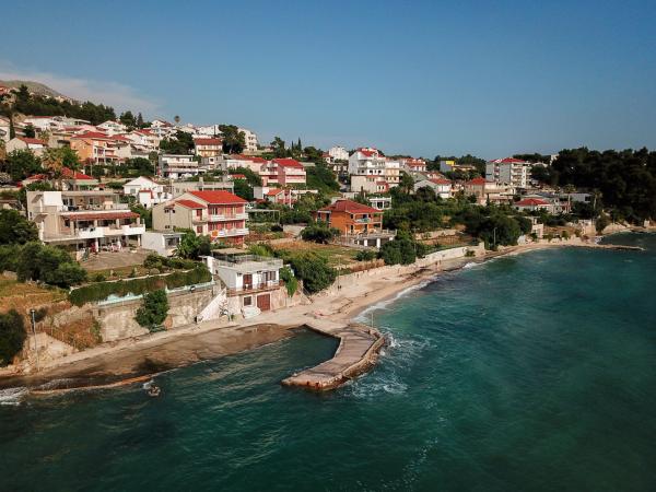 Kuća se nalazi na samoj obali mora. Iz kuće se vidi Split i otoci. Okućnica je velika i pogodna za obitelji s malom djecom. U blizini kuće na samoj plaži nalaze se restorani i pizzerije. Kuća posjeduje svoj veliki vlastiti parking. U blizini se nalazi samoposluga. Kuća je udaljena od centra Splita 5 kilometara. U blizini kuće se nalaze veliki sportski kompleksi te ima dosta staza za trčanje i biciklizam. Želimo vam ugodan boravak u našem objektu.