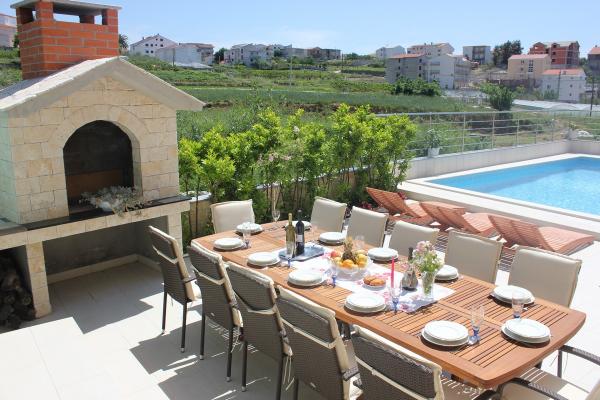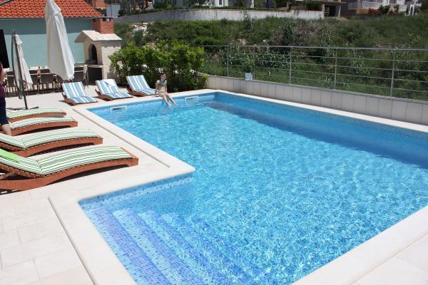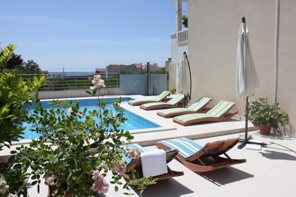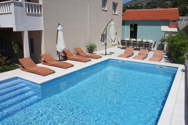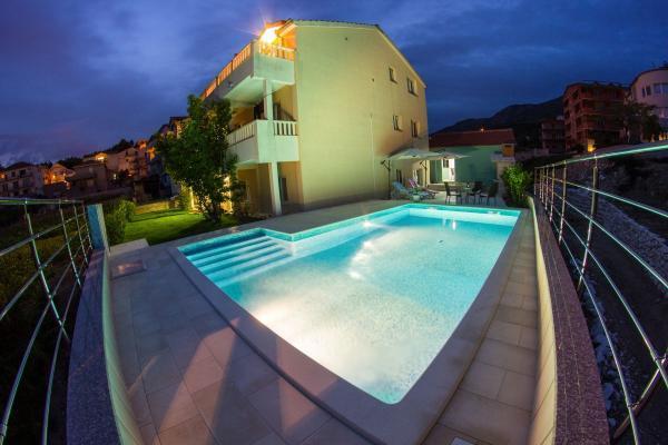 Moderno namještena villa sa privatnim bazenom i saunom u centru Podstrane, okružena zelenilom i prirodom. Na tri kata i 350 m2 nalazi se 6 spavaćih soba, 4 dnevna boravka, 5 kupaonica i 2 wc. U villu se može smjestiti 10 osoba na osnovnim i do 4 osobe na pomoćnim ležajevima. U villi su 4 kuhinje i vanjska kuhinja, klimatizirana je i ima pristup internetu. Ispred ville se nalazi bazen (35 m2), sauna, roštilj i parking za 4 auta. Villa se iznajmljuje od 30. svibnja do kraja rujna kao kuća u cjelini, minimalno na tjedan dana. Tijekom ostatka godine iznajmljuje je kao četiri odvojena apartmana za 4 do 6 ljudi.