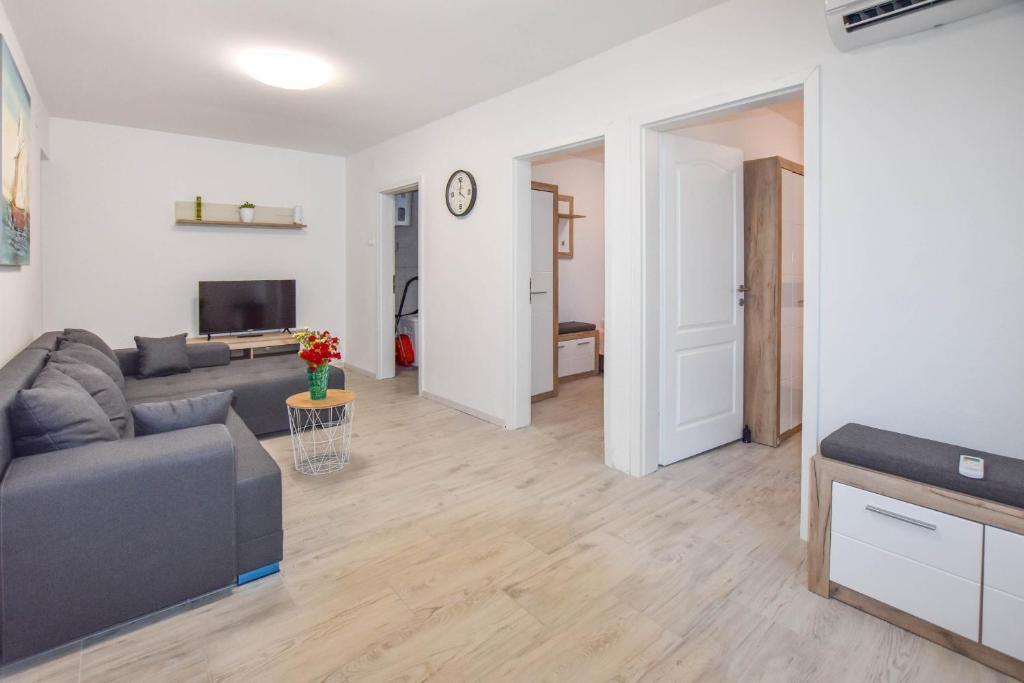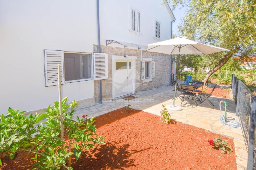 Ovaj apartman također nudi sljedeće sadržaje: Besplatni klima uređaj: Apartman je opremljen klima uređajem kako biste se mogli osvježiti i ugodno boraviti čak i tijekom vrućih ljetnih dana. Potpuno opremljena kuhinja: U apartmanu se nalazi potpuno opremljena kuhinja s hladnjakom, štednjakom, mikrovalnom pećnicom, perilicom posuđa, posuđem i priborom za jelo. To vam omogućuje pripremu vlastitih obroka i udobnost kao kod kuće. TV i besplatni WiFi: Apartman je opremljen televizorom kako biste se mogli opustiti i uživati u omiljenim emisijama i filmovima. Također, besplatni WiFi omogućuje vam povezivanje s internetom i ostajanje u kontaktu s ostatkom svijeta. Perilica rublja: Gostima je na raspolaganju perilica rublja, što je posebito praktično za duže boravke ili za obitelji s djecom. Vrt s vanjskim sjedećim mjestima: Uživajte u prekrasnom uređenom dvorištu s vanjskim sjedećim mjestima. Ovdje možete opustiti, čitati knjigu ili uživati u obroku na svježem zraku. Navedeni dodatni sadržaji pružaju udobnost, praktičnost i mogućnost uživanja u prostoru i okolini apartmana tijekom vašeg boravka.