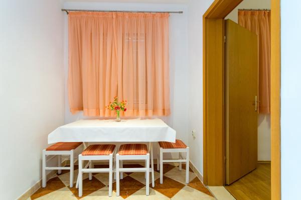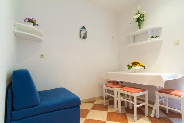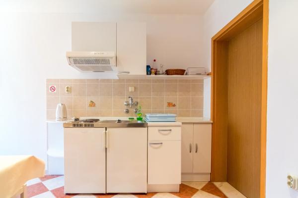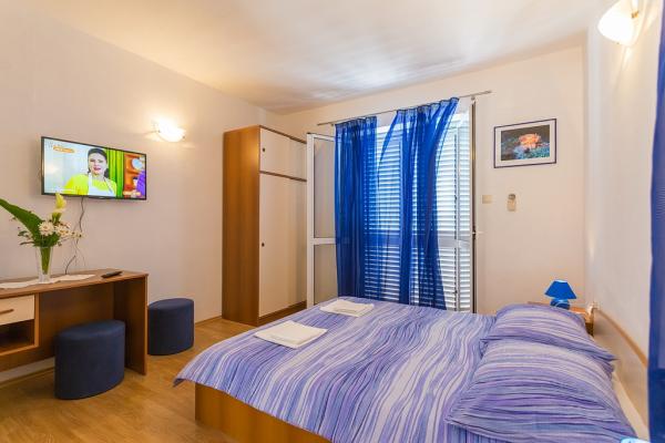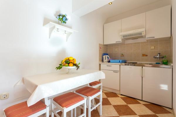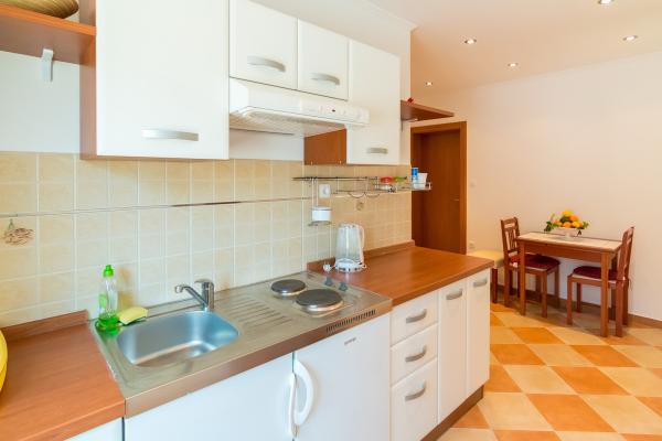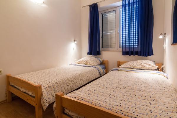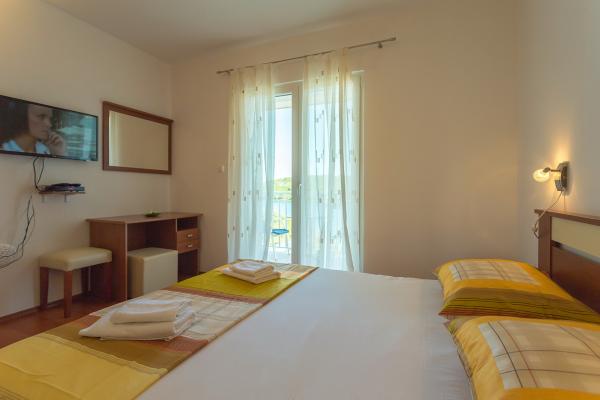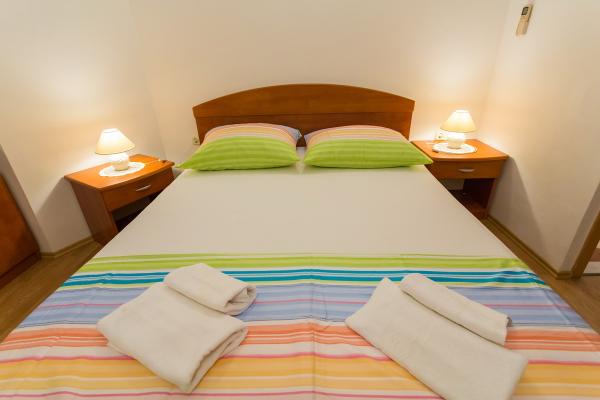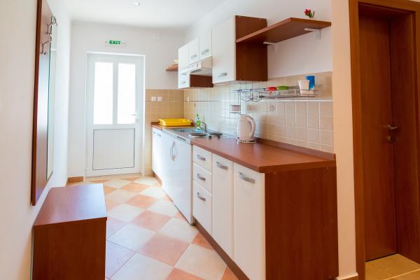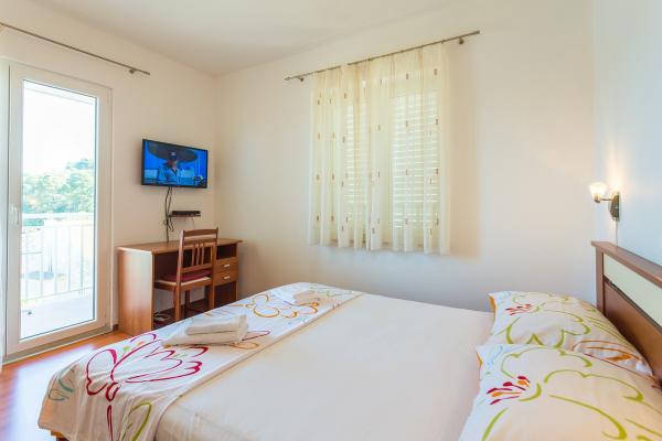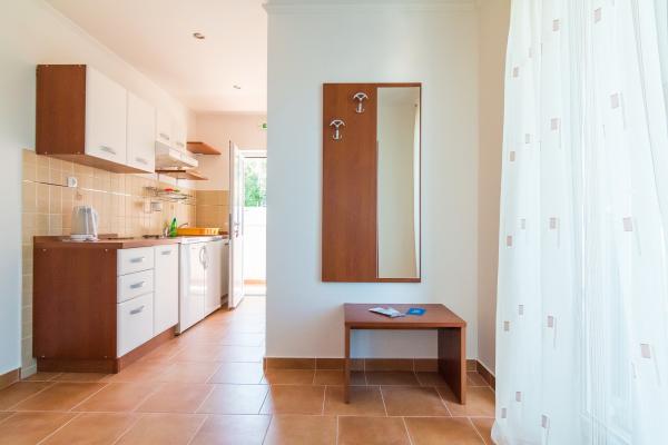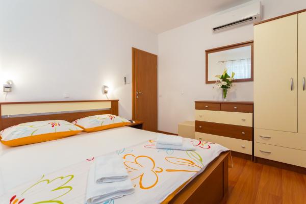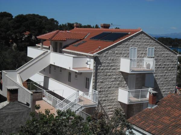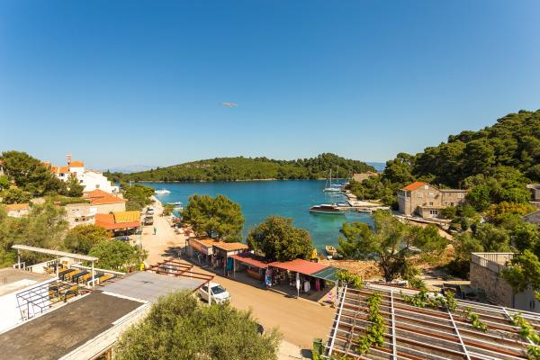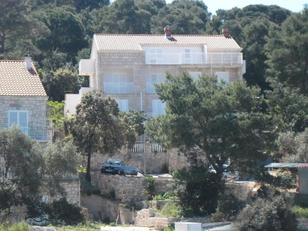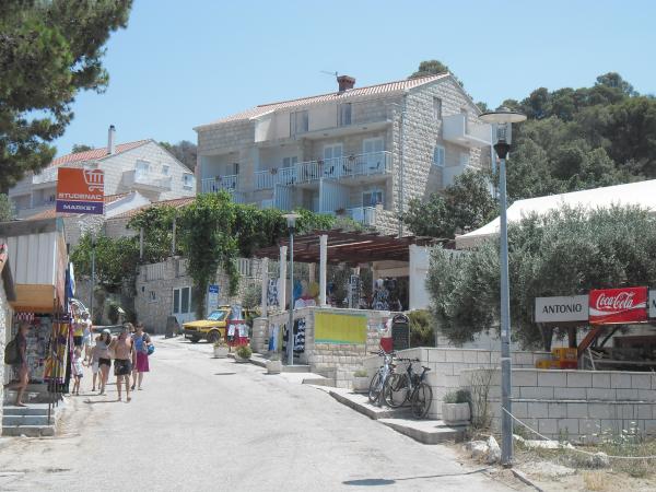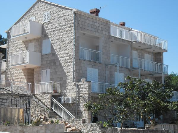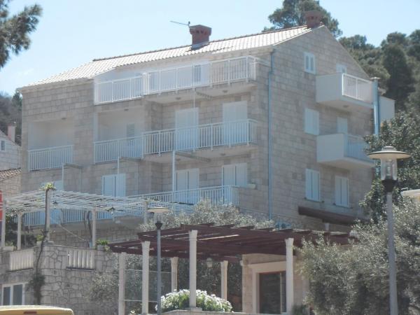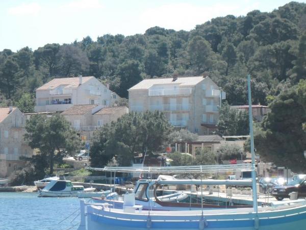 Apartman A (2 2 osobe) Apartman ima: 1 spavaća soba s bračnim krevetom, 1 spavaća soba sa 1 krevet 1 pomoćni krevet na raspolaganju, 1 Kuhinja s blagovaonicom, 1 tuš - WC, 1 balkon sa pogledom na more klima uređaj (hlađenje i grijanje) TV-SAT Apartman B (4 osobe) Apartman ima: 2 spavaće sobe s bračnim krevetima, 1 Kuhinja s blagovaone, 1 tuš - WC, 1 balkon sa pogledom na more klima uređaj (hlađenje i grijanje) TV/SAT Apartman C (2 1 osoba) Apartman ima: 1 spavaća soba s bračnim krevetom, 1 dodatni krevet moguć, 1 Kuhinja s blagovaone, 1 tuš - WC, 1 balkon sa pogledom na more klima uređaj (hlađenje i grijanje) TV-SAT Apartman D (2 1 osoba) Apartman ima: 1 spavaća soba s bračnim krevetom, 2 dodatna ležaja je moguće, 1 Kuhinja s blagovaone, 1 tuš - WC, 1 balkon sa pogledom na more klima uređaj (hlađenje i grijanje) TV/SAT Apartmani se nalaze u samom sredistu Nacionalnog Parka Mljet, 500 metra od Malog jezera.