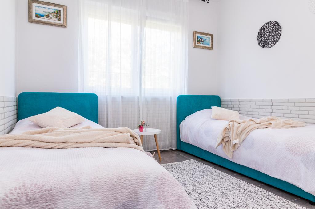 Pročitaj više Smještajne jediniceAkontacija iznosi 10% od ukupne cijene smještaja. Vrijeme dolaska iza 16 sati, odlaska do 10 sati ujutro. Čišćenje uračunato u cijenu. Posteljina se ne naplaćuju. Klima se naplaćuje 5 eura dnevno. Depozit 15o Eura