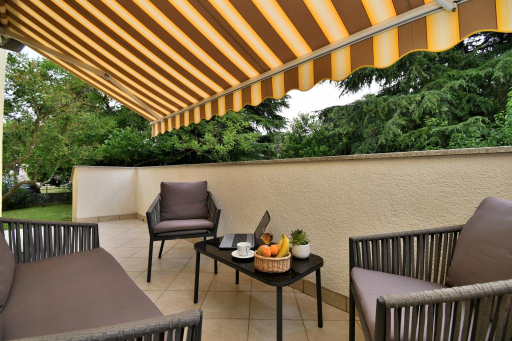 Nalazimo se u turističkom djelu Poreča, naselju Špadići.Naš se apartman sastoji od 2 spavaće sobe sa duplim krevetima, kuhinje i blagovaone, hodnika, te kupatila sa tuš kabinom, WC-om i bideom. U apartmanu postoji sve što je potrebno kako bi Vaš odmor bio pravi odmor. Sva je posteljina na raspolaganju, kao i kompletan pribor za jelo i piće, frižider, aparat za kavu, električni štednjak,mikrovalna pećnica,TV sa satelitskim prijemom i osim toga imate besplatni pristup internetu s neograničenim korištenjem. Ispred apartmana se nalazi terasa sa stolom i stolicama koja je zaštićena tendom za sunce. Kraj terase možete koristiti i grill koji dobijete na vaš upit. Apartman Brijuni se nalazi udaljen svega 300 m od lijepo uređenih plaža kristalno čistog mora gdje su i trgovine,restorani, caffe barovi, pizzerie itd. Sam centar starog djela grada Poreča se nalazi oko 800 m i naravno nije Vam potreban automobil, jer laganom šetnjom stižete za 15-ak minuta ili možete koristiti mali turistički vlak.