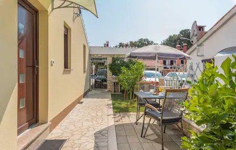 Apartman smješten u prizemlju u dvorištu obiteljske kuće, ima vlastiti ulaz i terasu sa garniturom, te privatni parking. Zona ima mnoštvo pješačkih staza kojima se može doći do popularnih plaža i centra grada za 10-15min hoda.