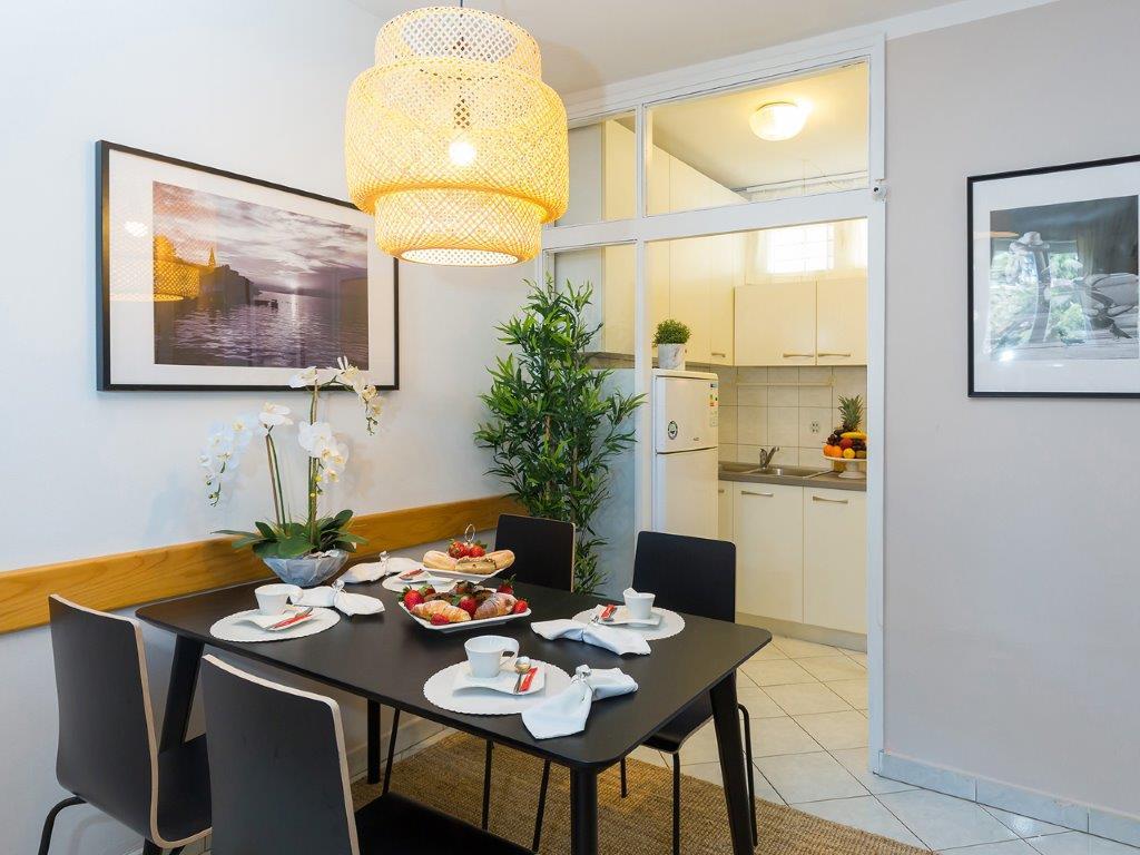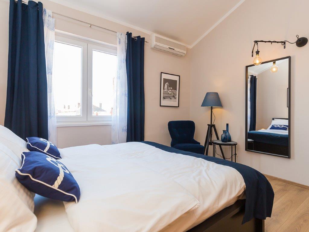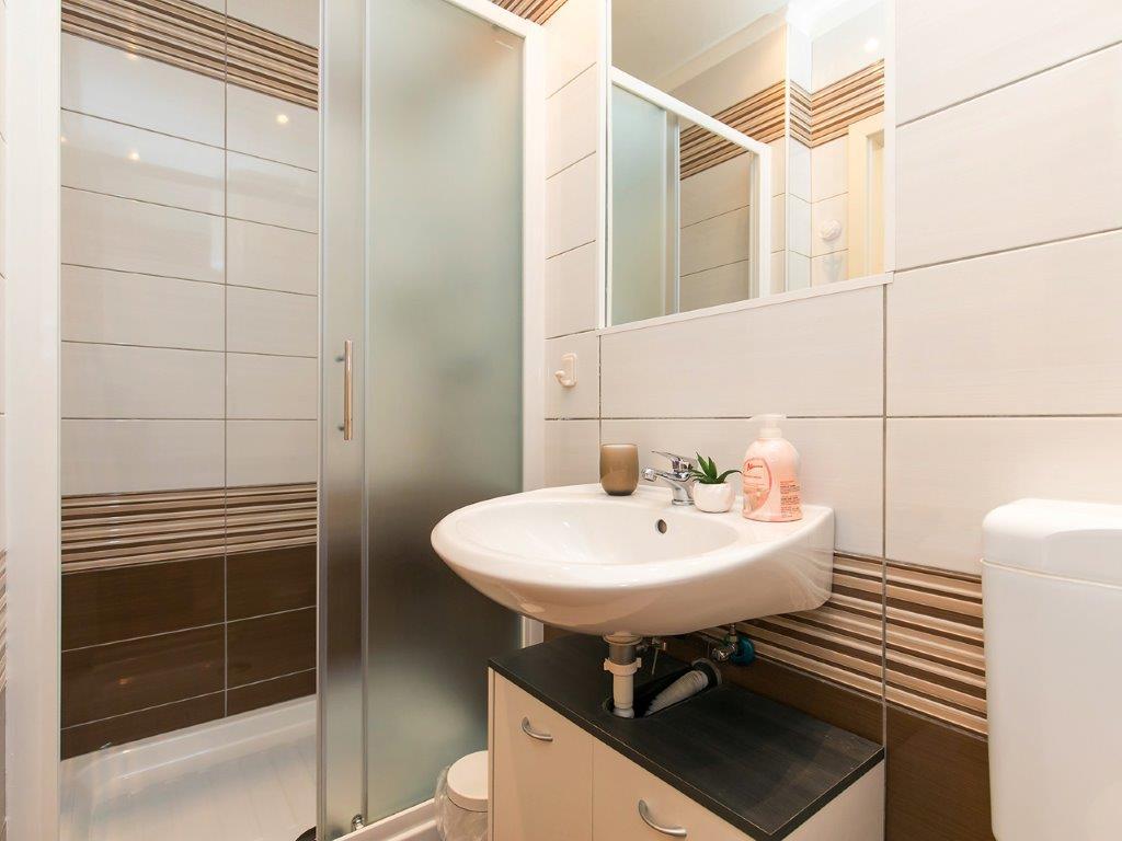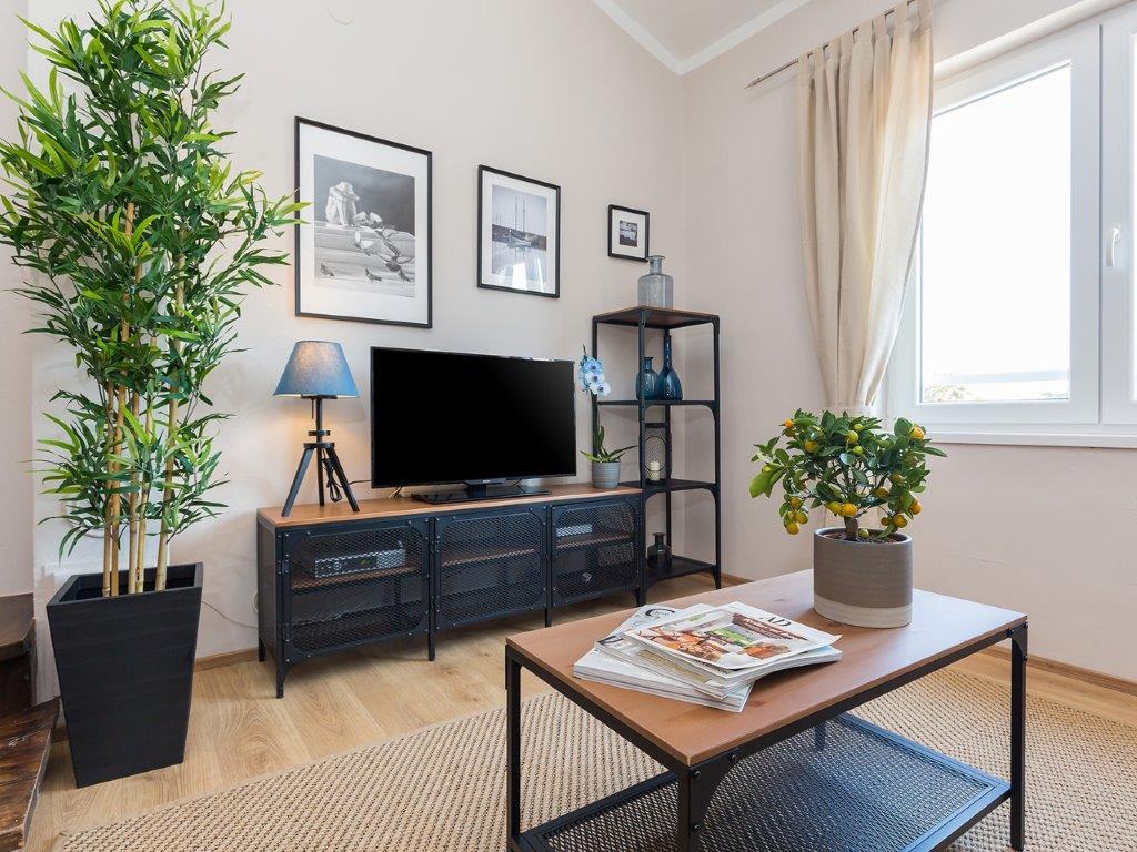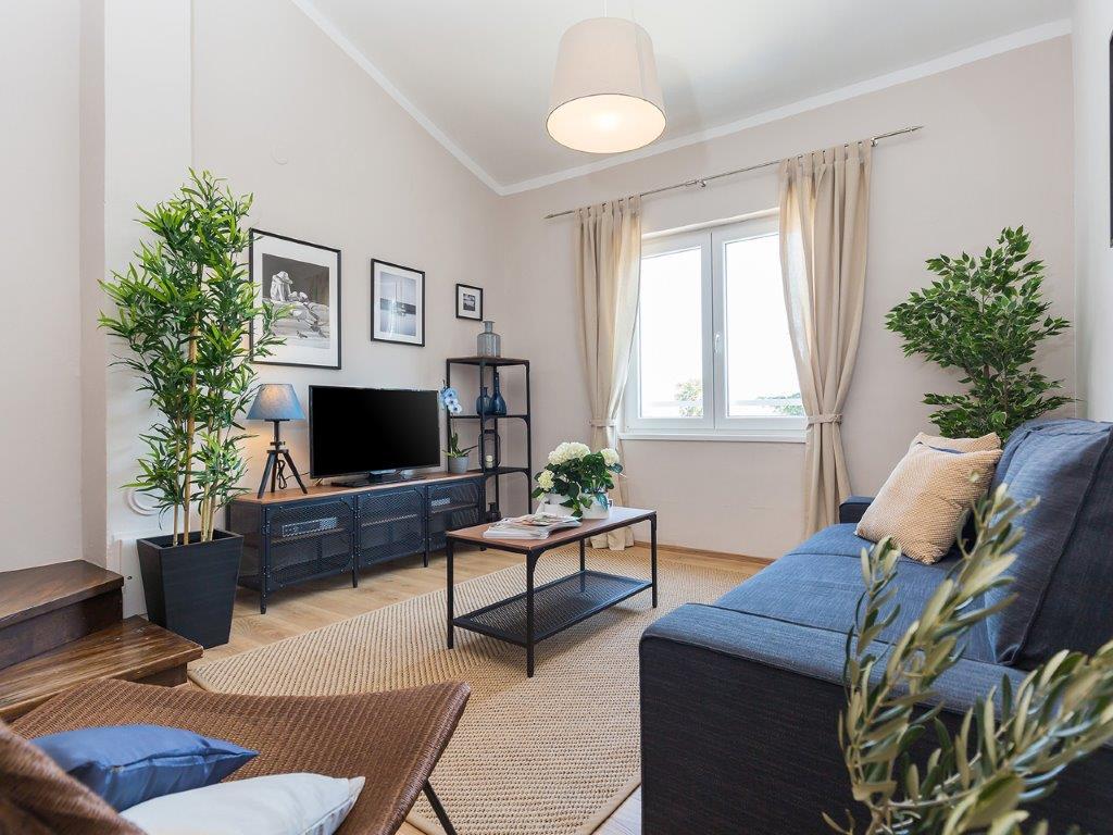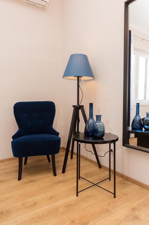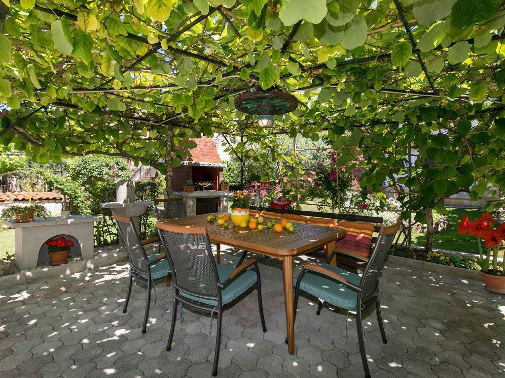 Nalazimo se u mirnoj zoni u neposrednoj blizini grada. Apartman ima 3 spavaće sobe s duplim krevetima, kuhinje, blagovaone, hodnika, te 3 kupatila s tuš kabinom, wc-om i bideom. U apartmanu postoji sve sto je potrebno kako bi Vas odmor bio pravi odmor. Sva je posteljina na raspolaganju kao i kompletan pribor za jelo i pice, frižider, aparat za kavu, električni štednjak, mikrovalna pećnica, TV sa satelitskim prijemom i osim toga imate besplatni pristup internetom neograničenim korištenjem. Ispred apartmana se nalazi velika terasa sa stolom i stolice, te ležaljke. Iza apartmana je pravi raj, u velikoj hladovini imate veliki stol i možete koristiti grill, dok djeca mogu opušteno igrati na zelenoj travi. Ispred kuće je privatni besplatni parking. U blizini, na 50 m od apartmana imate veliki supermarket, restorani, ambulante a do samog centra imate 400 m, isto tako i do prve plaze. Naravno nije Vam potreban automobil, jer laganom šetnjom stižete za 7-8 minuta.