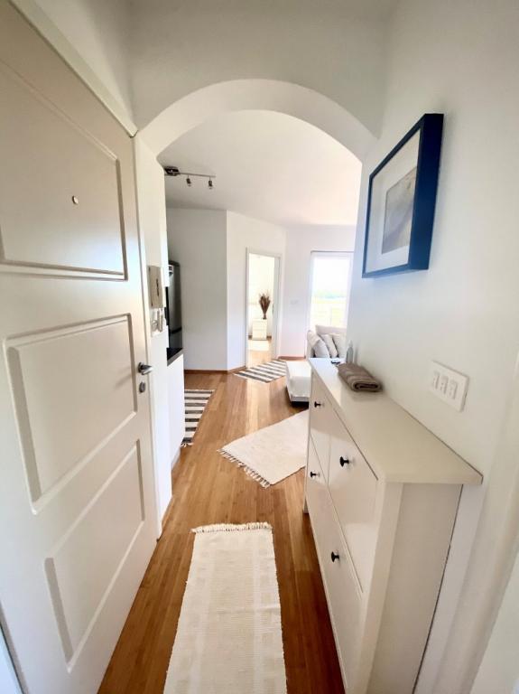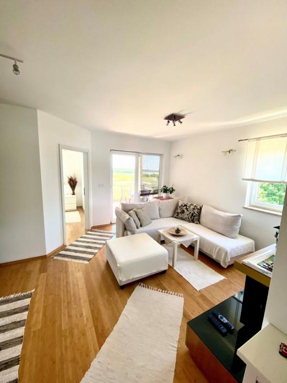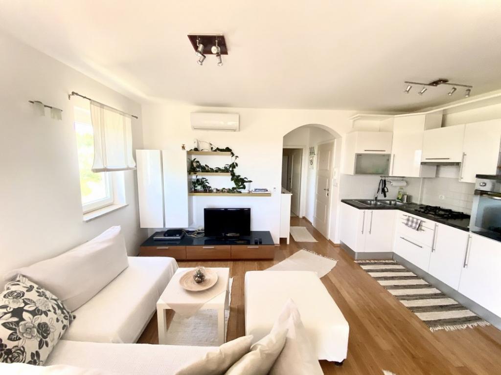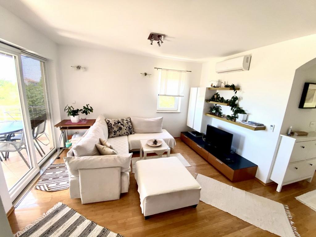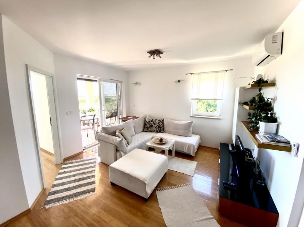 Moderan apartman u novogradnji, potpuno uređen, u mirnom dijelu grada Poreča, sa pogledom na prekrasan pejzaž i more. Nedaleko od centra grada te glavnih plaža i uvala te gradskog kupališta. Apartman se sastoji od dvije zasebne spavaće sobe sa samostalnim dnevnim boravkom, terasom i kupatilom. Apartman je u potpunosti opremljen te raspolaže vlastitim privatnim parkingom. Pogled sa terase Apartmana prostire se na obližnje vinograde i more.