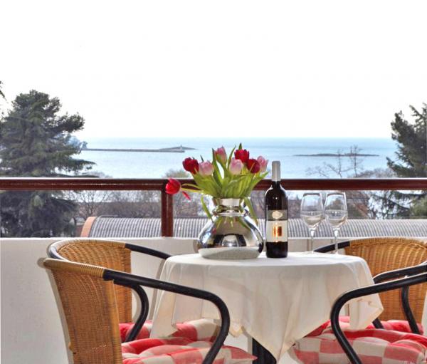 Apartman je smješten tik do mora, na svega nekoliko minuta hoda do plaže. Sa terase pruža se prekrasan pogled na starogradsku jezgru Poreča i otočić stopljen u plavetnilo Jadranskog mora. Apartman pruža potpuni komfort za savršeni odmor. 74 m² Apartman namjenjen onima koji žele uživati u samoj blizini mora (200m) te 8 minuta pješačenja do centra grada. Osobe koje vole zdrav život i baviti se sportom moći će iskoristiti 15km dugu pješačku zonu uz more na kojoj mogu voziti bicikl, trčati, ili jednostavno prošetati se s predivnim pogledom na prirodu, more i otoke. Najbolji restorani, barovi i noćni klubovi nalaze se svega par minuta hoda, tako da će vaš auto jednom parkiran kod nas tamo i ostati do samog odlaska.