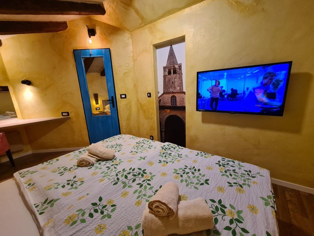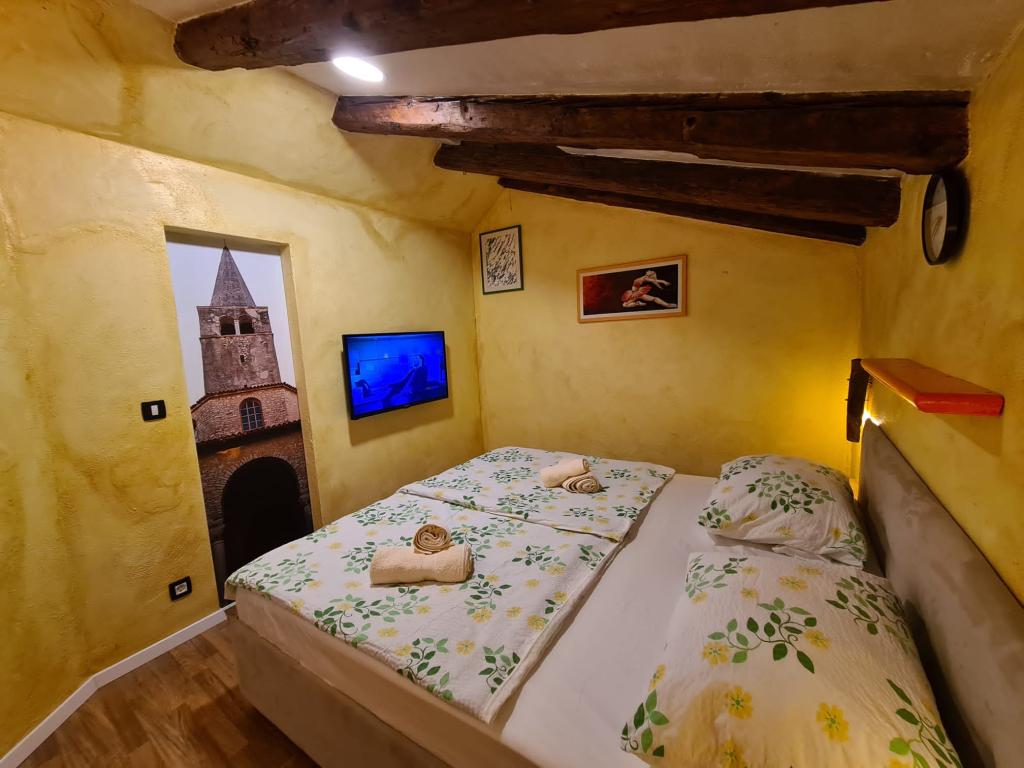 Apartman Sky A/2+1 nalazi se u starogradskoj jezgri u blizini eufrazijeve Bazilike na 3 katu . Idealan apartman za onog koji voli biti u centru i osjetiti kako grad diše . Apartman je opremljen sa svim odgovarajućim sa spavaćom sobom, kuhinja, kupatilo sa tus kabinom, Tv sat, wifi internet, klima , relax zona free gradski parking koji se nalazi na cca 500 m