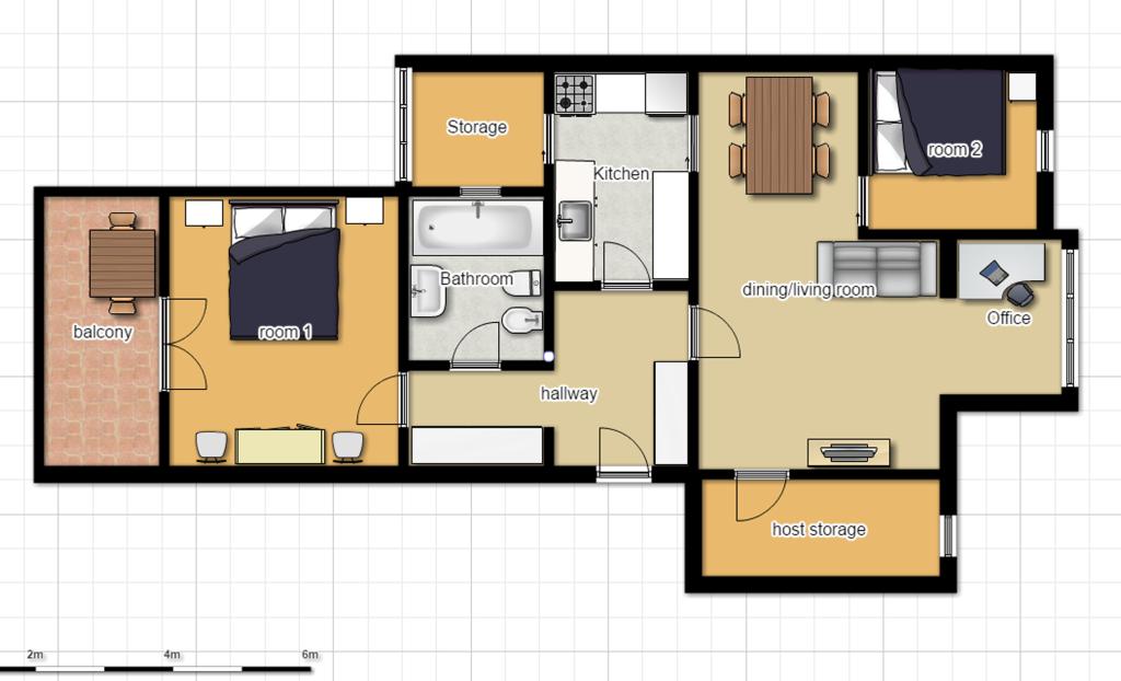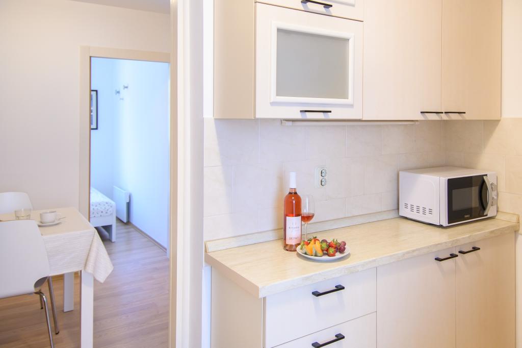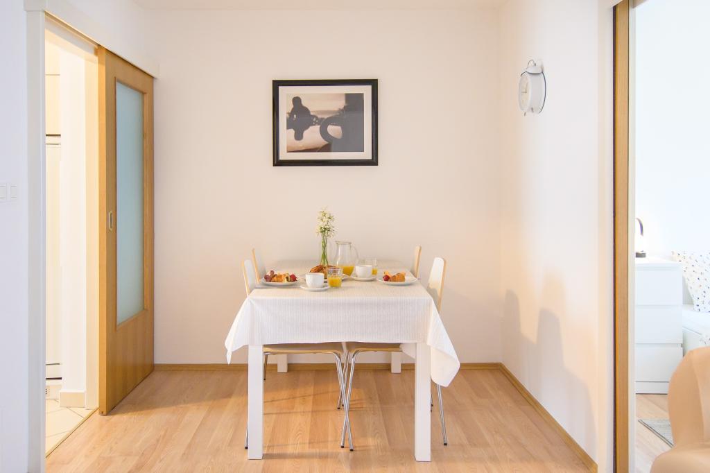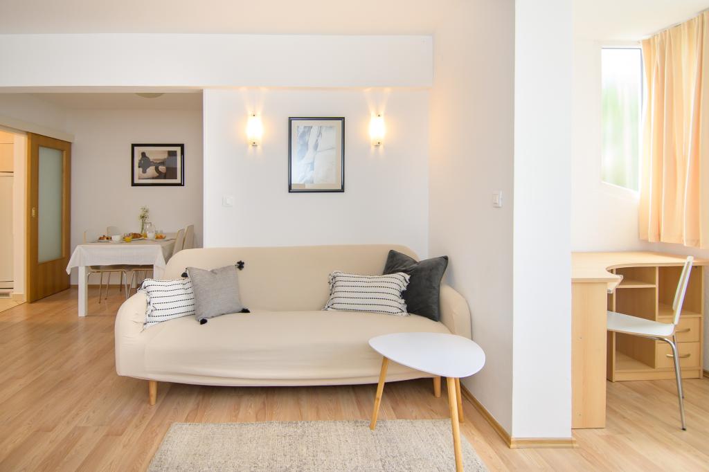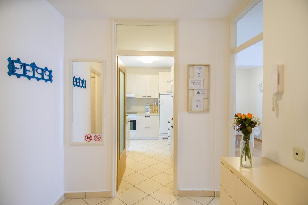 Solar Istra apartment is situated in the residential area of Poreč, just 5 minutes walk from all main attractions and the beach. With 65 square meter can accommodate up to 4 persons in comfortable two double bedrooms. Bright, spacious and well equipped is a perfect choice for a nice holiday in Poreč. This spacious 65 square meter apartment is located on the second floor of a residential building in center of Poreč; just 200 meters from the city center and 150 meters from the blue flag beach. It consists of well equipped kitchen, bathroom with bathtub, dining room, living room with flat TV and Air condition, master bedroom with double bed (160×200 cm), and another room with optional single or double bed (160×200 cm). There is also an office area with free wi-fi, closed balcony and open balcony with lounge area. There’s also heating in the apartment, so it is suitable for rent in colder months. The main advantage is that all the main Poreč’s attractions like the city center.