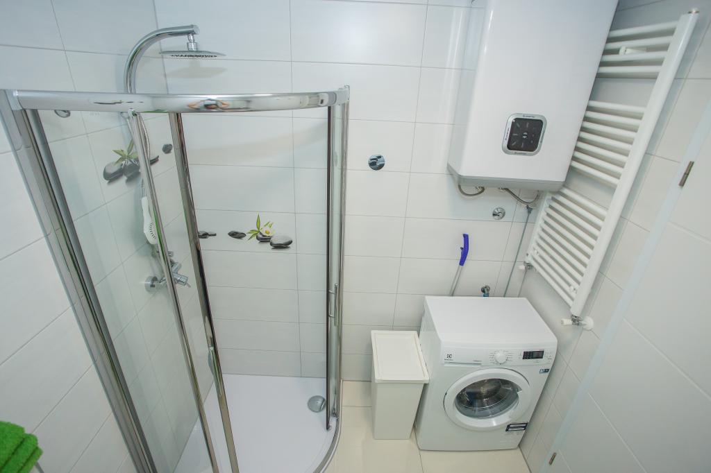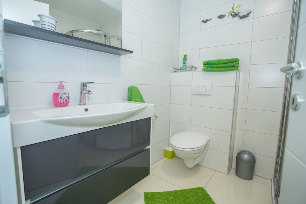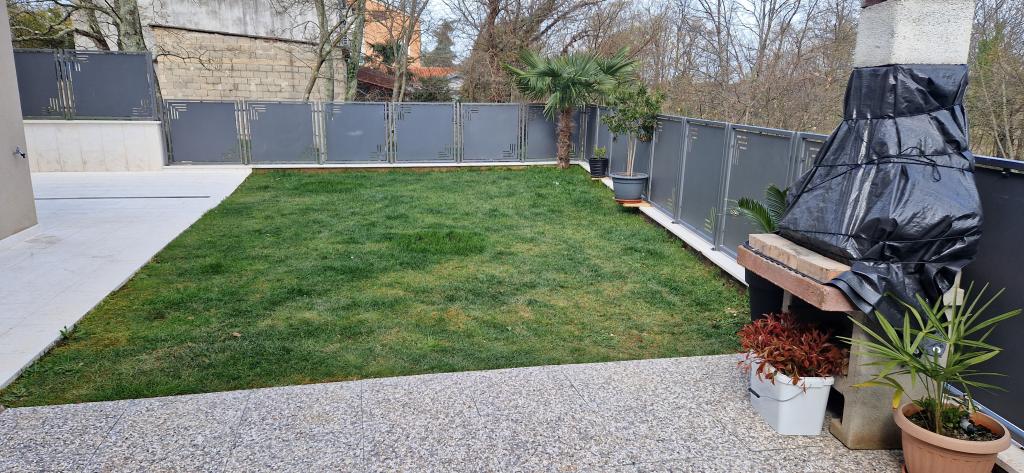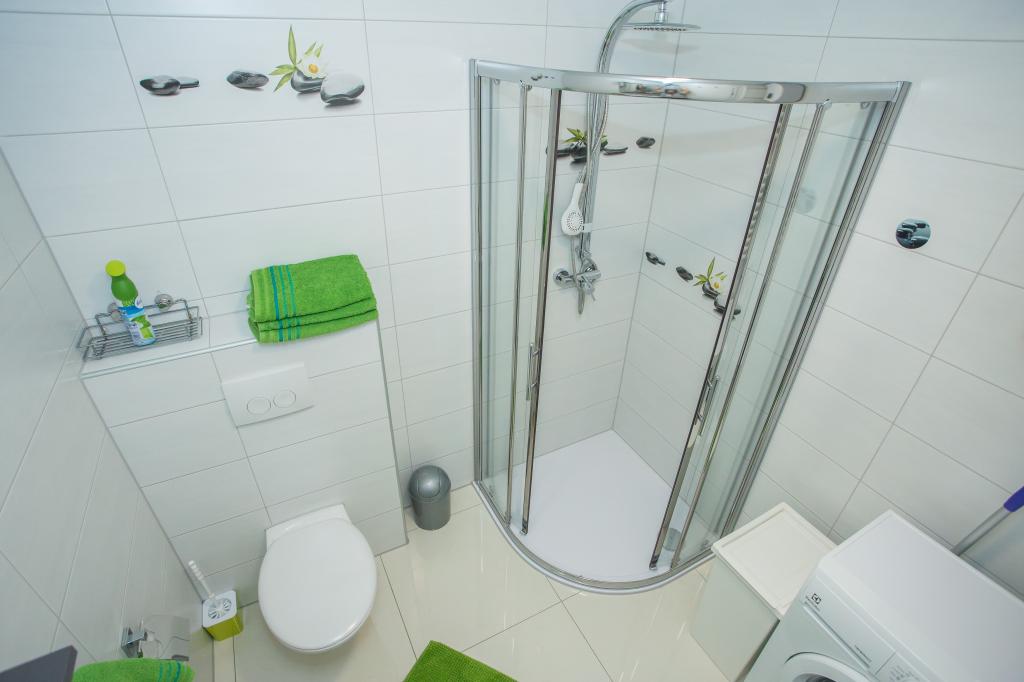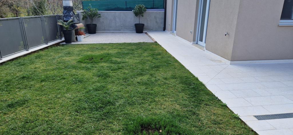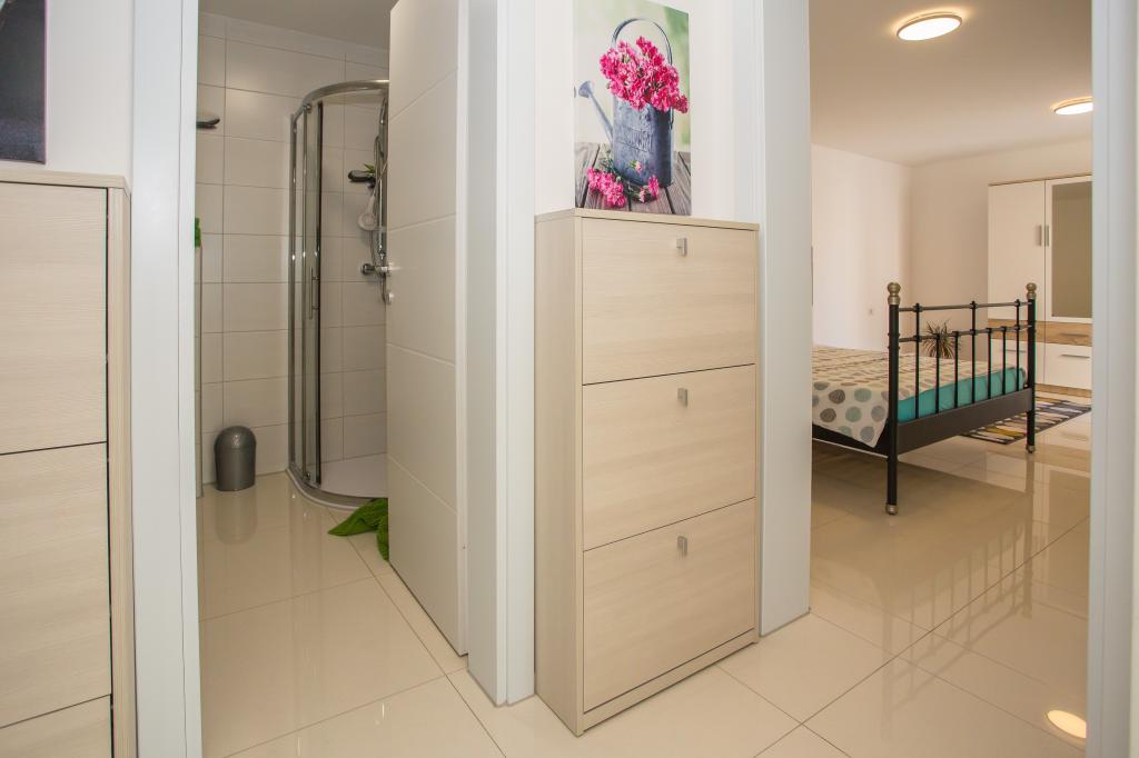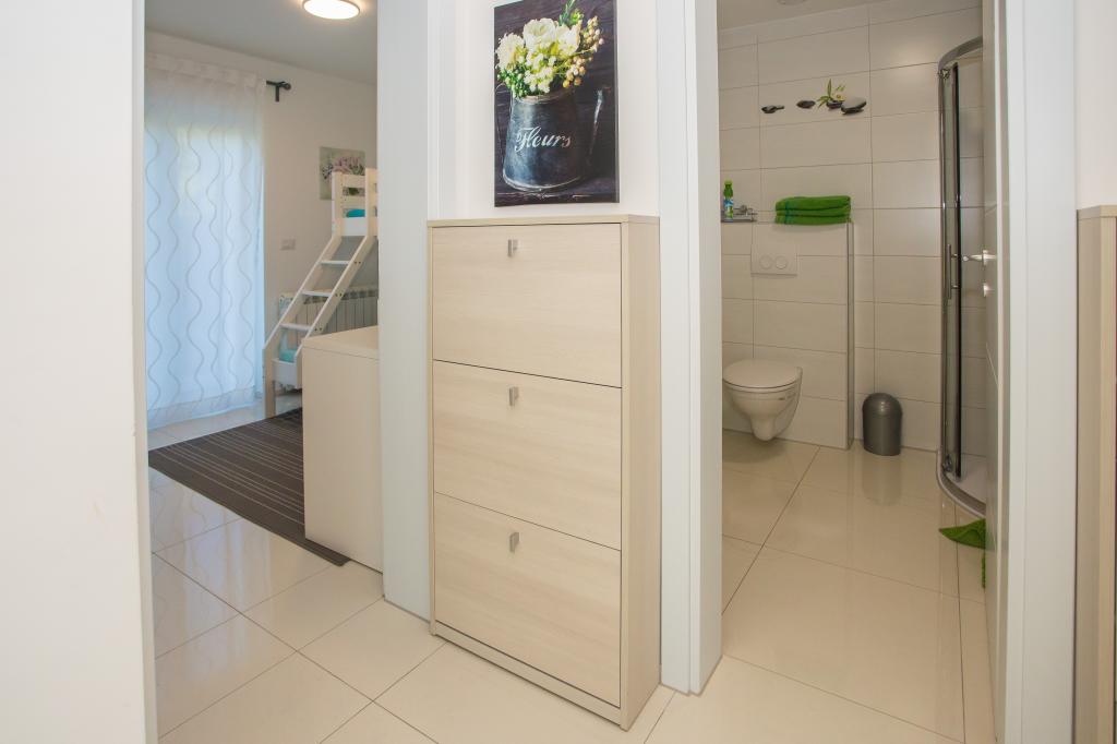 Apartman(75 m2) ima dvije spavaće sobe. Jedna je sa velikim krevetom(160X200) a druga je sa krevetom na kat, donji krevet je 140X200 a gornji 90X200. Kupaonica je sa tušem i perilicom za veš. Dnevni boravak je sa klimom i Sat -Tv. Kuhinja je opremljena sa: hladnjak sa frizerom, perilica suđa, mikrovalna, pečnica, kuhalo, toster, aparat za kavu, i druge kuhinjske potrepštine. Iz svih navedenih prostorija se izlazi u vrt koji je ograđen i pogodan za obitelj sa djecom. Posteljina i ručnici se mjenjaju jednom tjedno( i na upit).