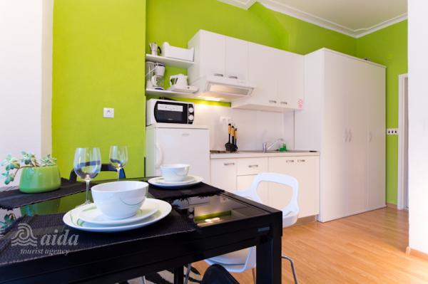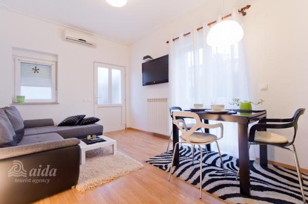 Apartman Aida ima sve što vam je potrebno za ugodan i opuštajući ili aktivni odmor. Apartman je potpuno opremljen i nude obiteljski ugođaj. ( Sat / TV, klima uređaj, aparat za kavu, itd ). Mjesto je pogodno i daje vam priliku da ostavite svoj automobil na parkirno mjesto predviđeno za vas i uživati u odmoru bez prometnih gužvi. Prva plaža udaljena je oko 150 metara i idealna je za obitelji s djecom jer ima lijepu zelenu površinu sa sjenama iz drveća. U okolici ćete naći razne sportske aktivnosti i kulturne znamenitosti koje mogu obogatiti vaš boravak u Poreču. Mi ćemo se potruditi da vam pomoći da otkrijete sve čari Poreča i Istre.