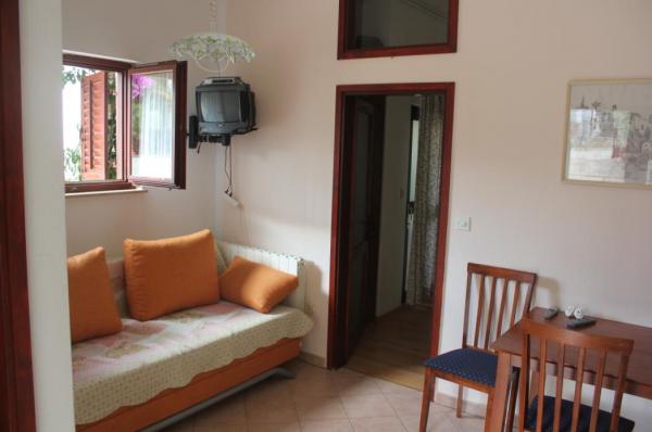 Apartmani na lijepoj poziciji u mirnom rezidencijalnom predgrađu Poreča. Oba apartmana imaju terase dok se s jednog pruža predivan pogled na more. Uz komforne sobe, kupatila s ručnicima i potuno opremljene kuhinje, na raspolaganju je i satelitska televizija te besplatan internet. U ograđenom dvorištu za goste je osiguran parking dok se u velikom vrtu nalazi grill kao i stol i stolice na raspolaganju gostima za druženje u mirnom okruženju. Plaža je udaljena tek minutu vožnje autom (besplatan parking) ili 20 minuta pješice od kuće dok se do centra Poreča može doći autom ili turističkim vlakićem uz 20 min šetnje.