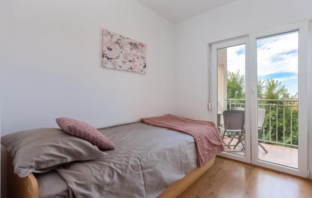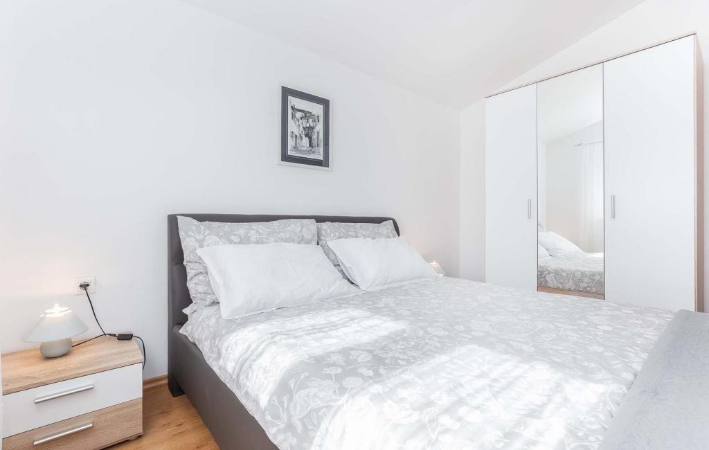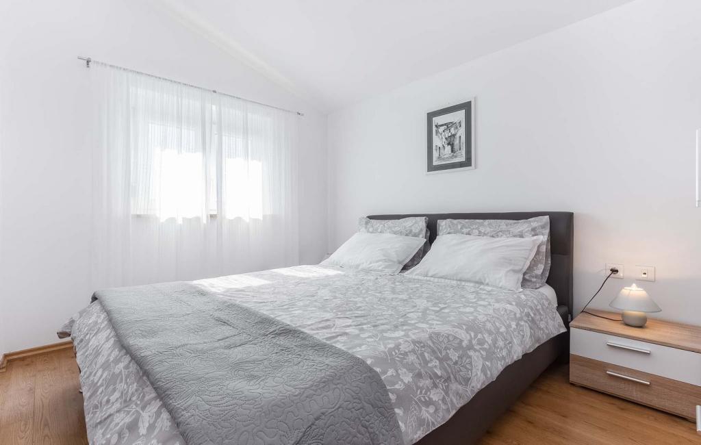 Apartmanska kuća Branka nalazi se u stambenoj zgradi u urbanom djelu grada, udaljenoj svega 400 m od prve uređene plaže. Unutar zgrade nalaze se dva apartmana kapaciteta 3-4 osobe. Parking za goste apartmana je na cesti ispred zgrade. Veći apartman A3+1 ima jednu spavaću sobu sa bračnim krevetom, te jednu spavaću sobu s pojedinačnim ležajem. U dnevnom boravku nalazi se i kauč kao pomoćni ležaj za četvrtu osobu. Kuhinja je kompletno opremljena s pripadajućom blagovaonicom. Iz sobe se izlazi na balkon sa lijepim pogledom. Drugi i nešto manji apartman A2+1 namijenjen je smještaju do tri osobe. Sastoji se od jedne spavaće sobe s duplim krevetom dok se u dnevnom boravku s kuhinjom nalazi dodati ležaj u vidu kauča namijenjenog trećoj osobi.