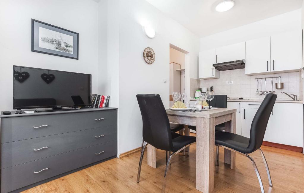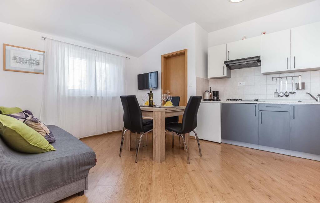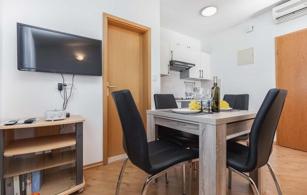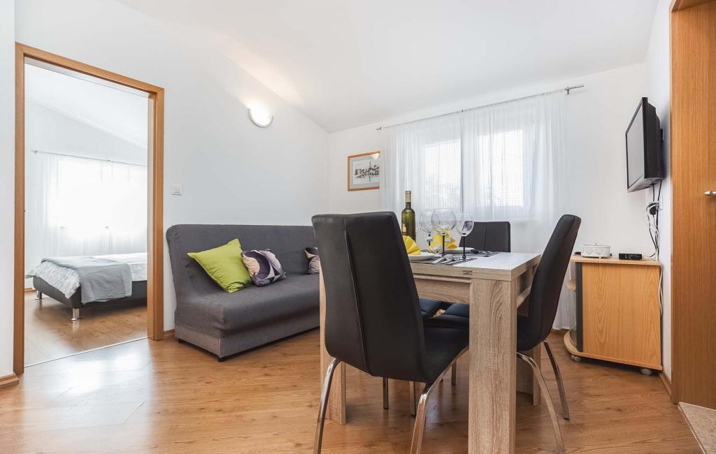 Turistička pristojba je uključena u cijenu.Dodatni uvjeti: Prijava: 3€ jednokratno po osobi Kućni ljubimci: 8€ po ljubimcu/po noći Završno čišćenje: Gost je dužan prije odlaska počistiti apartman neovisno o završnom čišćenju. Plaćanje u kunama prema kunskom cjeniku na recepciji.