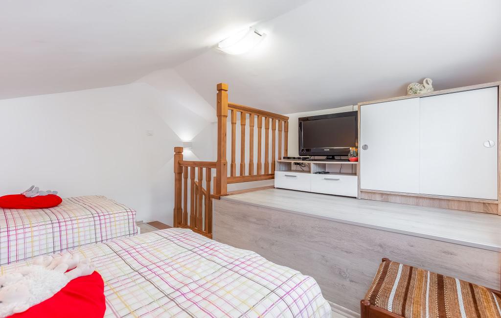 Kuća Ivana nalazi se u mirnom urbanom djelu Poreča te je udaljena od najbliže plaže svega 700 metara. U sklopu kuće na prvom katu nalazi se jedan klimatizirani apartman namijenjen smještaju do 4 osobe. Kuća obiluje zelenilom, ispred koje je osiguran prostor za parking automobila gostiju apartmana. Apartman se sastoji je od dvije spavaće sobe koje su klimatizirane te sadrže svaka po bračni krevet. Svka soba ima izlaz na poveći balkon sa garniturom za sjedenje, sa kojeg se pruža pogled na mirnu ulicu i okolno zelenilo. Također tu je i potpuno opremljena kuhinja sa stolom za objedovanje, kao i uređena kupaonica.