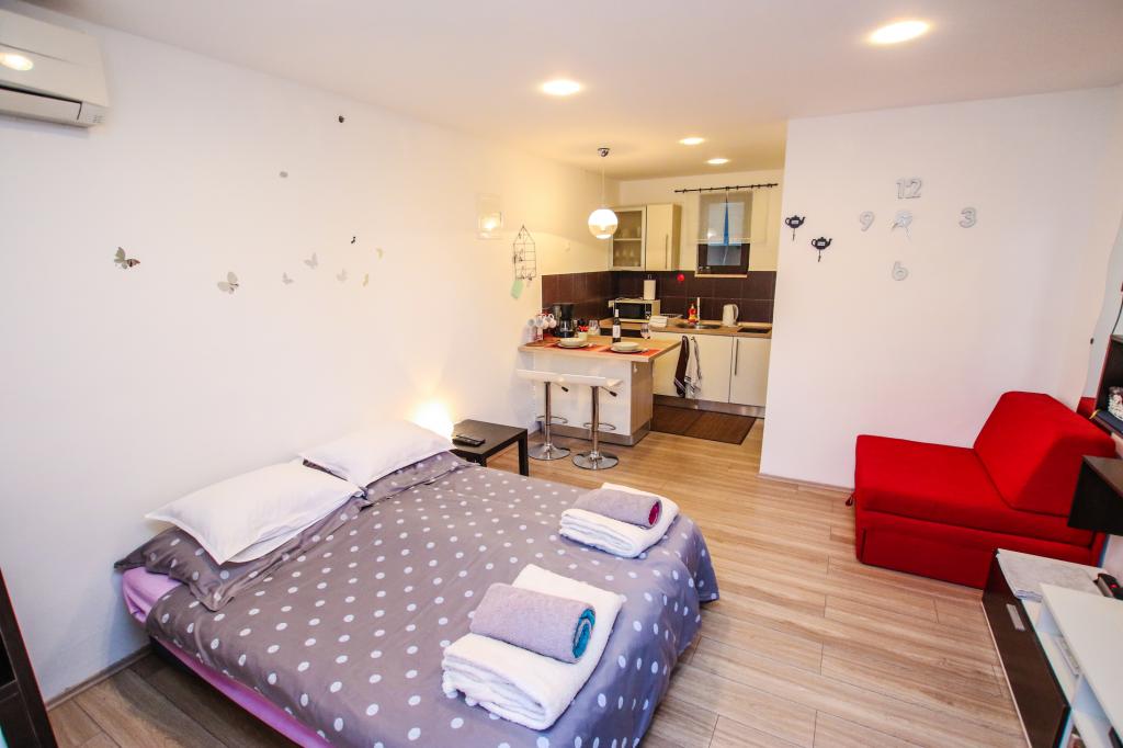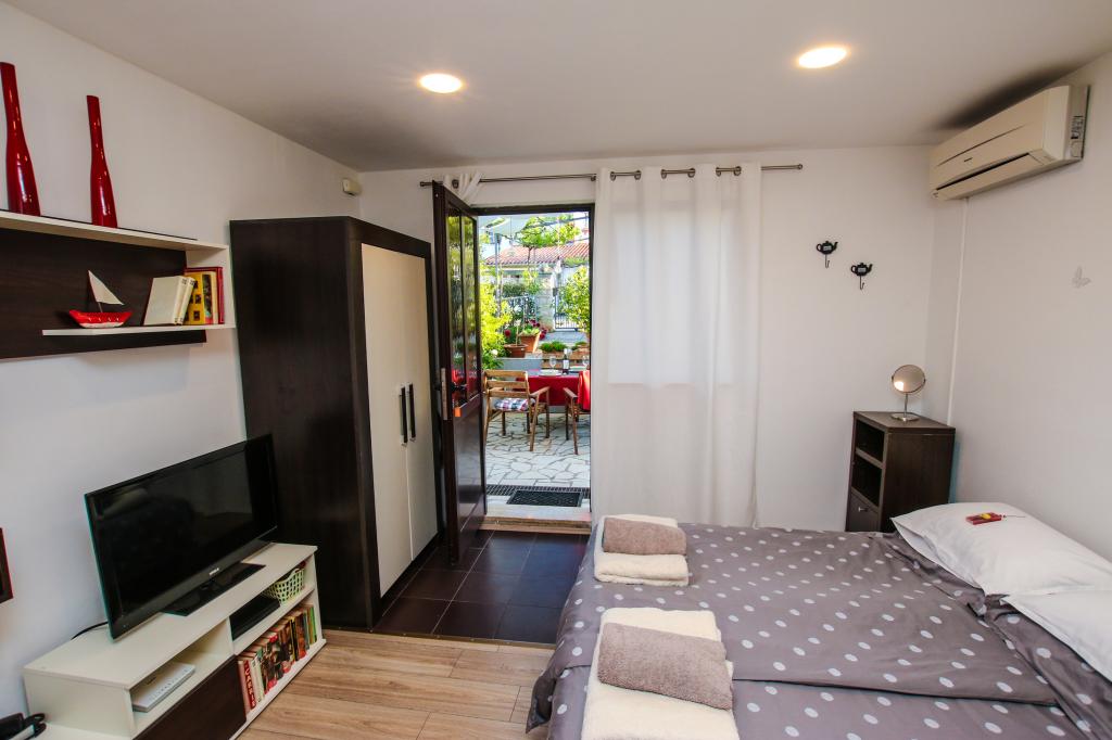 Lijepo uređeni apartman i soba u mirnom dijelu Poreča. Kuća se nalazi oko 10 minuta hoda do centra i plaže. Apartman sa jednom spavaćom sobom, dnevnim boravkom u kojem je kauč na razvlačenje, standardno opremljena kuhinja, kupaonica i prekrasna mala terasica s pogledom na vrt. Soba sa bračnim krevetom u kojoj se nalazi privatna kupaonica, dostupan je i frižider. U apartmanu i sobu dostupan je WiFi internet, Sat Tv i klima, besplatno. Ispred kuće nalazi se privatni natkriveni parking za 2 vozila (1 za apartman i 1 za sobu).