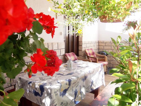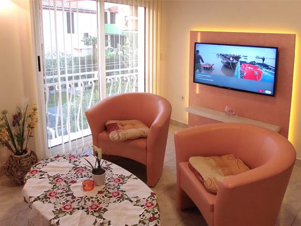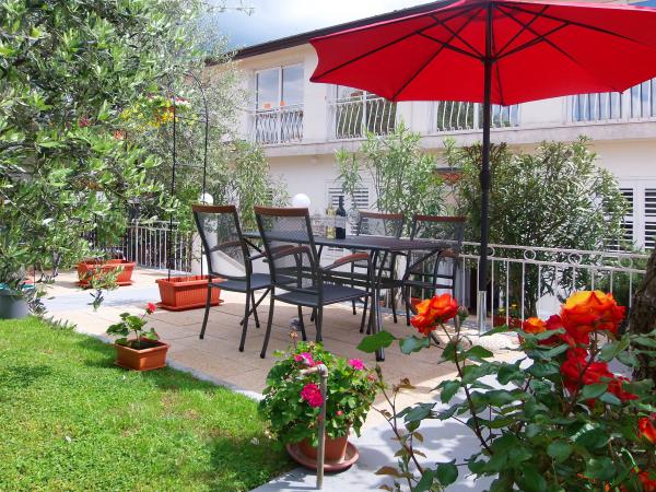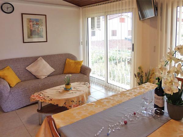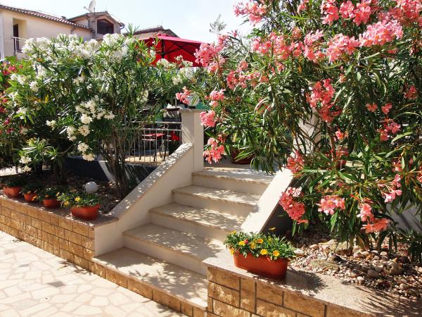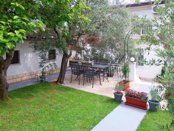 Apartmani u središnjem dijelu Poreča, pogodan za 2 do 6 osoba, s mogućnošću pomoćnih ležajeva na zahtjev, za obitelj ili parove s 1 ili 2 dvokrevetne sobe, kupaonicom, kuhinjom s dnevnim boravkom / dnevnim boravkom, SAT TV, klima uređaj uz korištenje na zahtjev, WLAN internet priključak besplatno, terasa u vrtu s roštiljem, privatni parking ispred kuće.