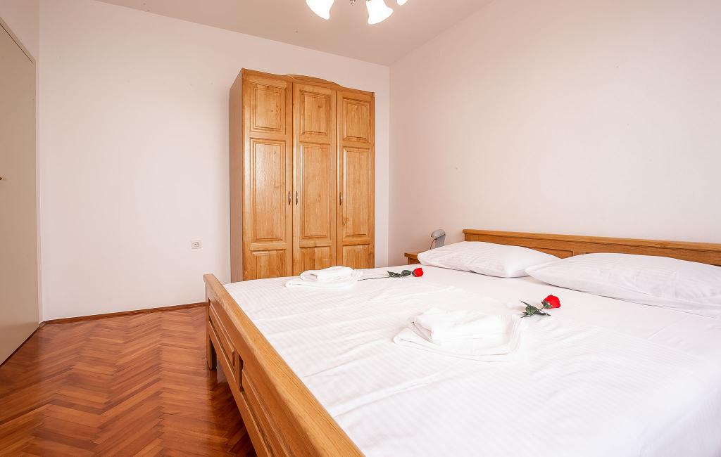 Kuća Mima je udaljena od starogradske jezgre i nabliže plaže sa zabavnim i rekreativnim sadržajem samo 500 m. U neposrednoj blizini kuće nalazi se trgovački centar sa supermarketom, frizerom, kozmetičkim salonom, caffe barovima, fast food-ovima. . Ispred kuće je osiguran parking za goste apartmana. Kuća ima na raspolaganju 5 apartmana kapaciteta 2-4 osobe. U dvorištu se nalazi grill sa sjedećom garniturom za zajedničku upotrebu.