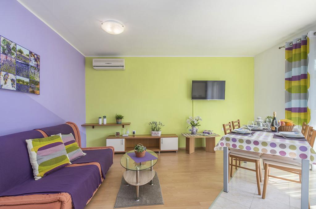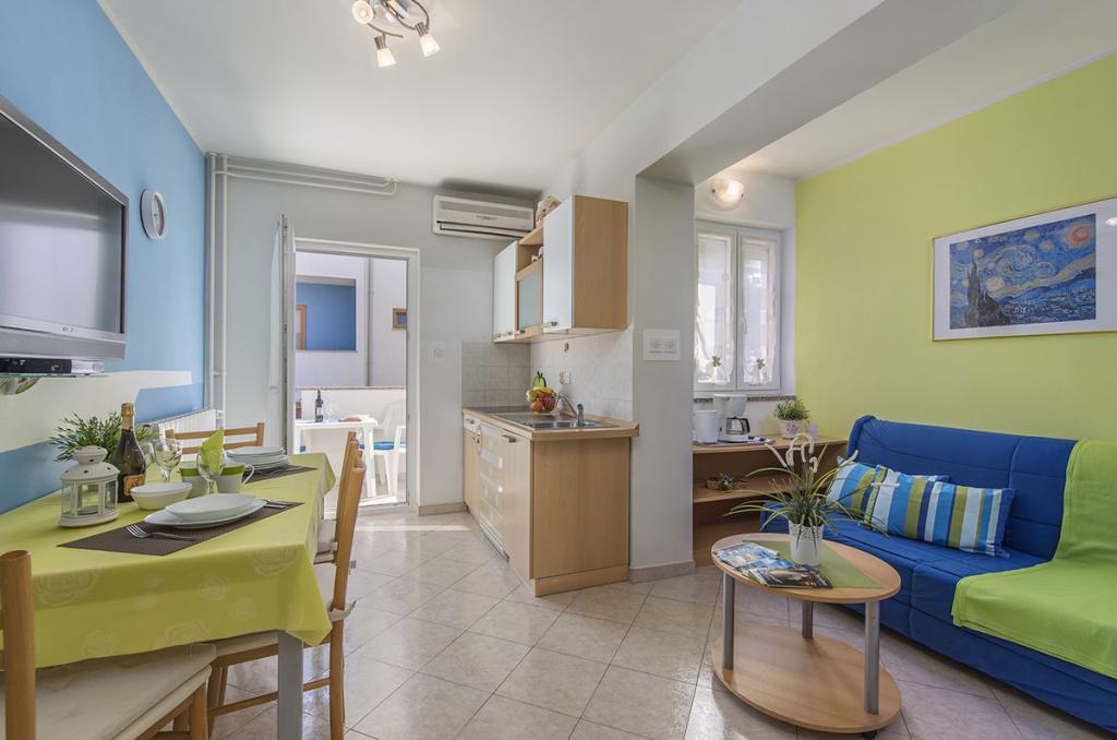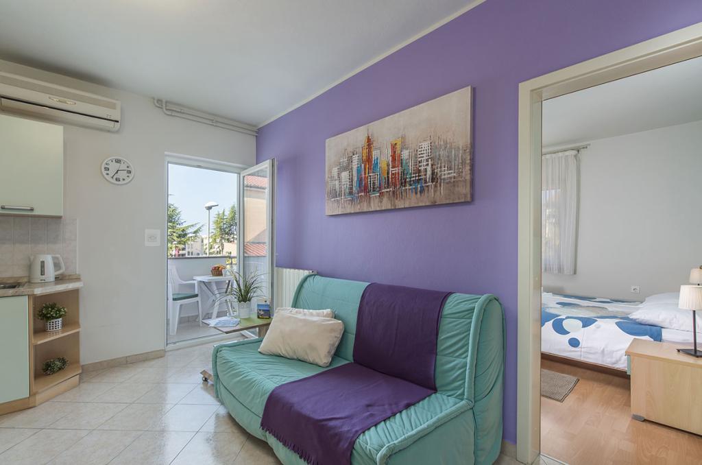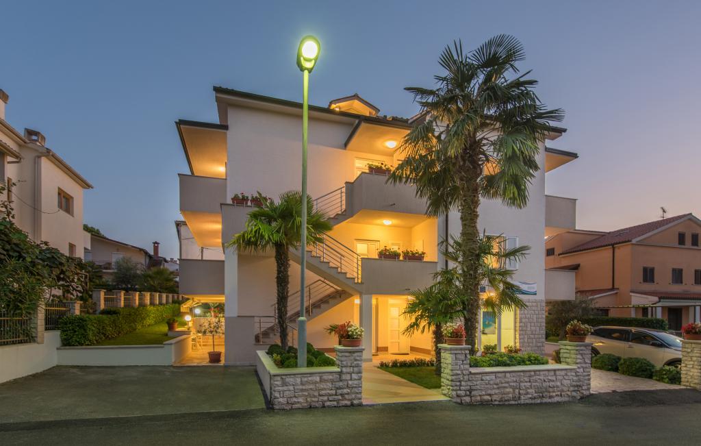 Apartmani se nalaze u mirnom predjelu Poreča, udaljeni 5 min hoda do plaže. U blizini od 50 m nalaze se trgovina, nekoliko pekara, 5-6 restorana, tenis tereni i drugi sportski sadržaji. Do starog centra grada udaljeni smo 15 min hoda , šetnicom uz more ili turističkim vlakićem koji vozi tokom cijelog dana.