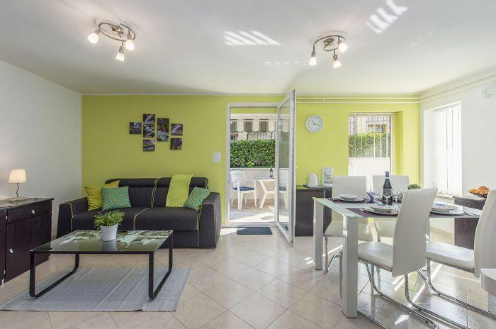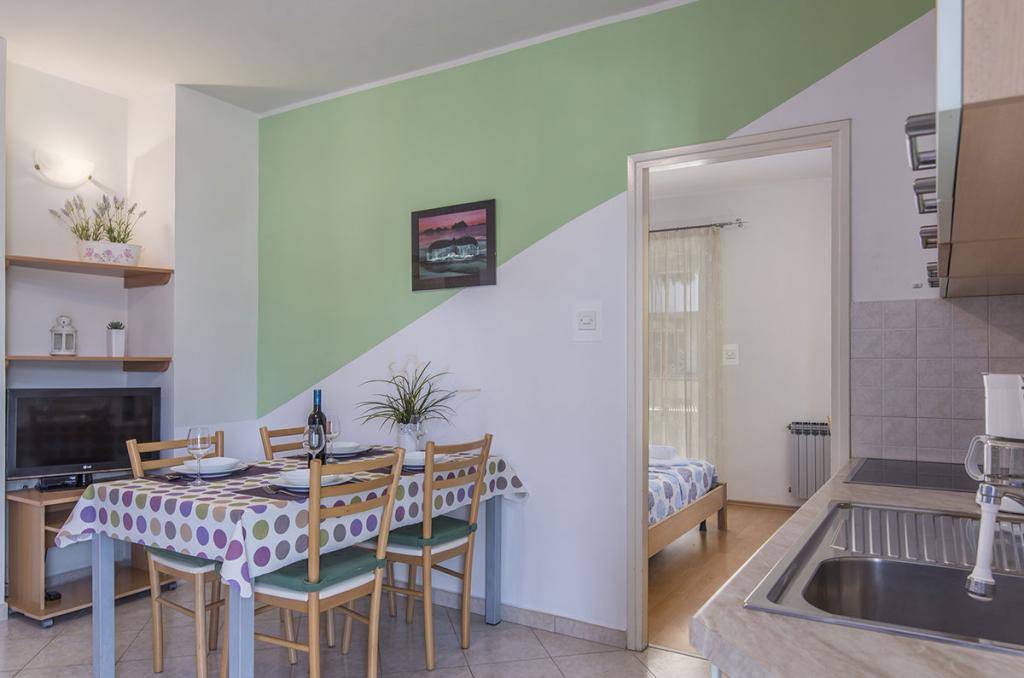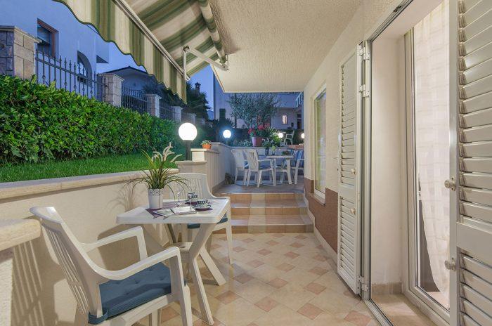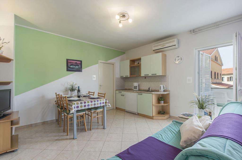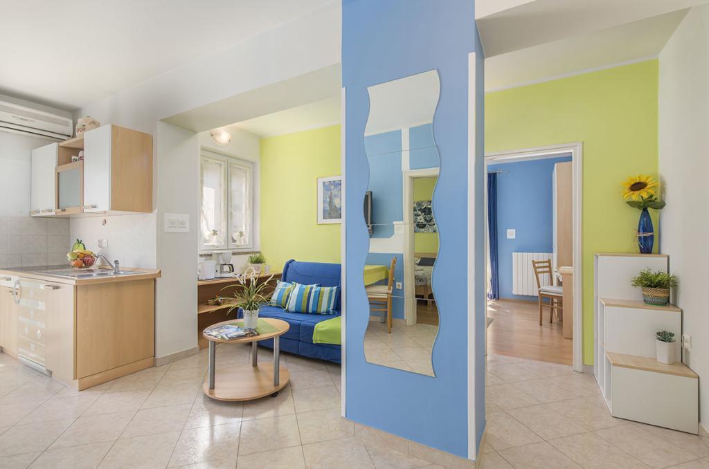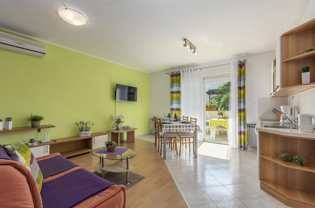 Apartmani se nalaze u mirnom predjelu Poreča, udaljeni 5 min hoda do plaže. U blizini od 50 m nalaze se trgovina, nekoliko pekara, 5-6 restorana, tenis tereni i drugi sportski sadržaji. Do starog centra grada udaljeni smo 15 min hoda , šetnicom uz more ili turističkim vlakićem koji vozi tokom cijelog dana.