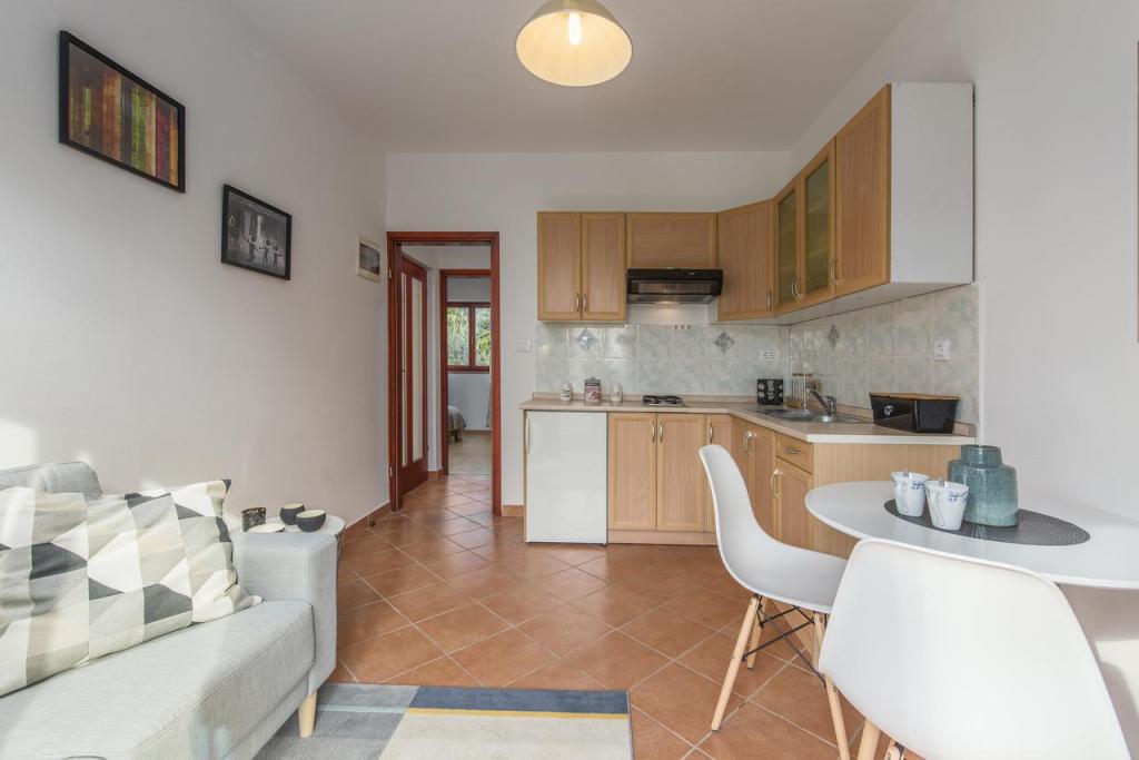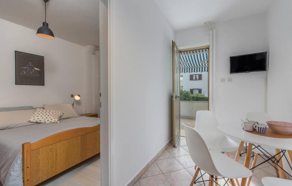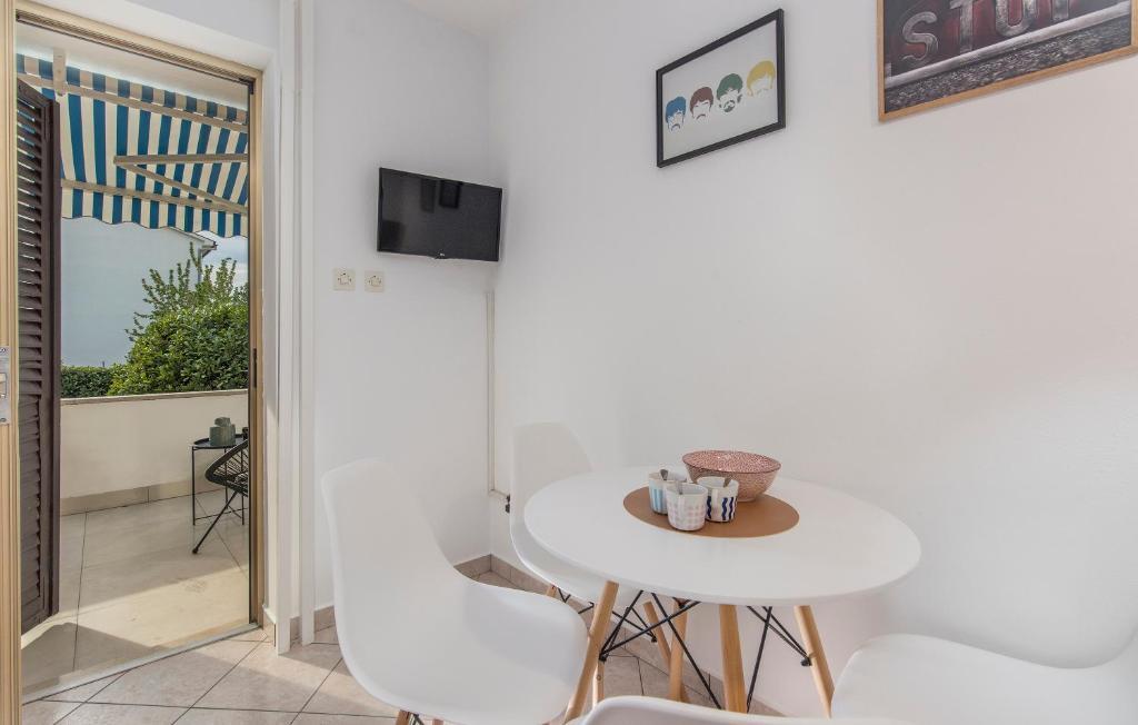 Private House and is located in an ideal zone for families with children, and for all those who want to be close to the beach and near the City center with all the summer events. It consists of twoo apartments. Apartment Morgan one room apartment is situated on the first floor. It consists of a kitchen with dining room, a living room, one bedroom with double bed and a bathroom with a shower. Ideal for a couple with a private terase. Apartment Bowie ideal for family, it consists of a kitchen with dining room, twoo bedrooms with double bed and a renovated bathroom with a shower. In front of the house is a terrace where you can relax after a day on the beach. The price includes parking in front of the house, Wi-fi, and use of electricity and water. Renovated bathroom in 2020.