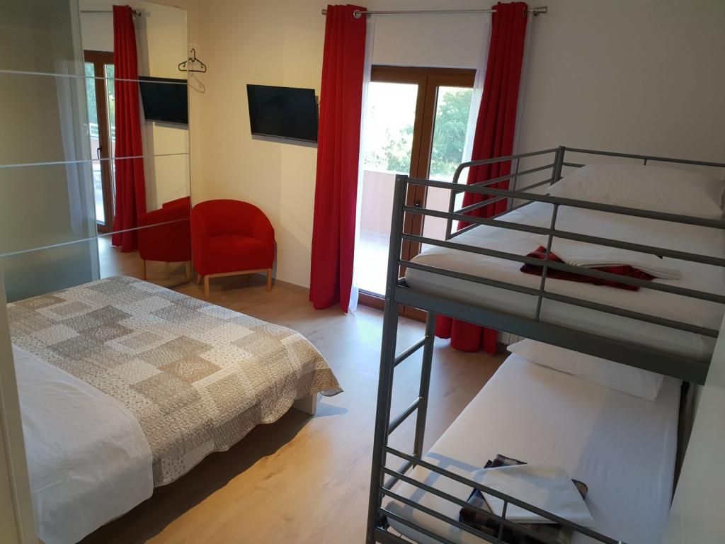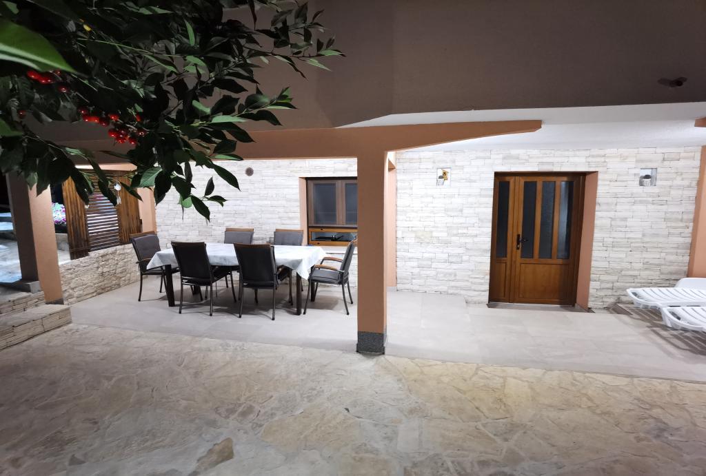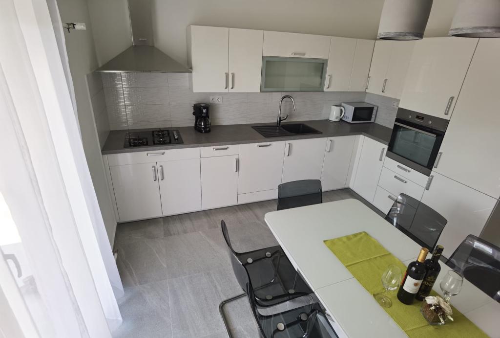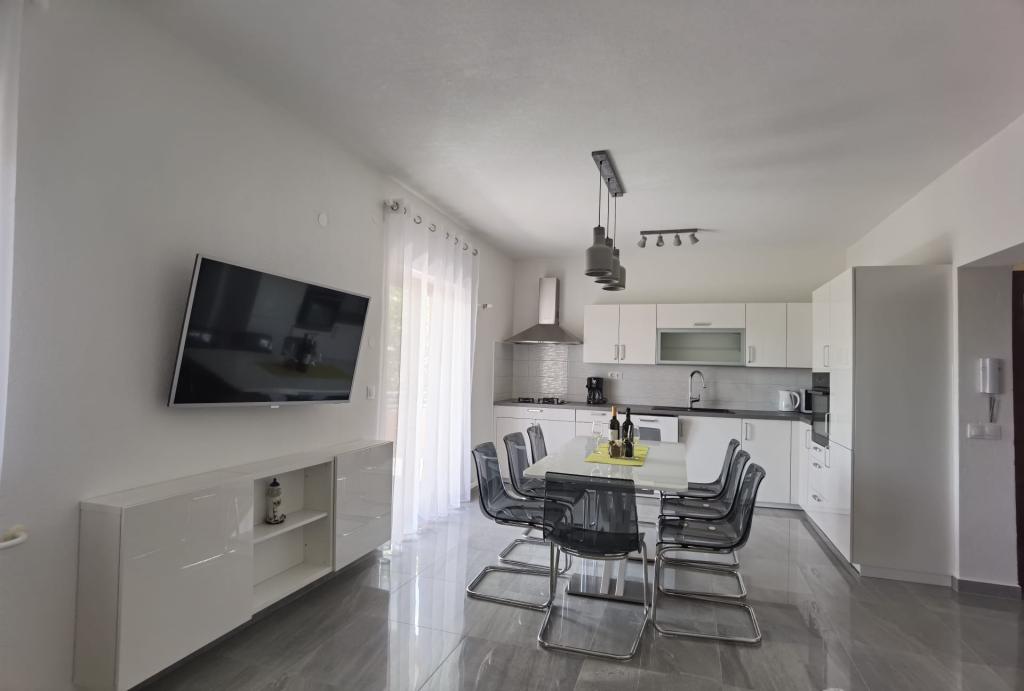 Apartman 6+2 je vrlo lijep, prostran, moderno uređen, sa velikom terasom i pogledom na more, te klimom i TV-om u svakoj sobi. Opremljenost apartmana je prikladna i za malu djecu, jer su imali i prijenosni krevetić i stolicu za hranjenje. Bilo je dosta hladnih pića dobrodošlice u hladnjaku po dolasku. Apartman je bio vrlo čist i uredan po dolasku. Vlasnici su bili vrlo ljubazni i uslužni. Ako nam je još nešto trebalo, donosili su nam i dodatno. Blizu je mora i plaže - prečicom - ali dio staze nije pogodan za vožnju dječjim kolicima, što nam je bila jedina mana. Preporuka za velike obitelji ili grupe prijatelja.
