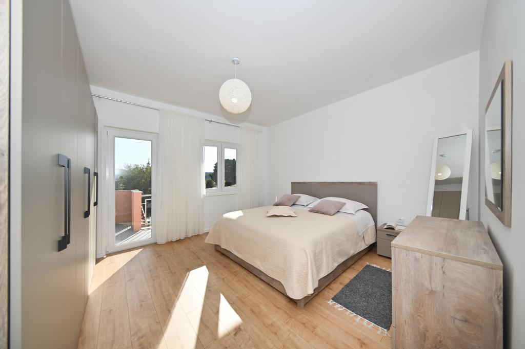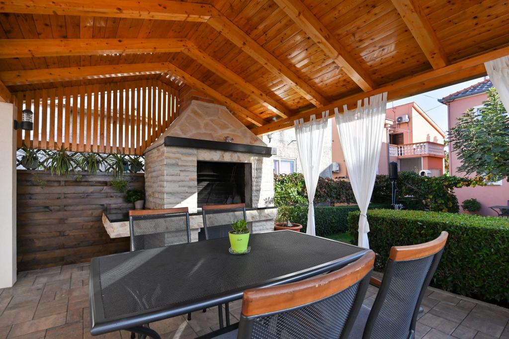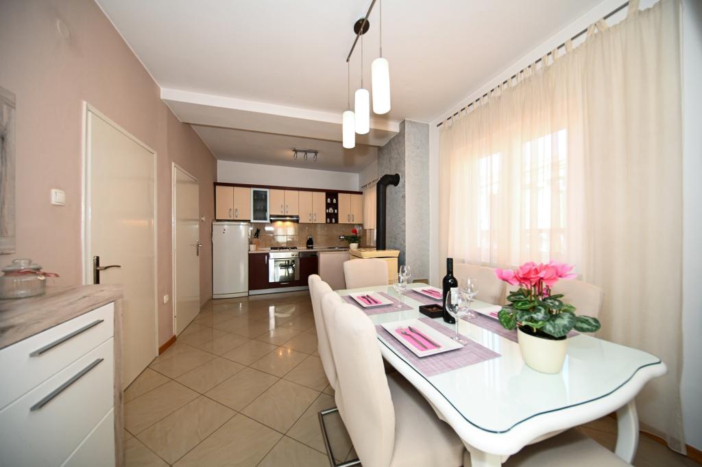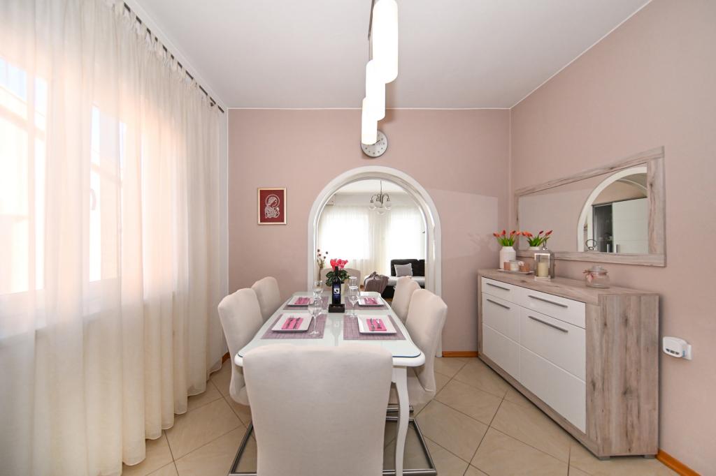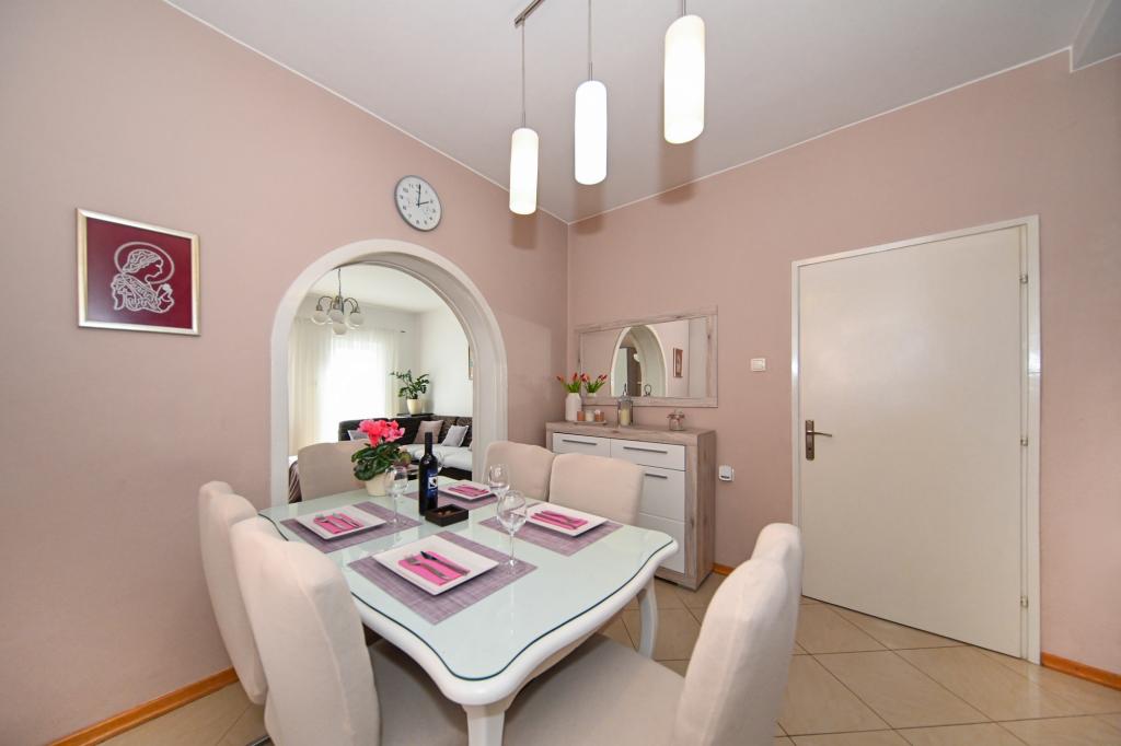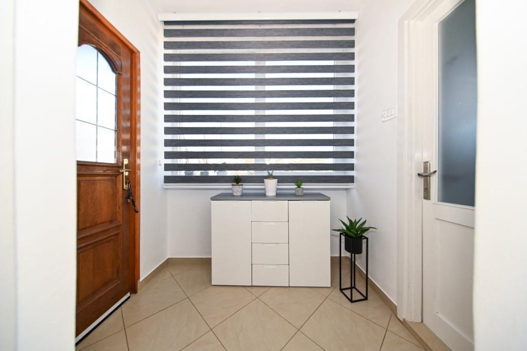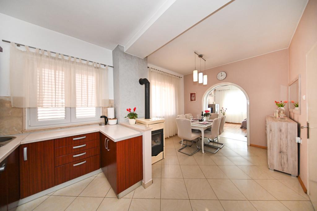 Ova potpuno renovirana kuća nalazi se u centru Posedarja, 20 minuta od grada Zadra u Hratskoj. Nalazi se samo 50 metara od mora. Apartman je na prvom katu kuće iima 120m2. Ima poseban ulaz iz zasebnog dvorišta. Apartman ima 3 spavaće sobe, kuhinju, blagovaonicu, dnevni boravak, predsoblje, wc i veliku terasu s pogledom na more. Tu je i veliki, lijepi vrt s roštiljem i garniturom za opuštanje. - Spavaća soba s balkonom i krevetom 200x190 - Spavaća soba sa krevetom 200x160 - Spavaća soba sa krevetom 200x100 - Kuhinja (pećnica, hladnjak, perilica suđa, kuhalo za vodu, toster, aparat za kavu, mikrovalna) - Dnevni boravak ima TV ravnog ekrana s njemačkim programima, veliki kauč i izlaz na balkon s pogledom na more. - Kupaonica i WC sa perilicom rublja - Veliki balkon s pogledom na more i garniturom za sjedenje - Prekrasan vrt s roštiljem i garniturom za sjedenje Klima u cijelom stanu, besplatan internet i parking u dvorištu kuće. Posedarje je malo turističko mjesto udaljeno samo 20 minuta vožnje od grada Zadra. Posedarje je svoj idiličan položaj pronašlo u podnožju Velebita (Nacionalni park Paklenica i Novigradsko more). Čisto, kristalno plavo more, duge rajske uvale i plaže pozivaju na opuštanje i opuštanje. Ovo mjesto nudi sve što vam je potrebno za ugodan svakodnevni život. Blizina nacionalnih parkova Paklenica, Kornati, Slapovi Krke i Zrmanje te gradova Zadra, Nina i Šibenika.