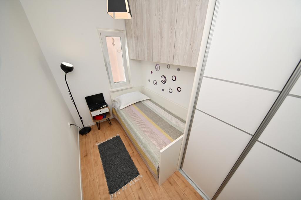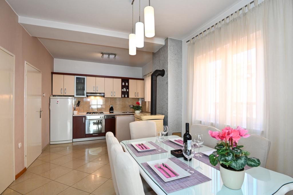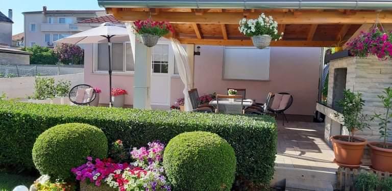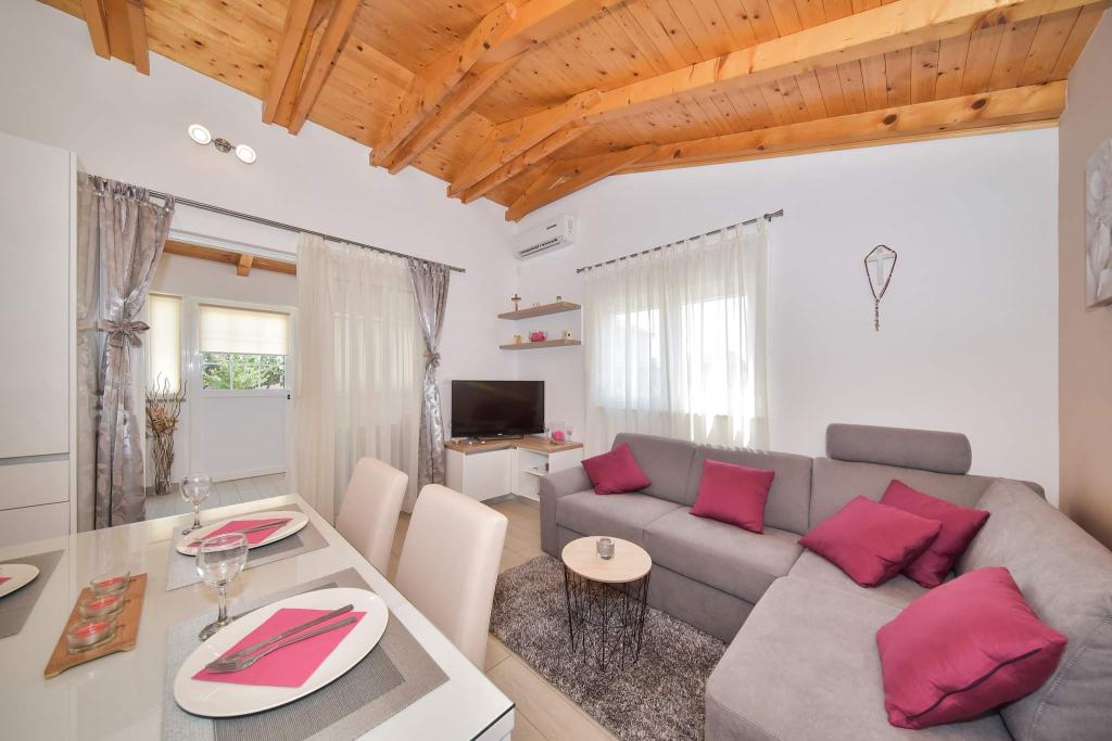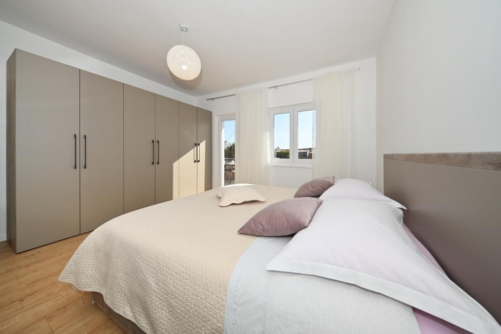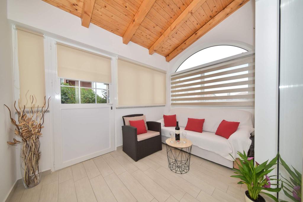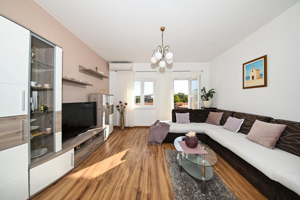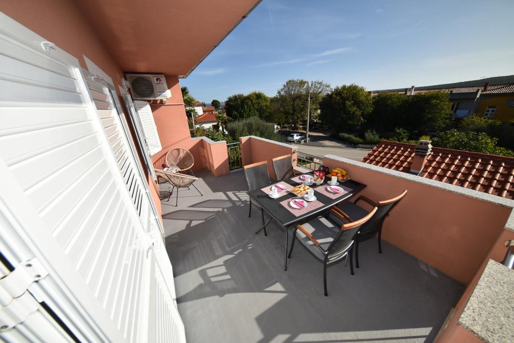 Ova potpuno renovirana kuća nalazi se u centru Posedarja, 20 minuta od grada Zadra u Hratskoj. Nalazi se samo 50 metara od mora. Apartman je na prvom katu kuće iima 120m2. Ima poseban ulaz iz zasebnog dvorišta. Apartman ima 3 spavaće sobe, kuhinju, blagovaonicu, dnevni boravak, predsoblje, wc i veliku terasu s pogledom na more. Tu je i veliki, lijepi vrt s roštiljem i garniturom za opuštanje. - Spavaća soba s balkonom i krevetom 200x190 - Spavaća soba sa krevetom 200x160 - Spavaća soba sa krevetom 200x100 - Kuhinja (pećnica, hladnjak, perilica suđa, kuhalo za vodu, toster, aparat za kavu, mikrovalna) - Dnevni boravak ima TV ravnog ekrana s njemačkim programima, veliki kauč i izlaz na balkon s pogledom na more. - Kupaonica i WC sa perilicom rublja - Veliki balkon s pogledom na more i garniturom za sjedenje - Prekrasan vrt s roštiljem i garniturom za sjedenje Klima u cijelom stanu, besplatan internet i parking u dvorištu kuće. Posedarje je malo turističko mjesto udaljeno samo 20 minuta vožnje od grada Zadra. Posedarje je svoj idiličan položaj pronašlo u podnožju Velebita (Nacionalni park Paklenica i Novigradsko more). Čisto, kristalno plavo more, duge rajske uvale i plaže pozivaju na opuštanje i opuštanje. Ovo mjesto nudi sve što vam je potrebno za ugodan svakodnevni život. Blizina nacionalnih parkova Paklenica, Kornati, Slapovi Krke i Zrmanje te gradova Zadra, Nina i Šibenika.