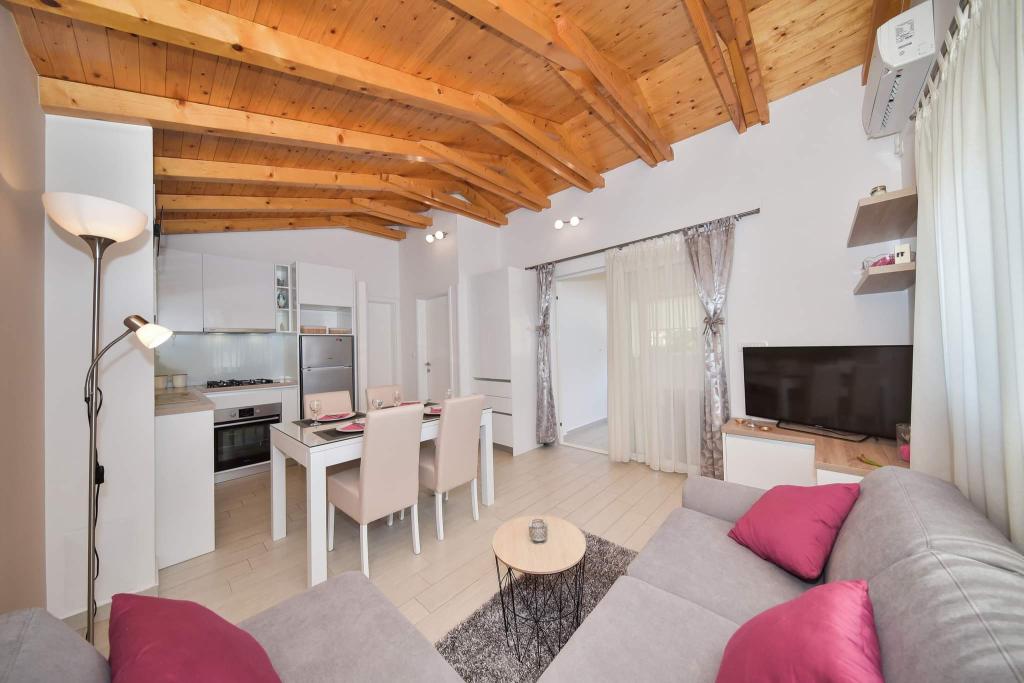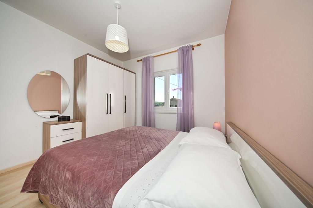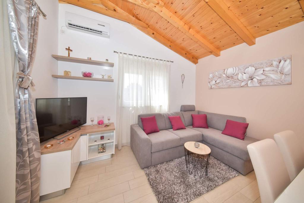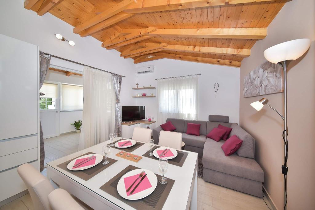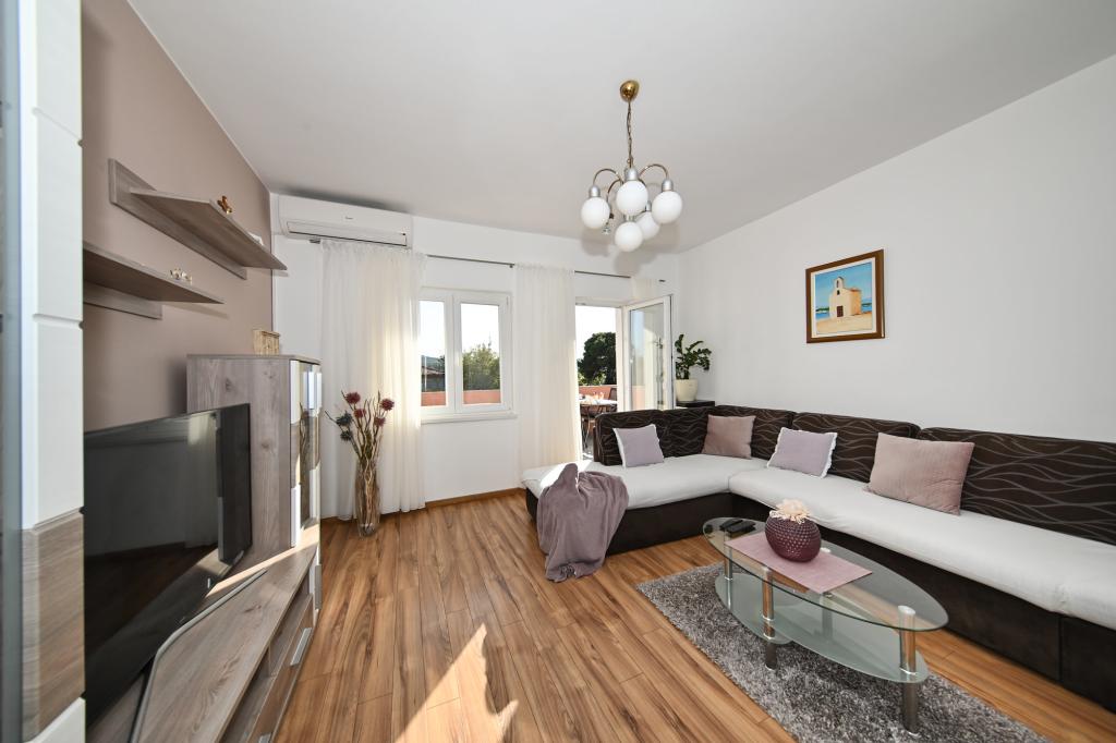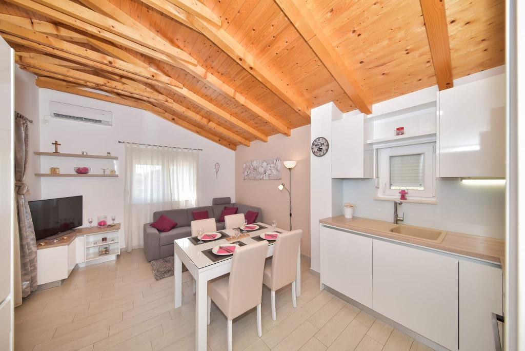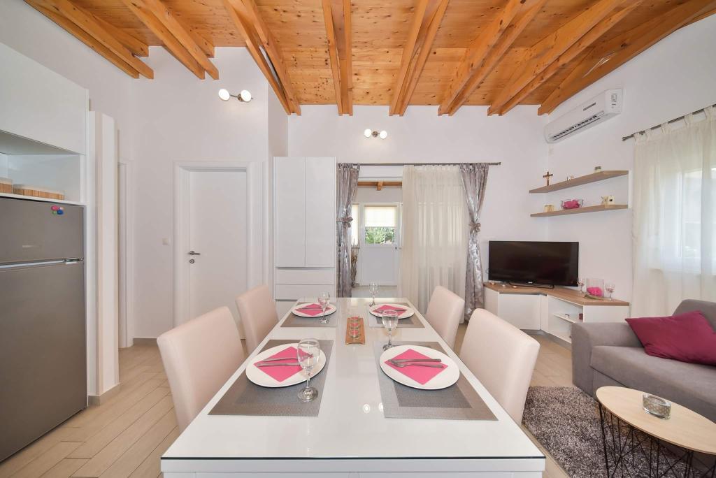 Ova potpuno renovirana kuća nalazi se u centru Posedarja, 20 minuta od grada Zadra u Hratskoj. Nalazi se samo 50 metara od mora. Apartman je na prvom katu kuće iima 120m2. Ima poseban ulaz iz zasebnog dvorišta. Apartman ima 3 spavaće sobe, kuhinju, blagovaonicu, dnevni boravak, predsoblje, wc i veliku terasu s pogledom na more. Tu je i veliki, lijepi vrt s roštiljem i garniturom za opuštanje. - Spavaća soba s balkonom i krevetom 200x190 - Spavaća soba sa krevetom 200x160 - Spavaća soba sa krevetom 200x100 - Kuhinja (pećnica, hladnjak, perilica suđa, kuhalo za vodu, toster, aparat za kavu, mikrovalna) - Dnevni boravak ima TV ravnog ekrana s njemačkim programima, veliki kauč i izlaz na balkon s pogledom na more. - Kupaonica i WC sa perilicom rublja - Veliki balkon s pogledom na more i garniturom za sjedenje - Prekrasan vrt s roštiljem i garniturom za sjedenje Klima u cijelom stanu, besplatan internet i parking u dvorištu kuće. Posedarje je malo turističko mjesto udaljeno samo 20 minuta vožnje od grada Zadra. Posedarje je svoj idiličan položaj pronašlo u podnožju Velebita (Nacionalni park Paklenica i Novigradsko more). Čisto, kristalno plavo more, duge rajske uvale i plaže pozivaju na opuštanje i opuštanje. Ovo mjesto nudi sve što vam je potrebno za ugodan svakodnevni život. Blizina nacionalnih parkova Paklenica, Kornati, Slapovi Krke i Zrmanje te gradova Zadra, Nina i Šibenika.