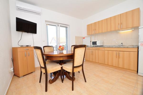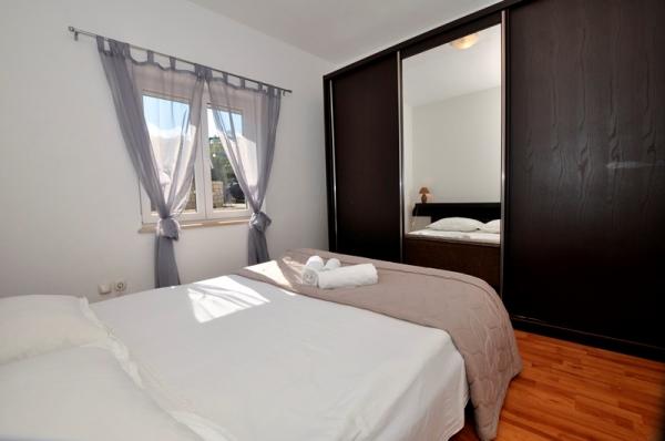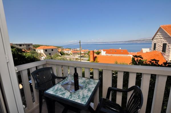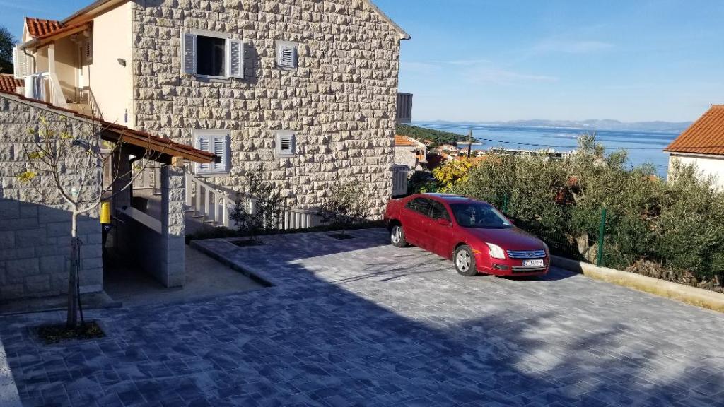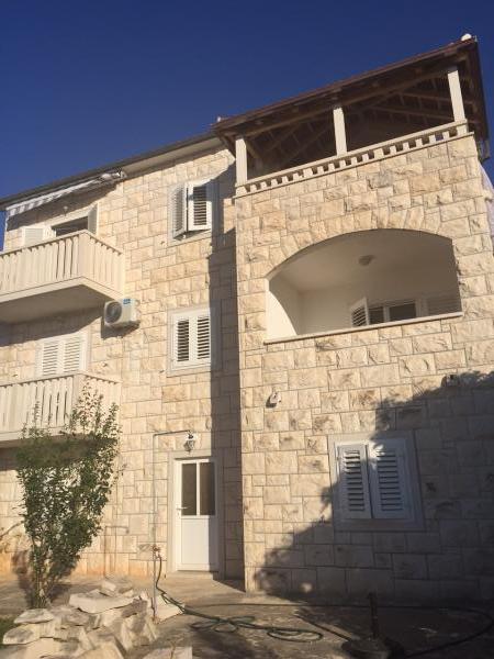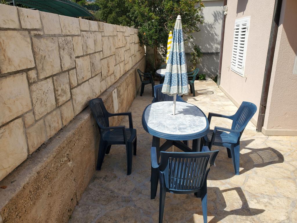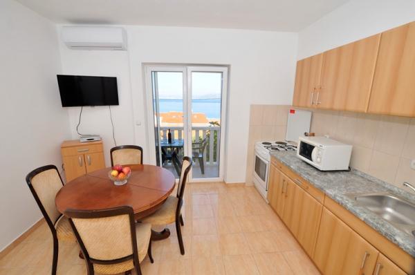 Prostrani dvosobni apartman opremljen za ugodan godisnji odmor. Natkrivena terasa je idealna za opustanje i uzivanje u predivnom pogledu na more, bracki kanal, Split i okolna mjesta uz obalu ili zalazak sunca. Vlasnik zivi u istom objektu na katu i u svakom momentu je na raspolaganju da pomogne ili odgovori na pitanja o plazama, restoranima, izletima itd.